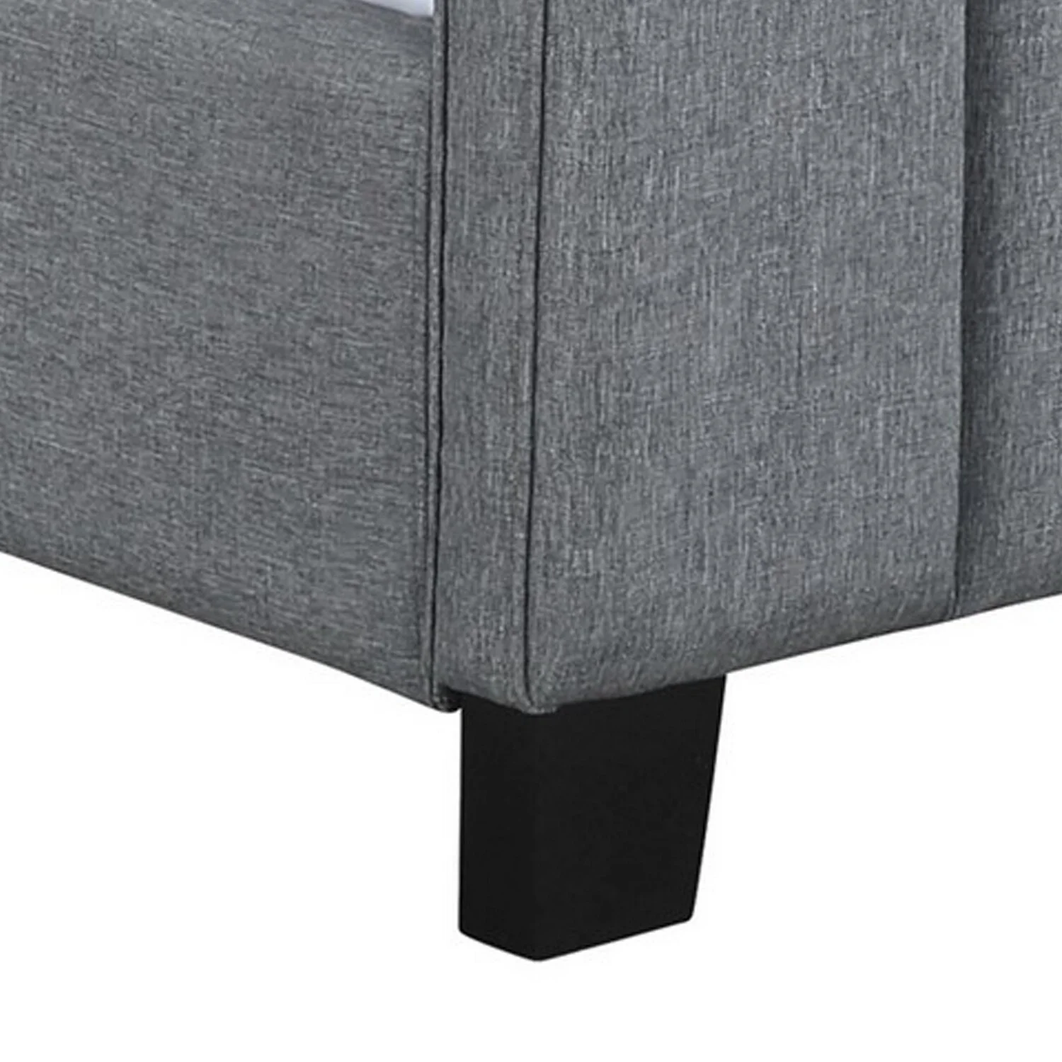 Benjara Light Gray & Black Upholstery Vertical Channel Tufted Ion Notched King Size Panel Bed