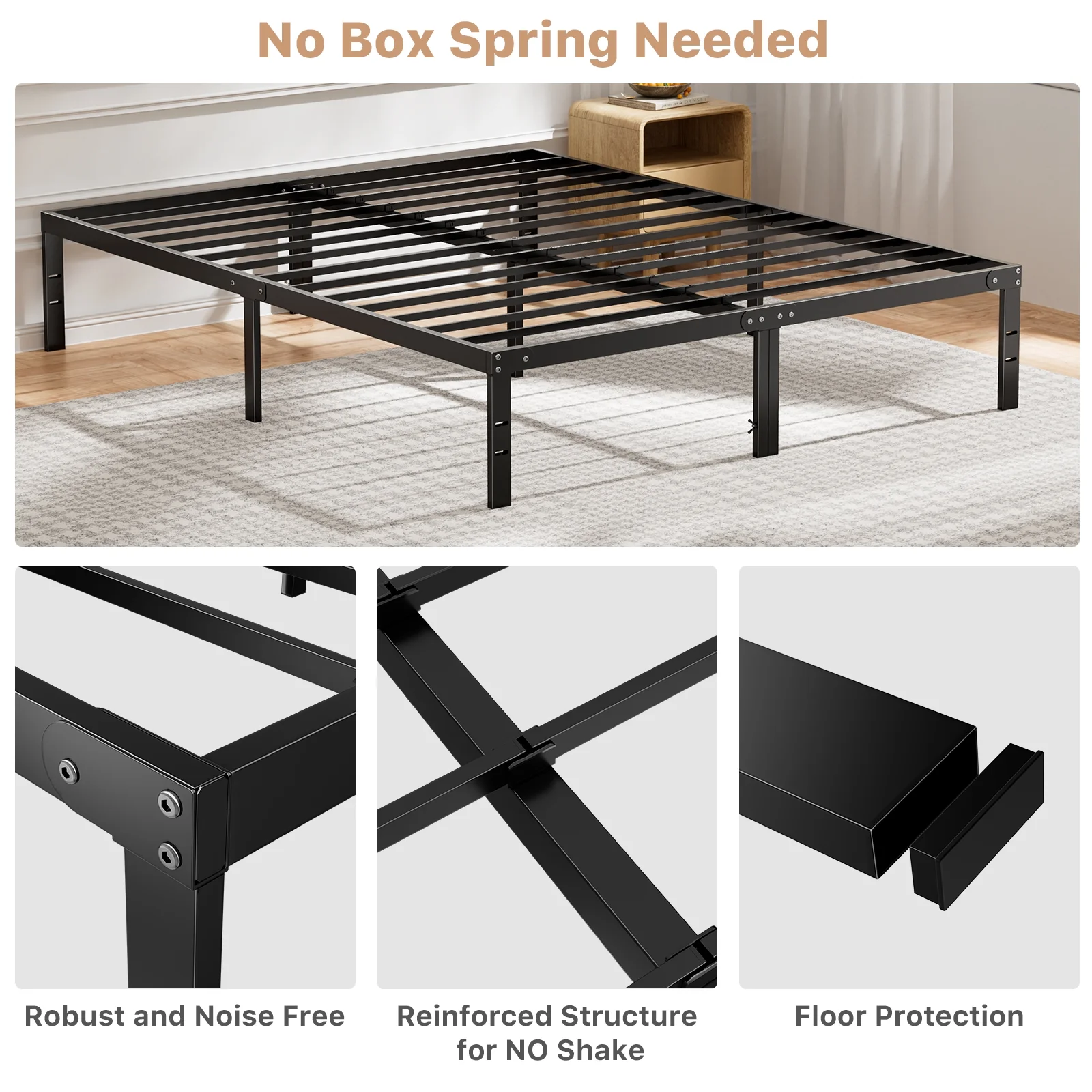 FOA Belkor Solid Wood Queen Platform Bed with 8" Memory Foam Mattress in Oak