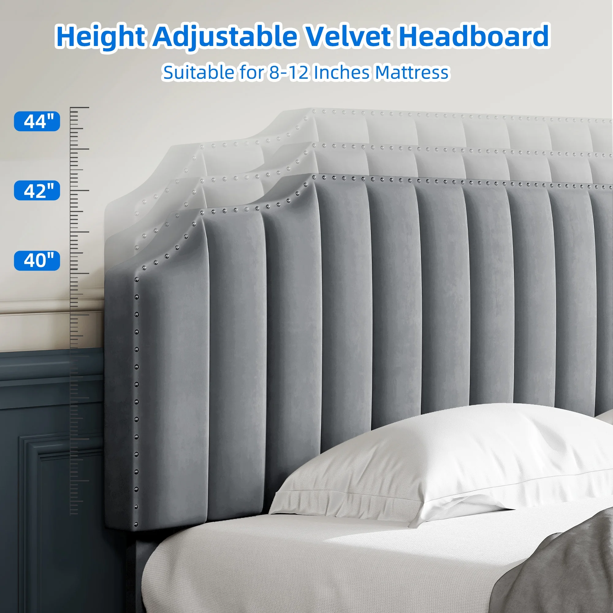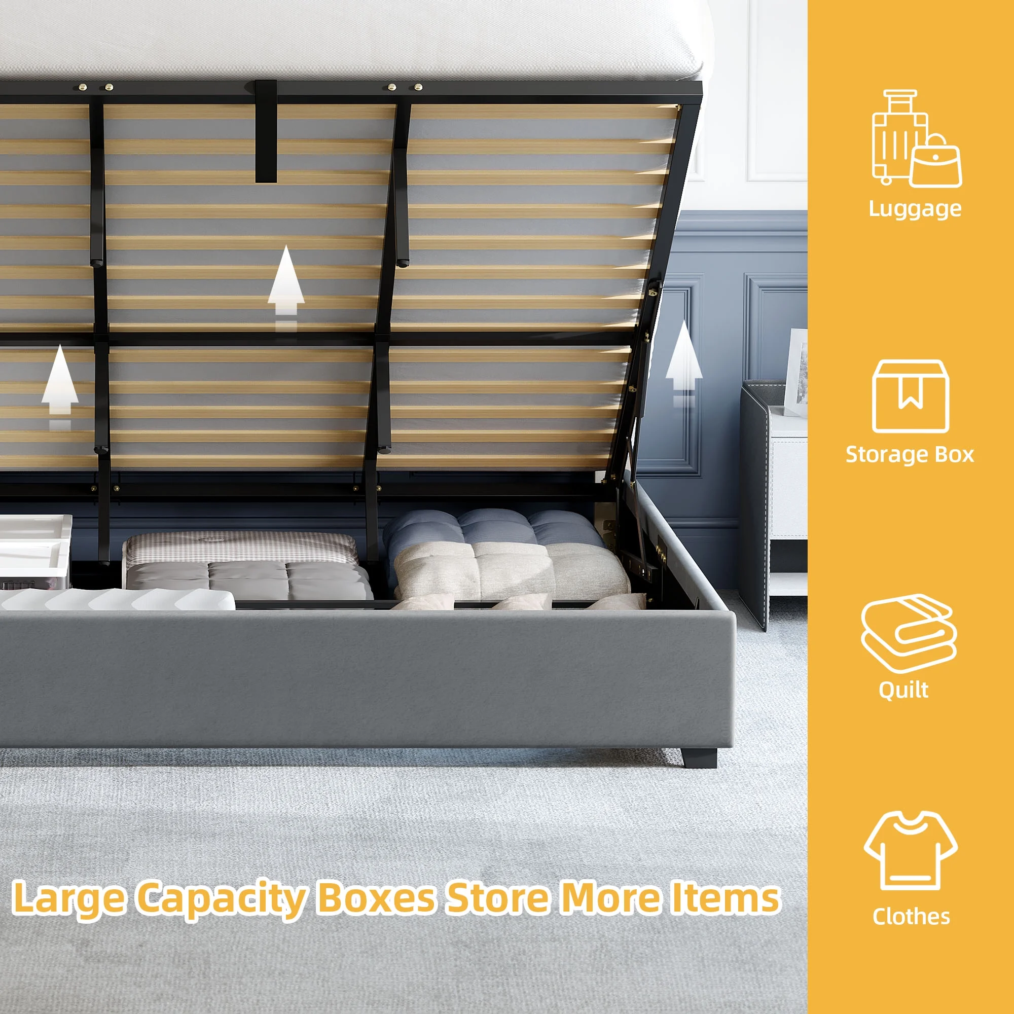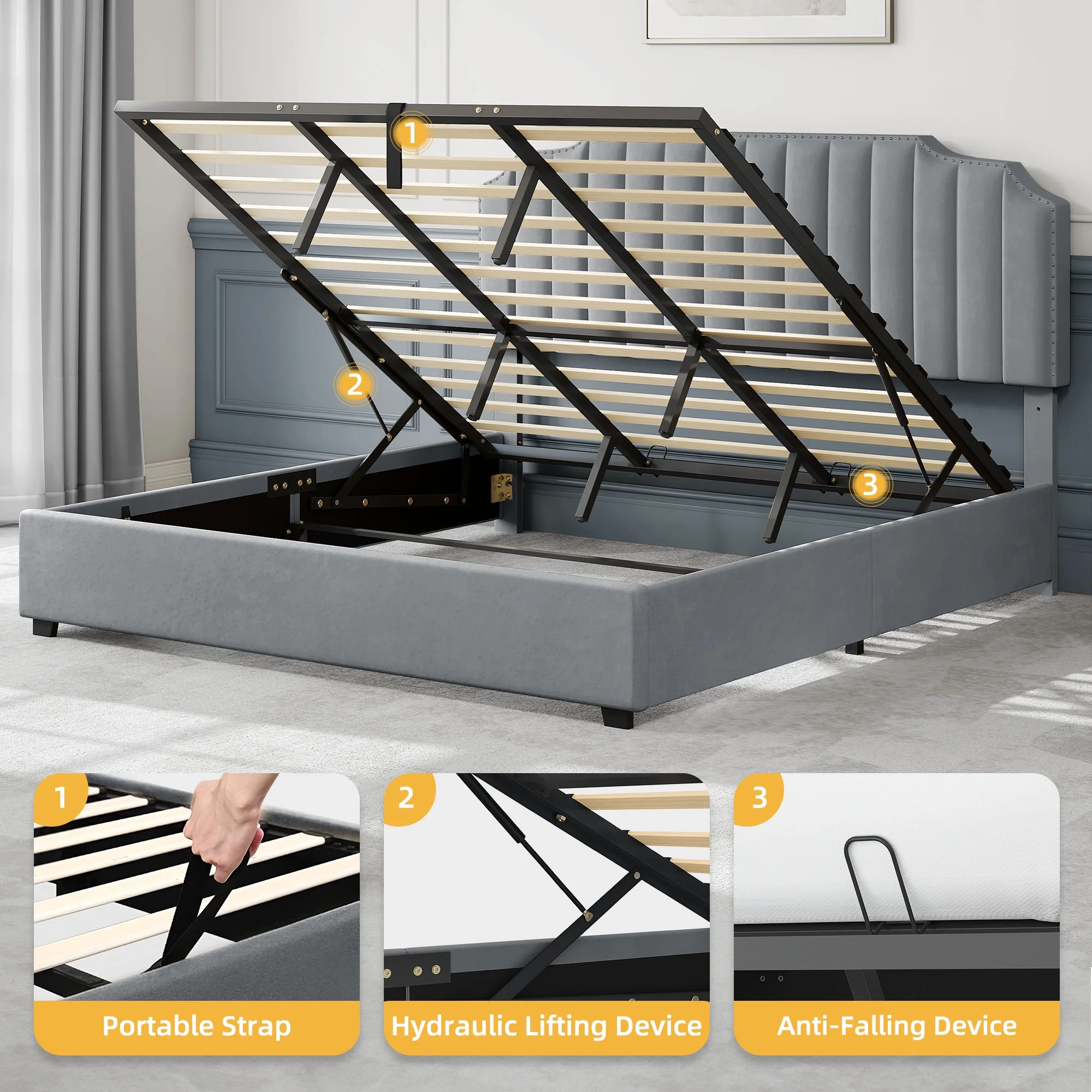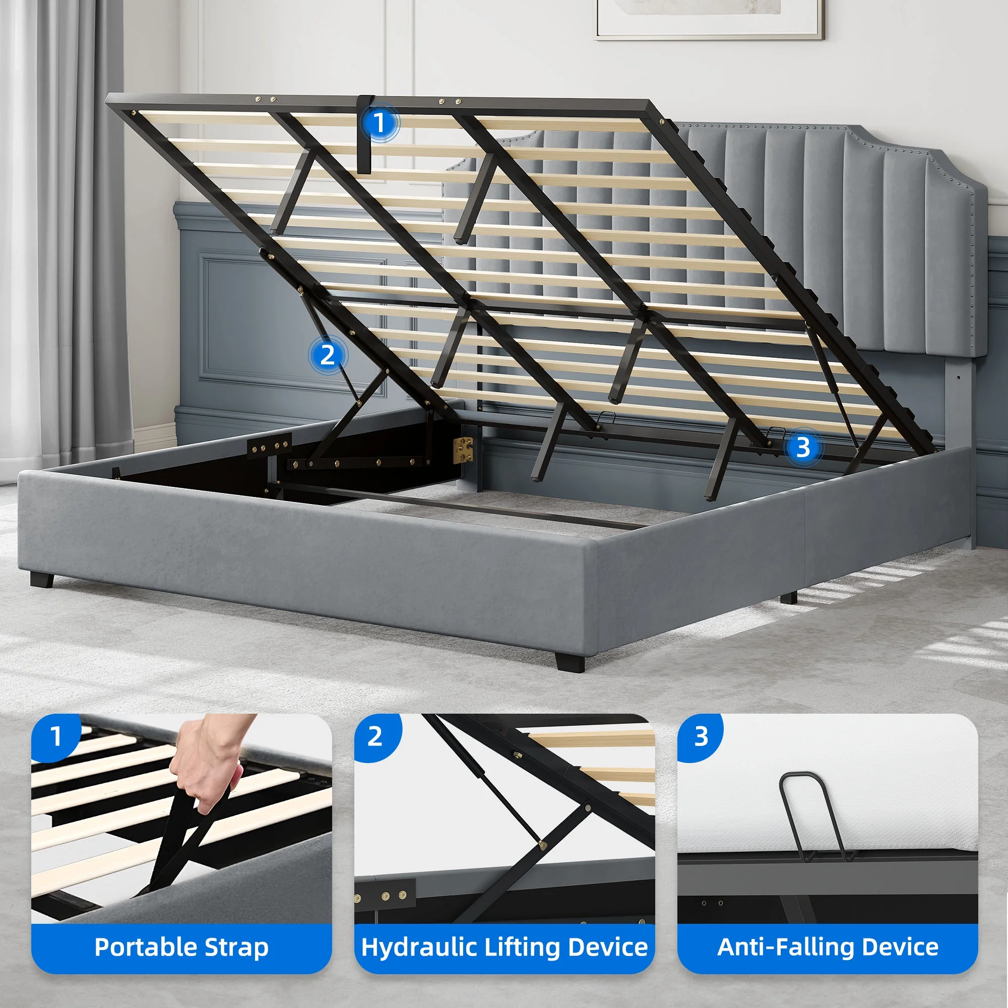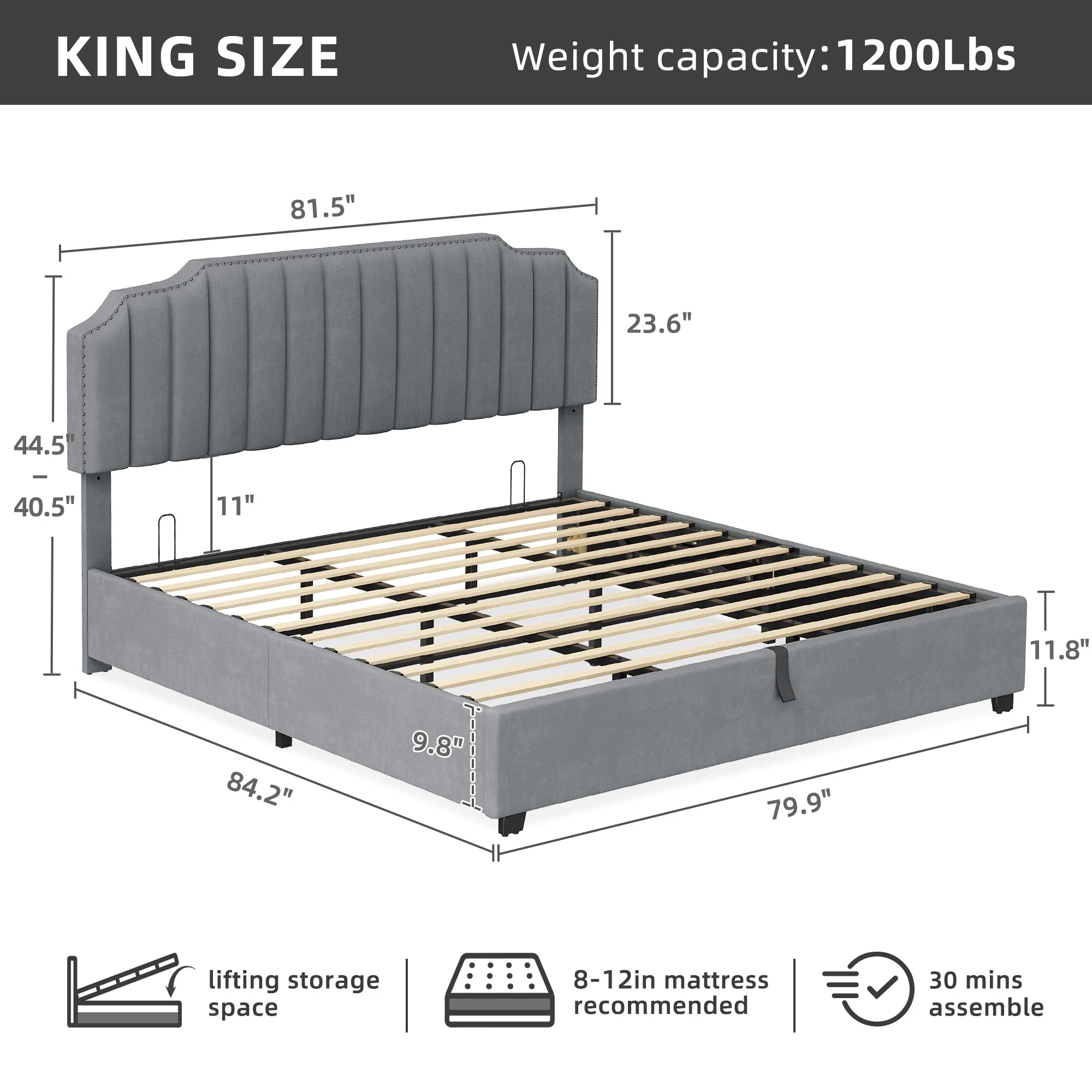 Belle Storage Bed King Light Grey Fabric-Color:Grey,Style:Contemporary Modern