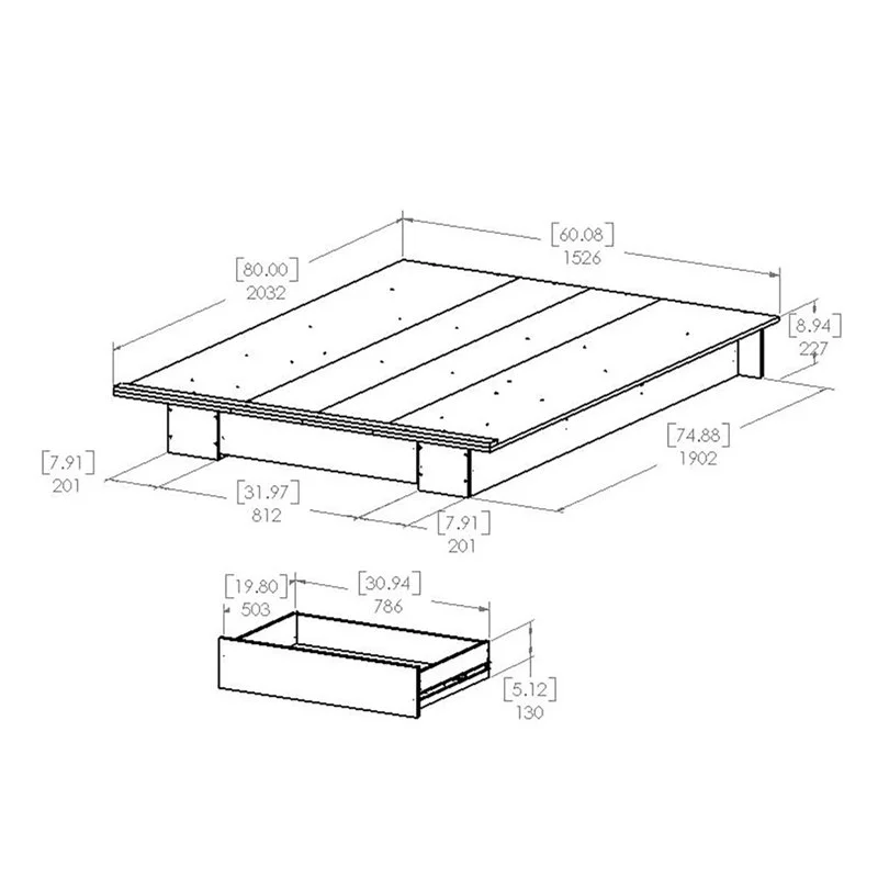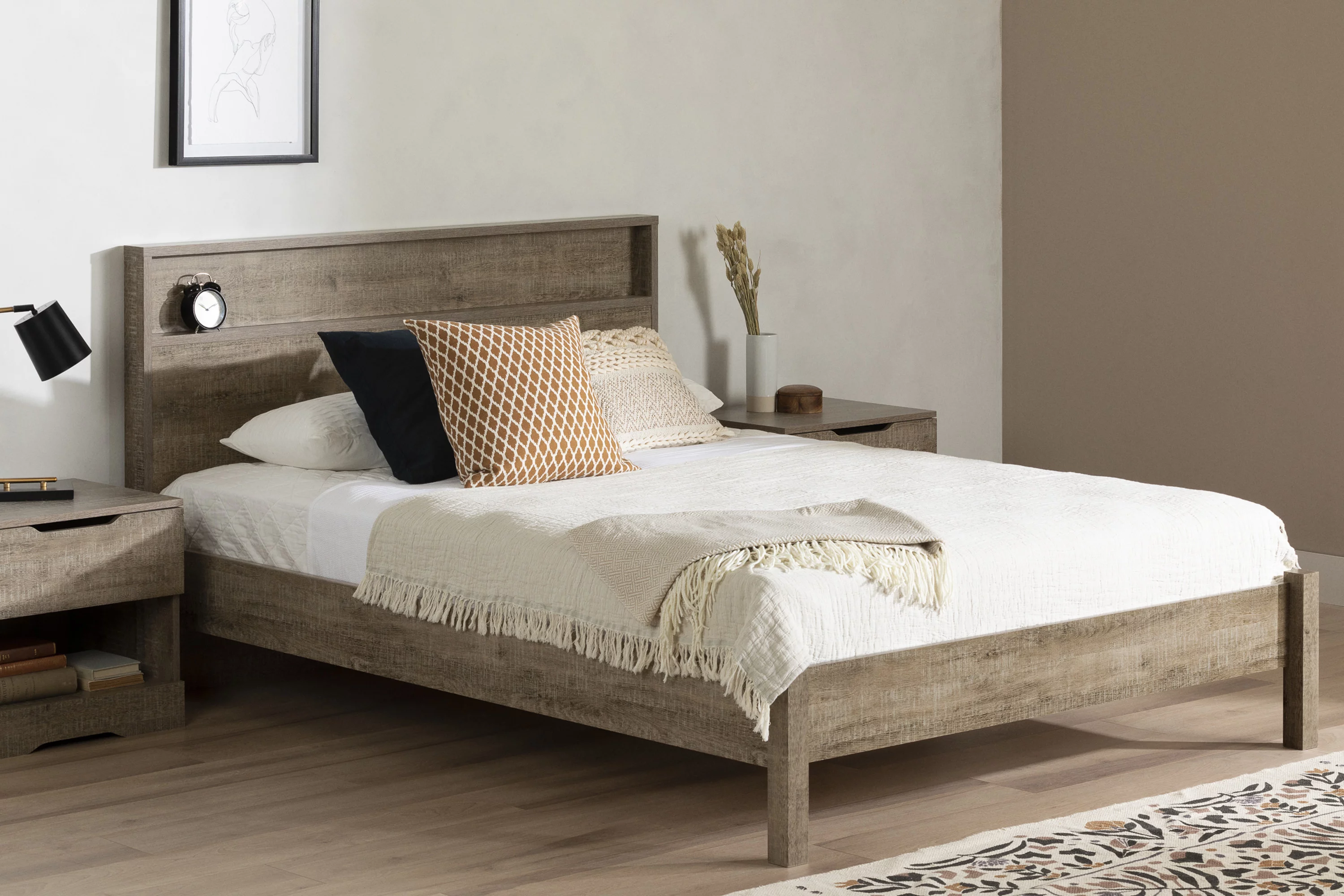 Home Square 2-Piece Set with Queen Platform Bed & Queen Headboard in Gray Oak
