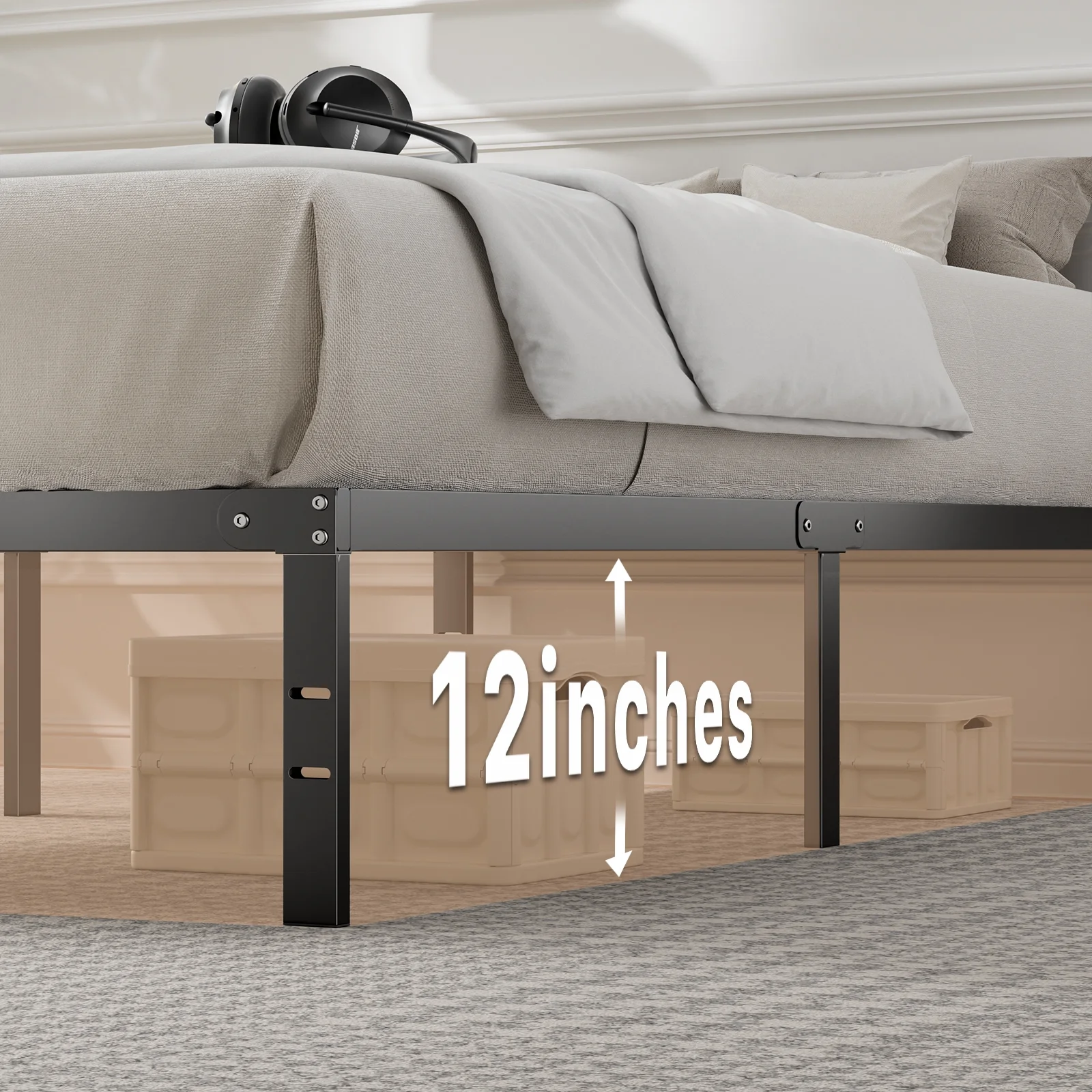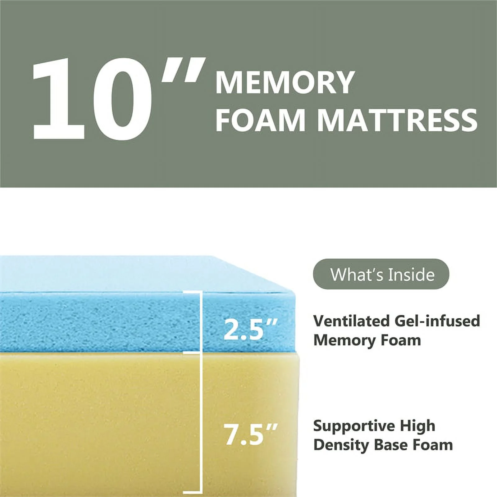 FOA Belkor Solid Wood Queen Platform Bed with 10" Memory Foam Mattress in Oak