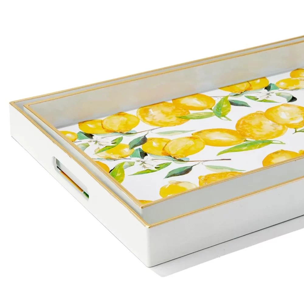 American Atelier, Lemon Branches Polypropylene Rectangular Serving Tray with Handles, Set of 2