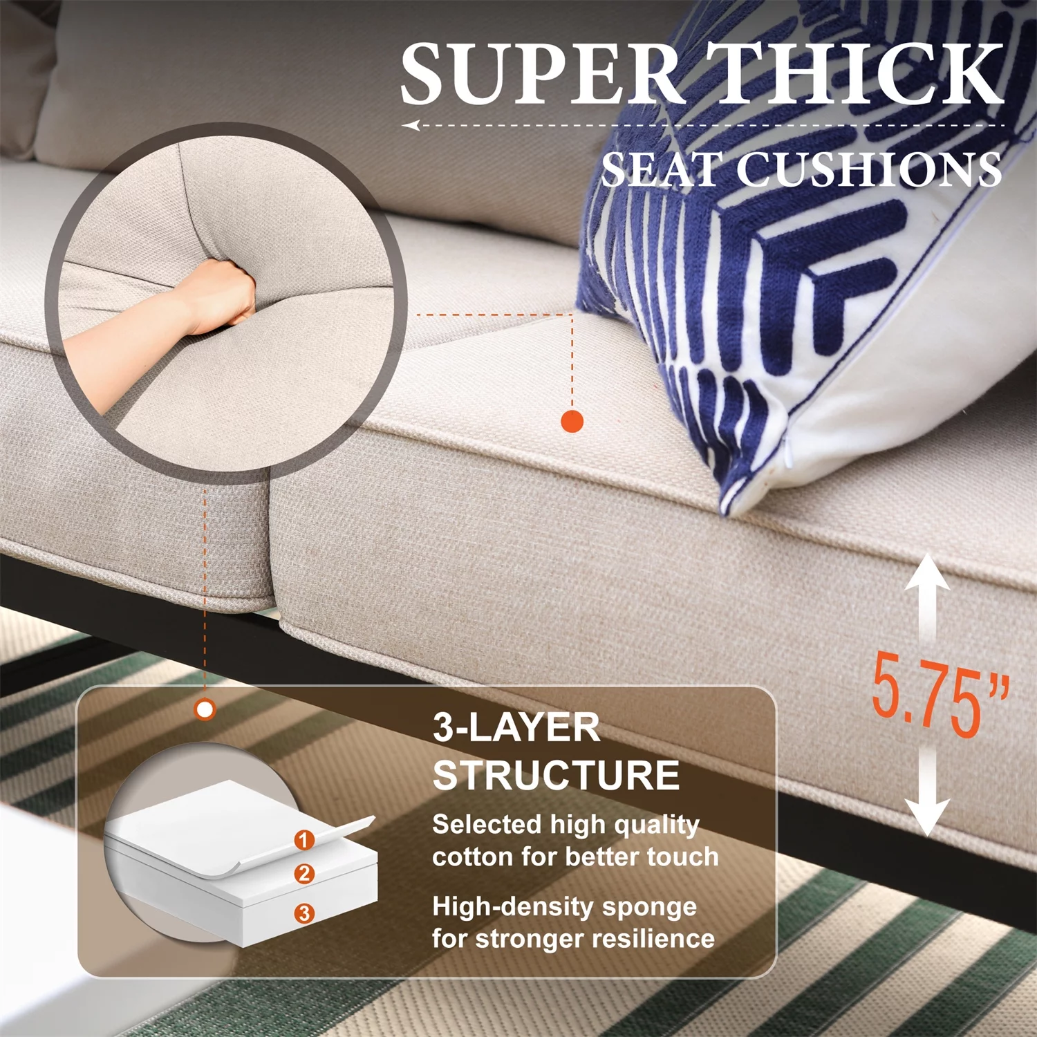 MF Studio 5-Seat Patio Conversation Set Metal Outdoor Furniture Sofa Set for 5 Person Beige