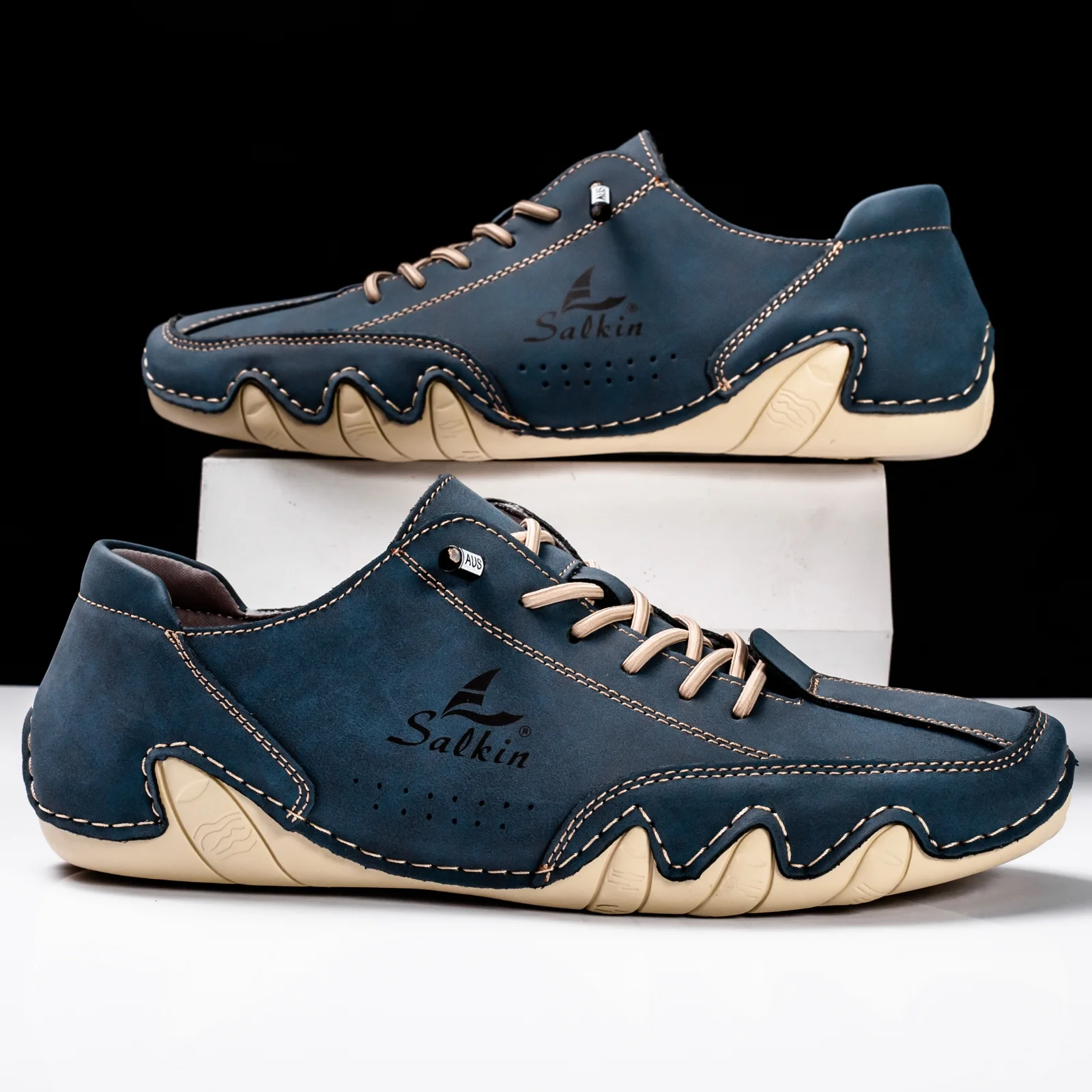 Flyland Men's Ankle Boots Slip on Casual Leather Sneakers Shoes Lace Up Vintage Male Chukka Boot