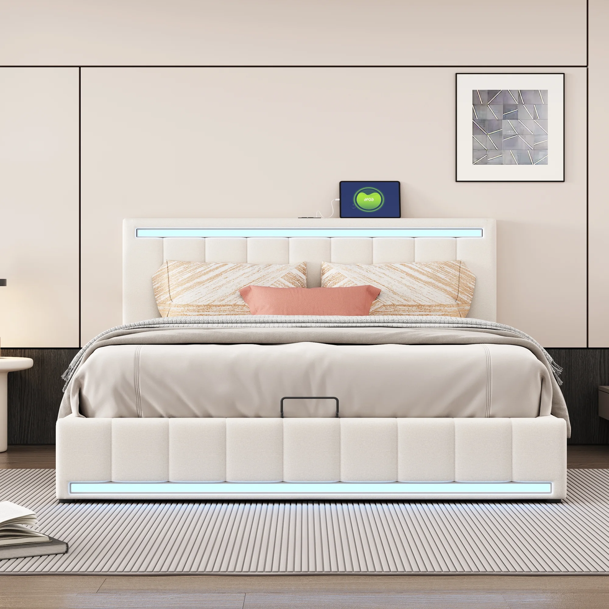 Afuhokles Night Stand with Charging Station and LED Lights, Tall Bedside Table with Drawers, Grey