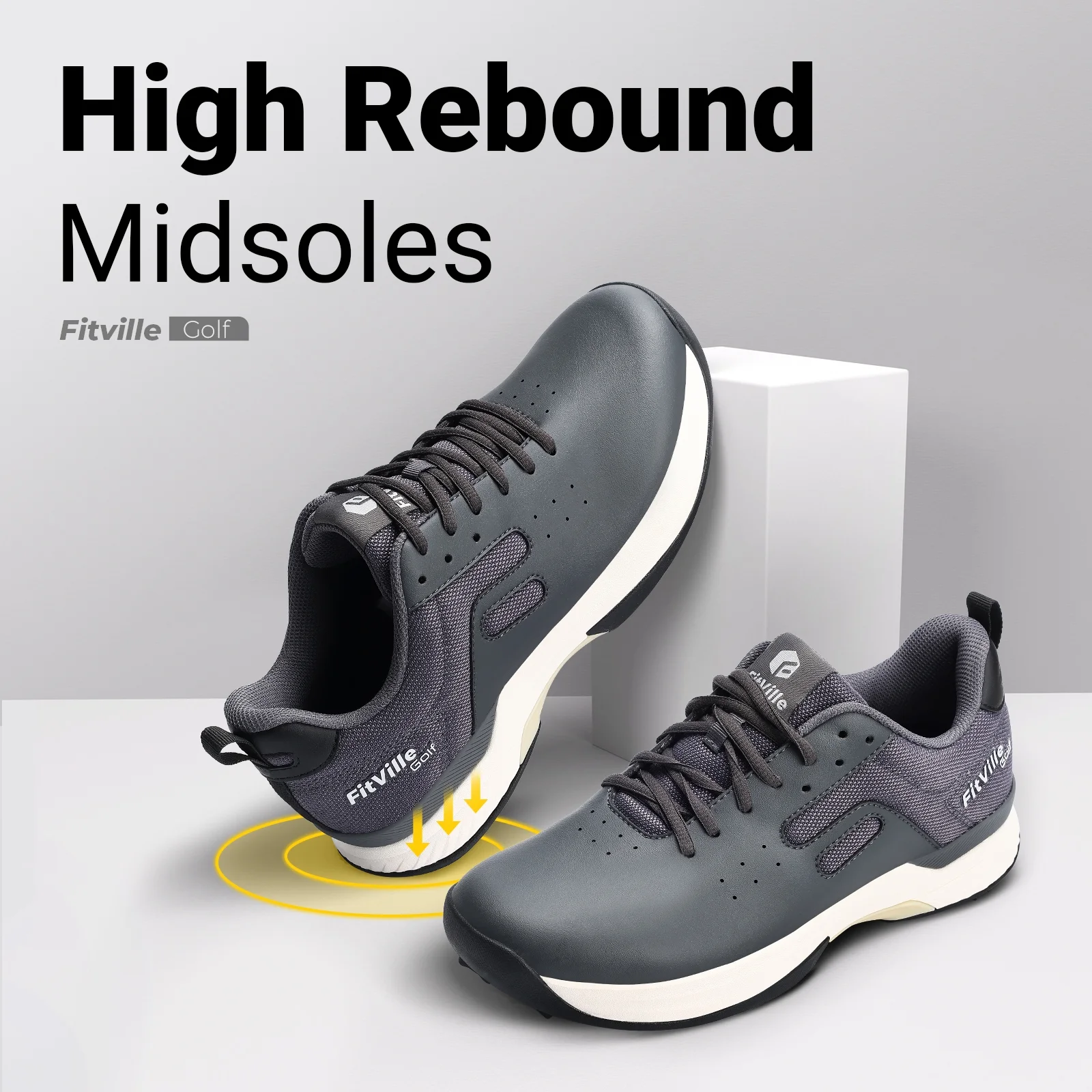 FitVille Professional Mens Golf Shoes Extra Wide Spiked Golf Shoes for Men Waterproof ( Basalt Gray, 14 Wide)