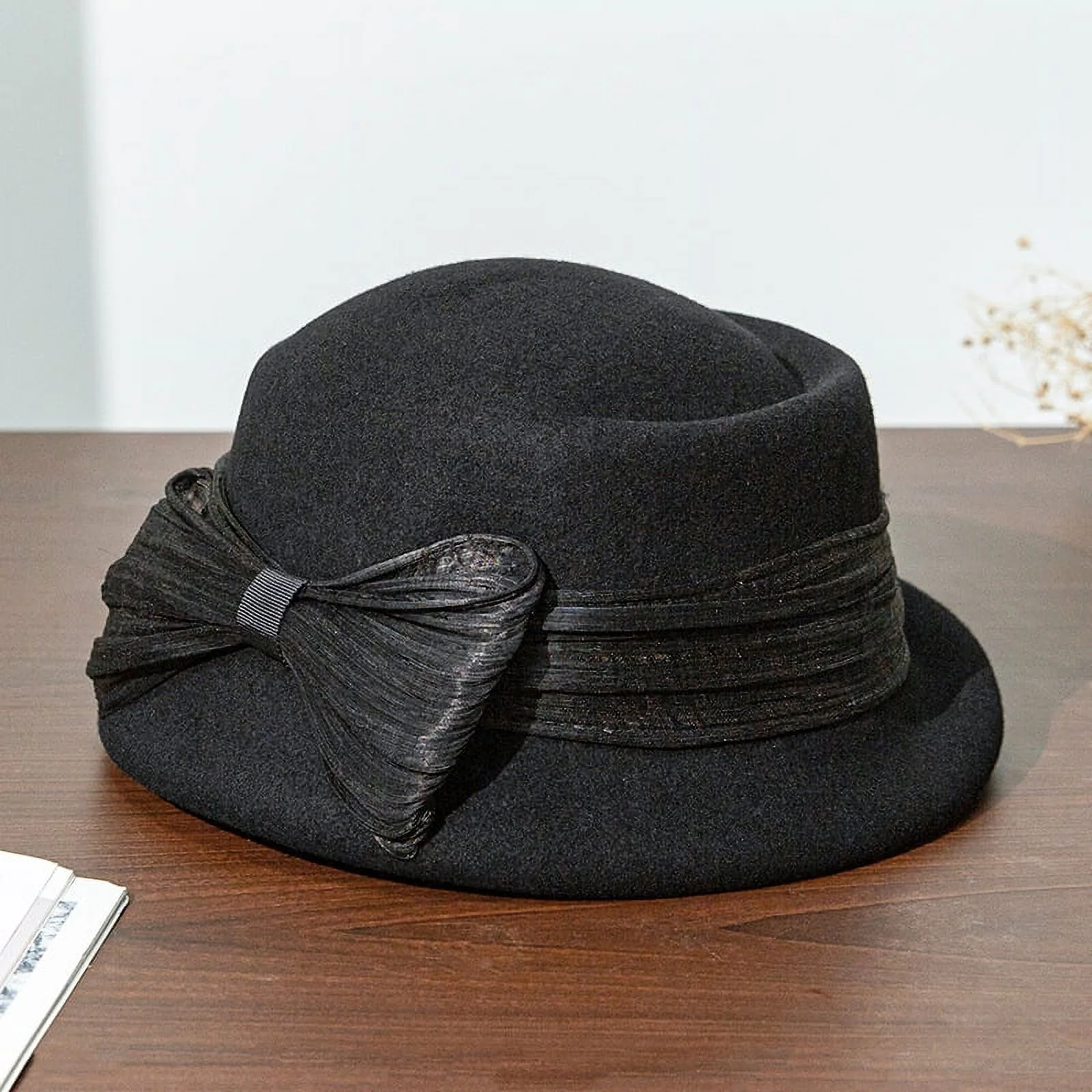 Autumn and winter wool felt hat for women, solid color versatile elegant round top top hat