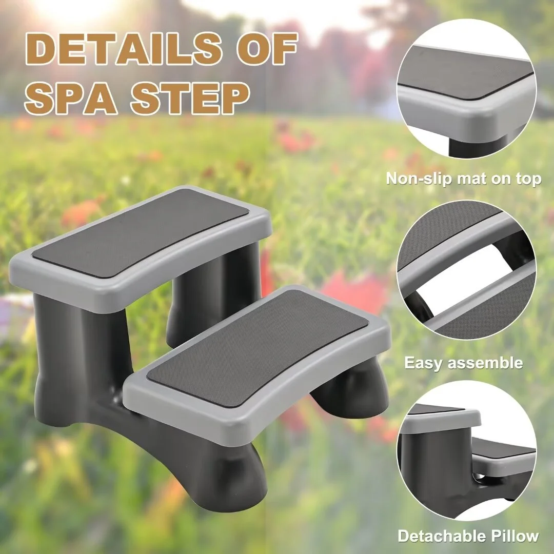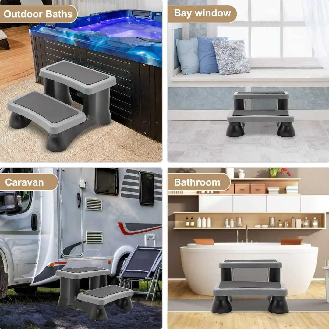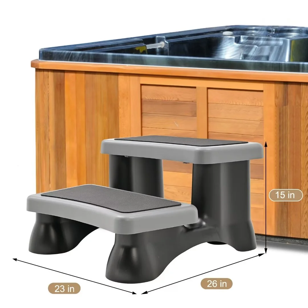Docred 23" Two-Step Hot Tub Steps,Pool Ladders,Universal Resin Hot Tub and Spa Step Grey & Black ,Max Supports 330lb