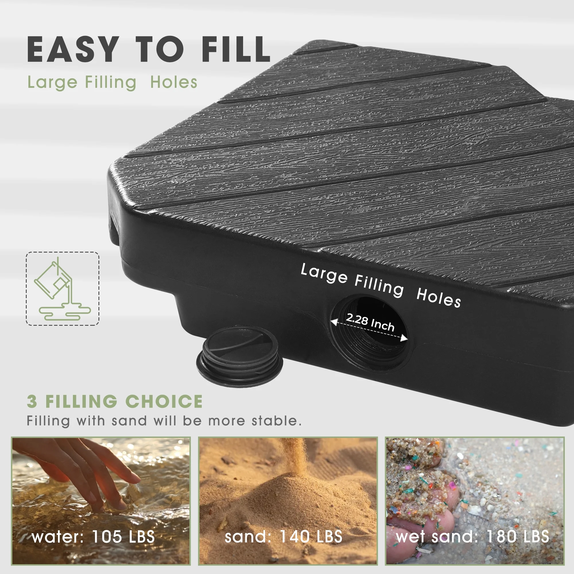 Scafild | 4-Piece Patio Offset Umbrella Base Stand,180lbs Heavy-Duty Sand Filled Patio Umbrella Base - Black
