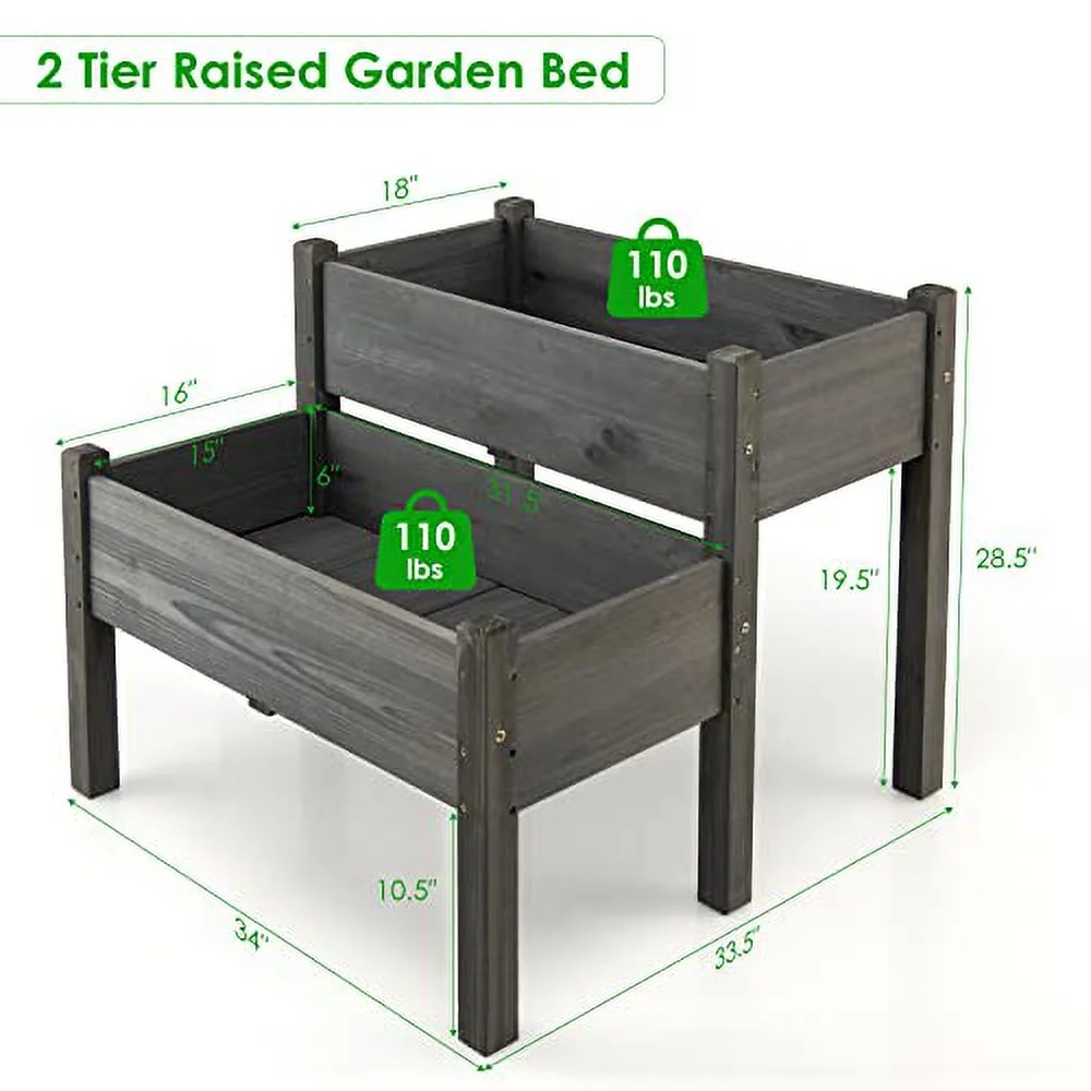 Outsunny 2-Level Wooden Garden Plant Stand with Climbing Vine Trellis, Brown