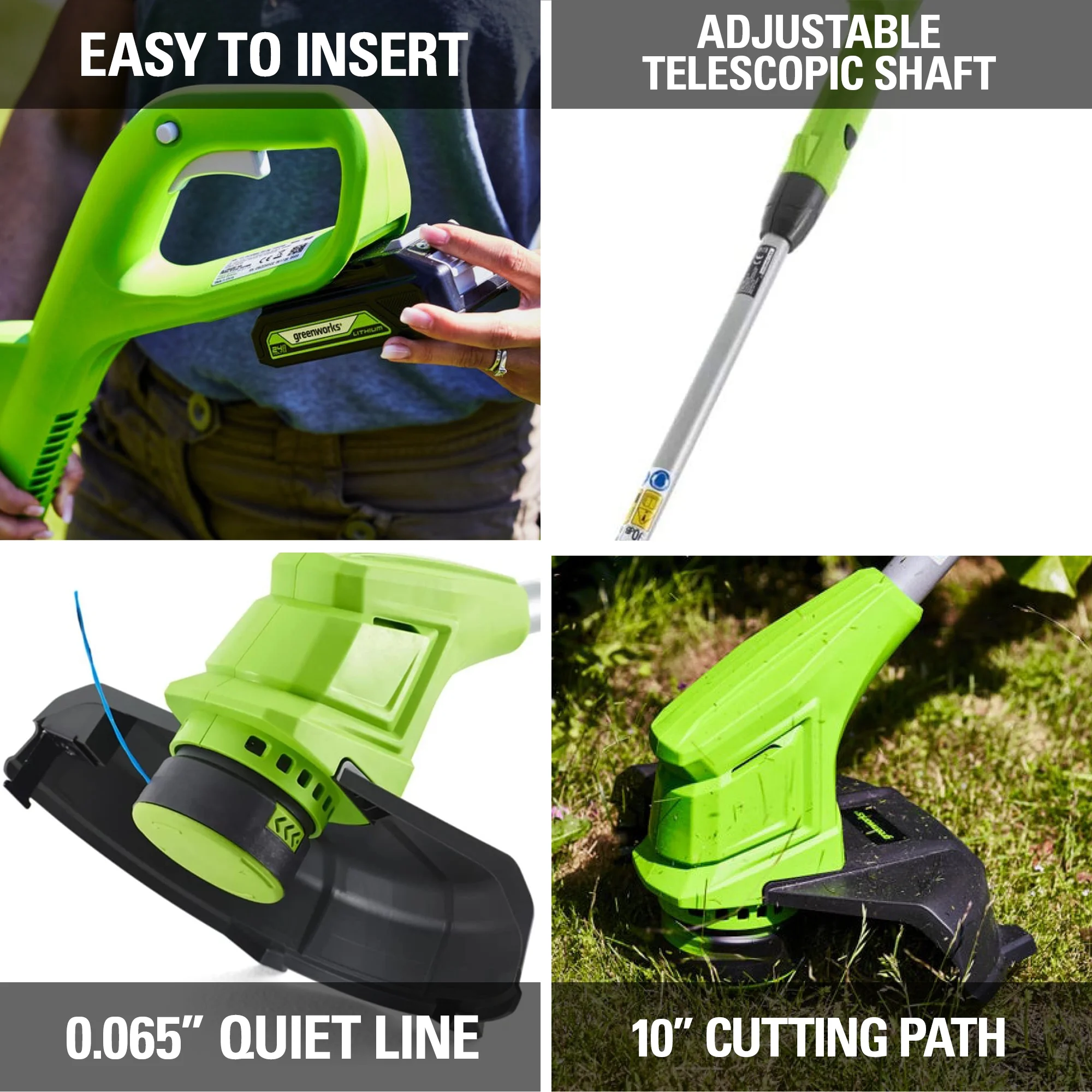 Greenworks 24V 10-inch String Trimmer with 2.0 Ah Battery and Charger, 2101902