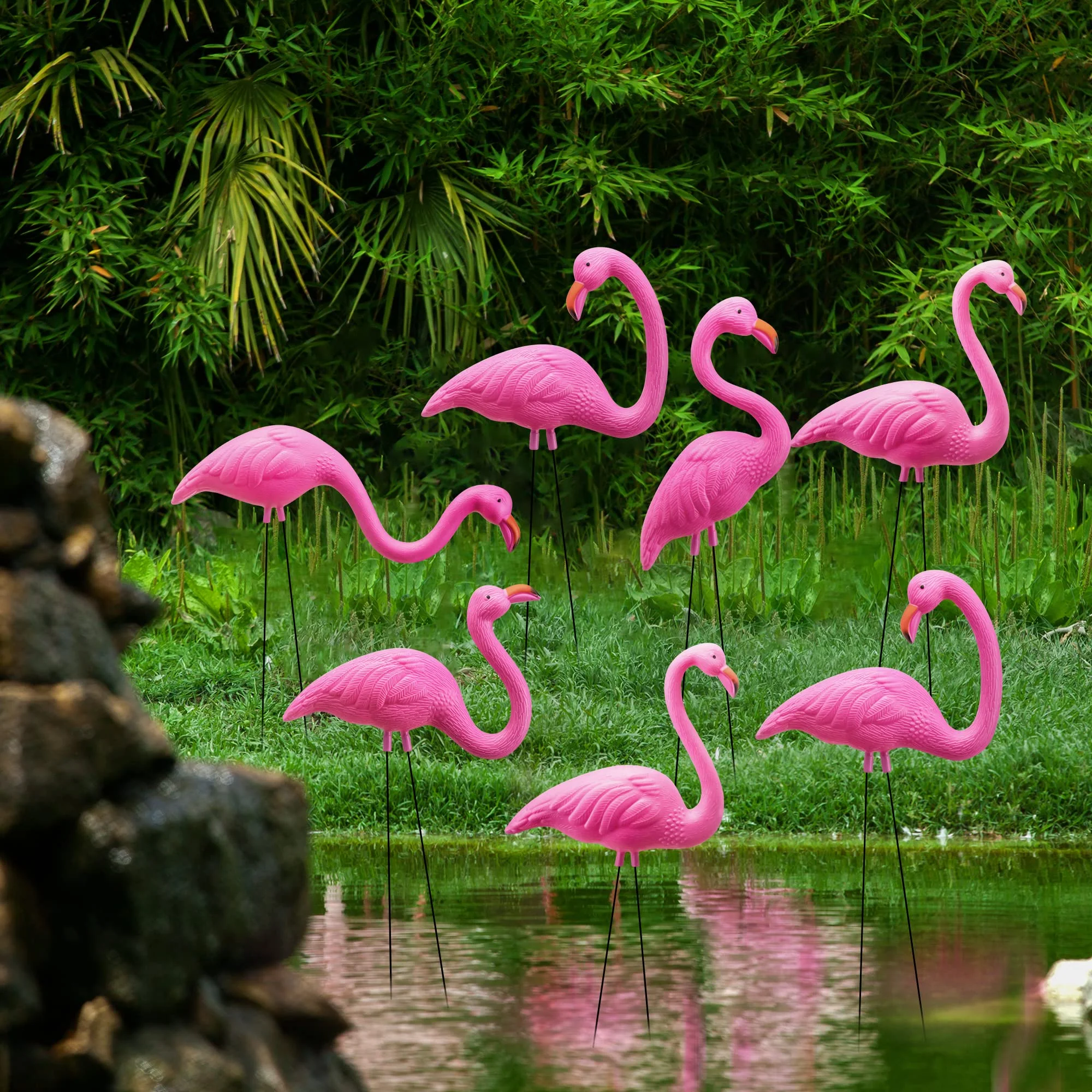 Syncfun 10 Pack Pink Flamingo, Small Yard Ornament Stakes For Outdoor Garden Decor, Luau Party Statue, Beach, Lawn