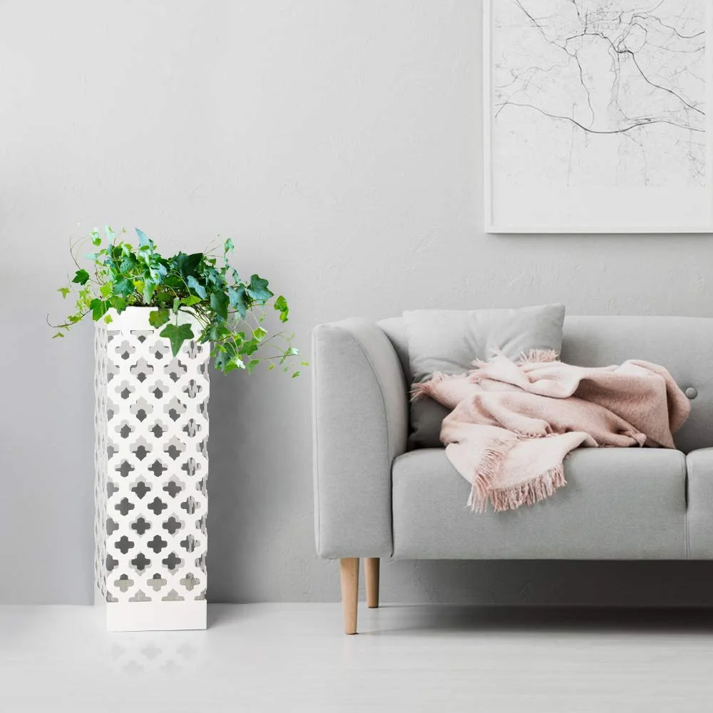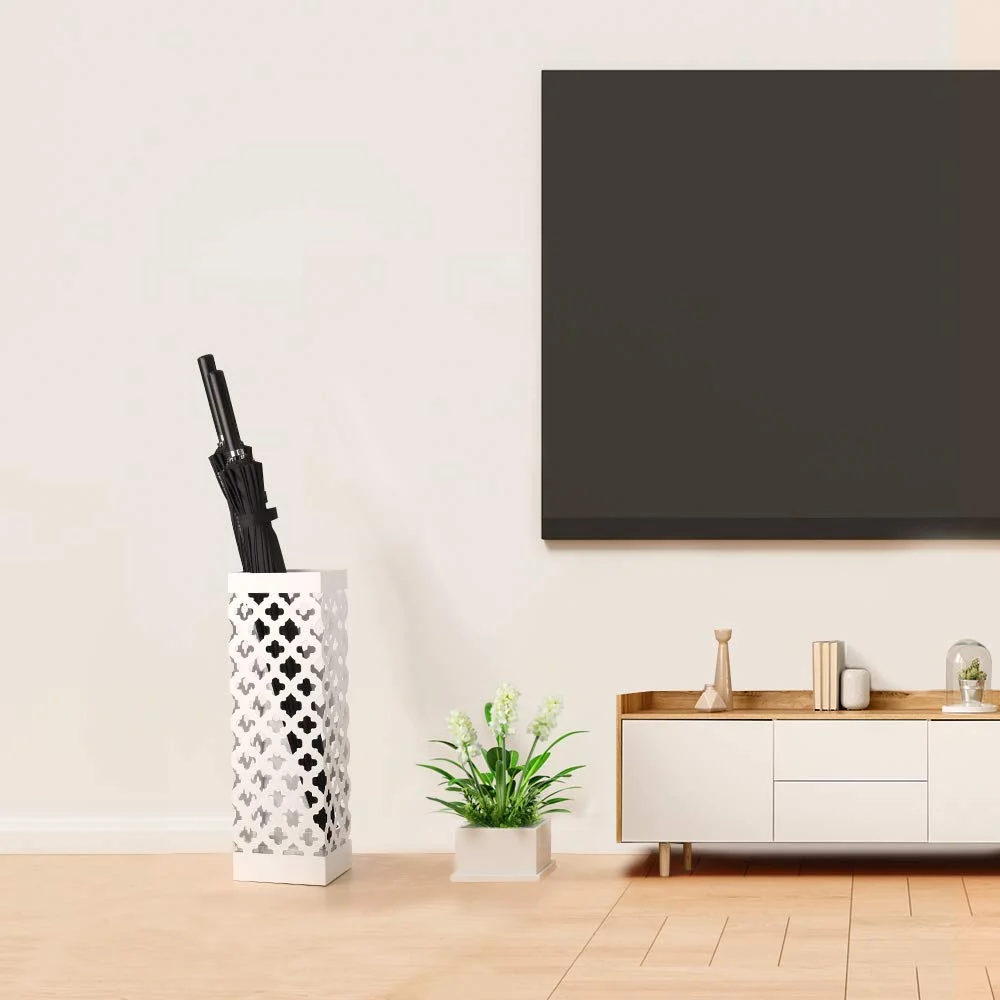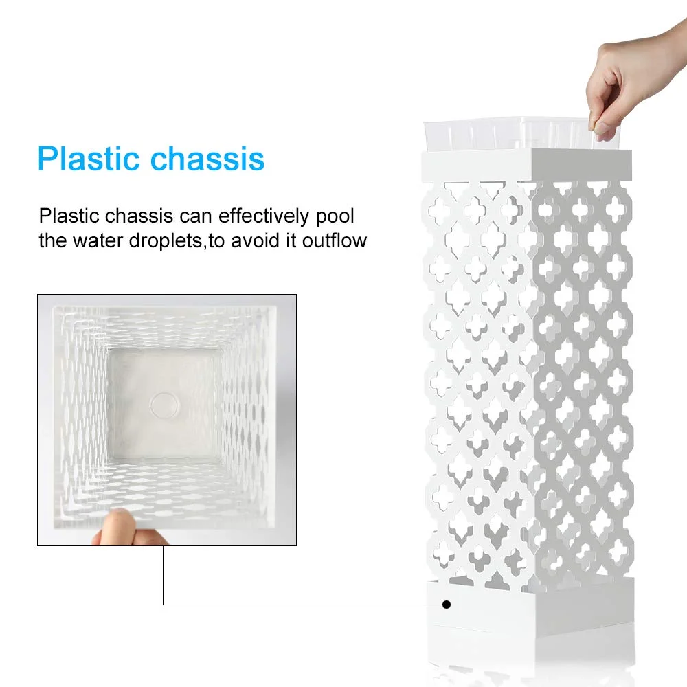 NEX Indoor Umbrella Stand Rack Metal Umbrella Holder with Tray and Hook, Square, White (NX-DB030-9)