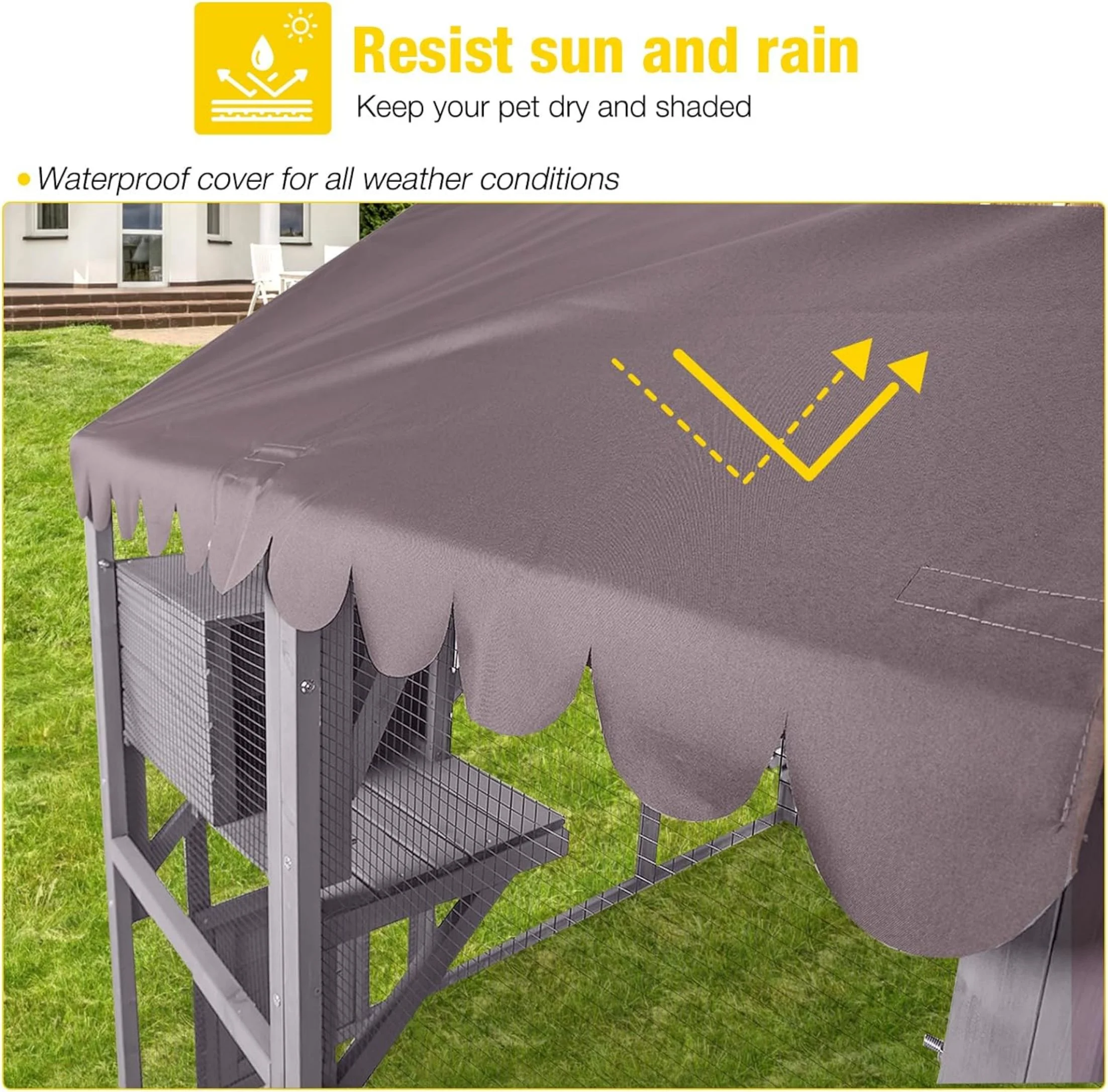 Morgete Large Cat Catio Walk-in Enclosure Wooden Cage with Bridges, Platforms, Rest Rooms, Roof Cover
