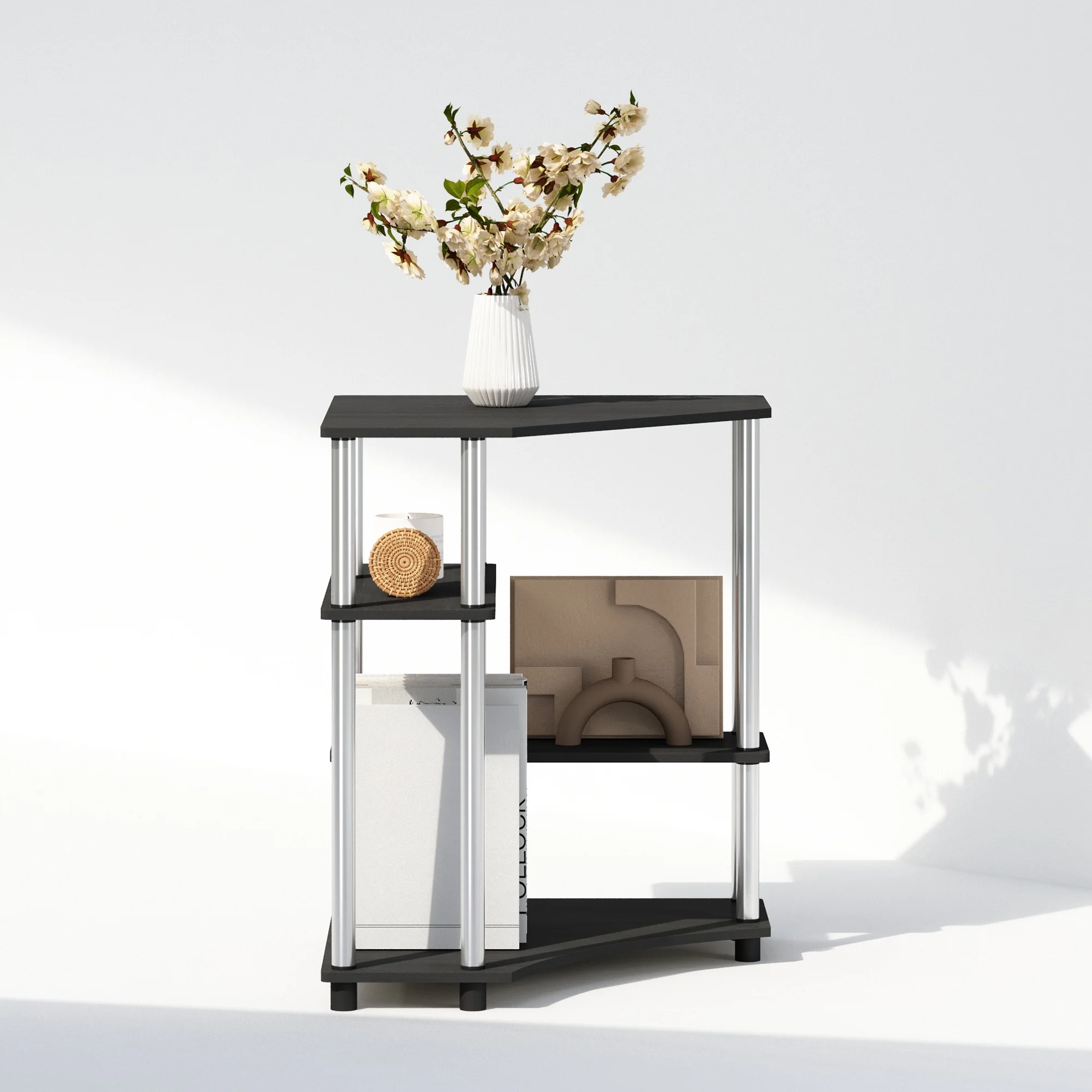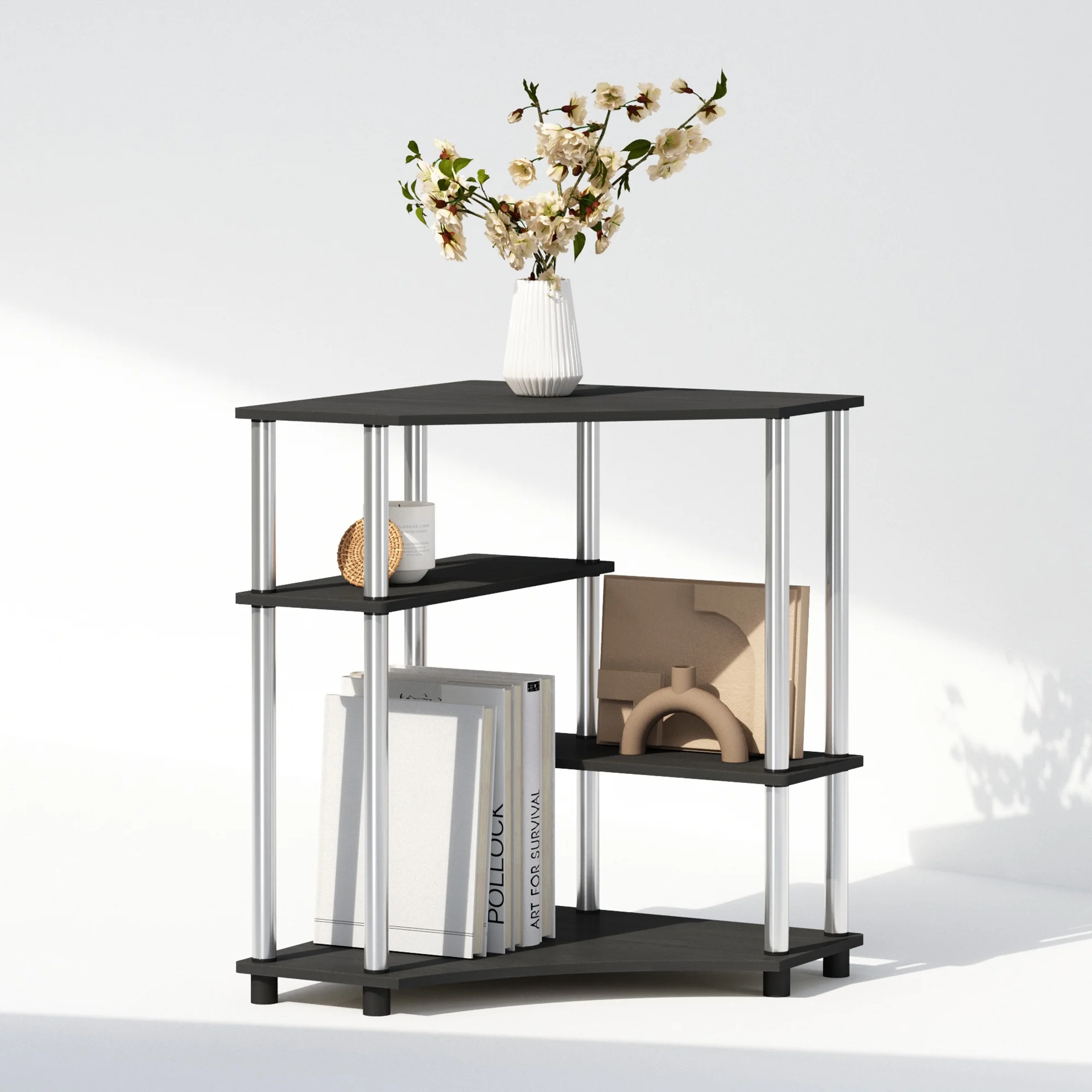 Furinno Turn-N-Tube Multipurpose Corner Shelf, Display Rack, Bookshelf, Americano, Stainless Steel Tubes