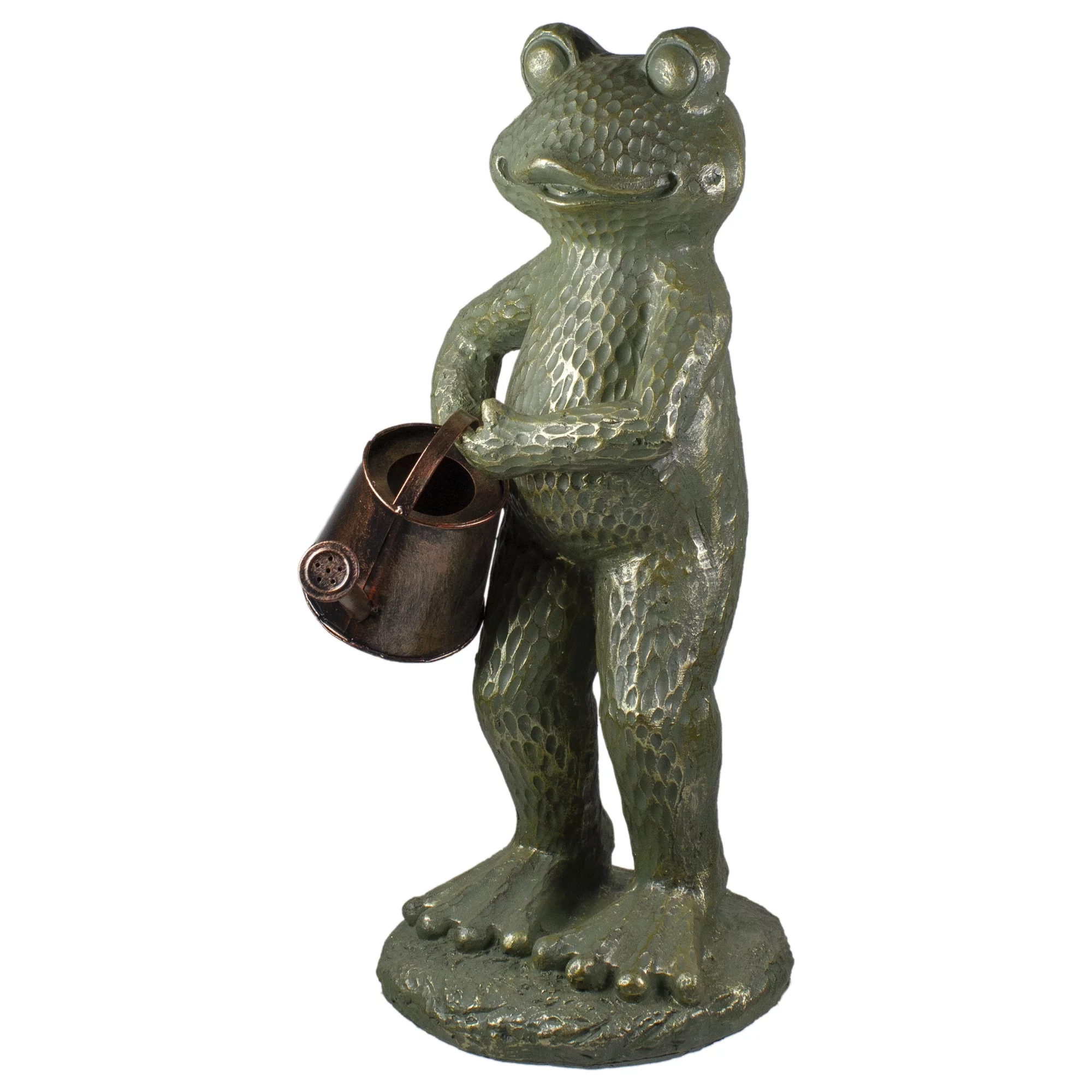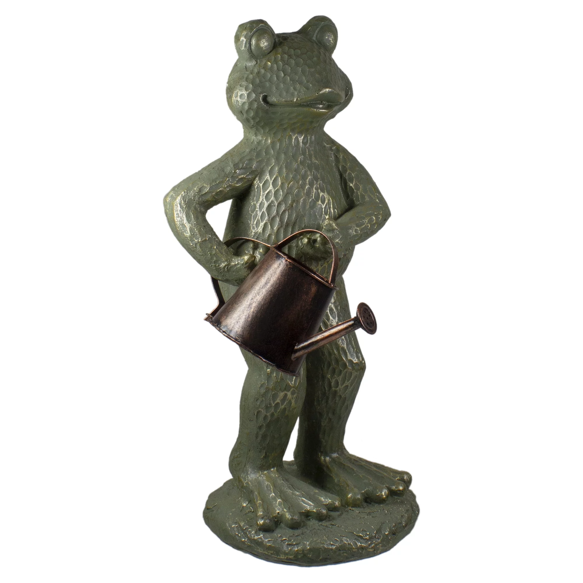 Northlight 17" Gold Verdigris Frog with Watering Can Outdoor Garden Statue