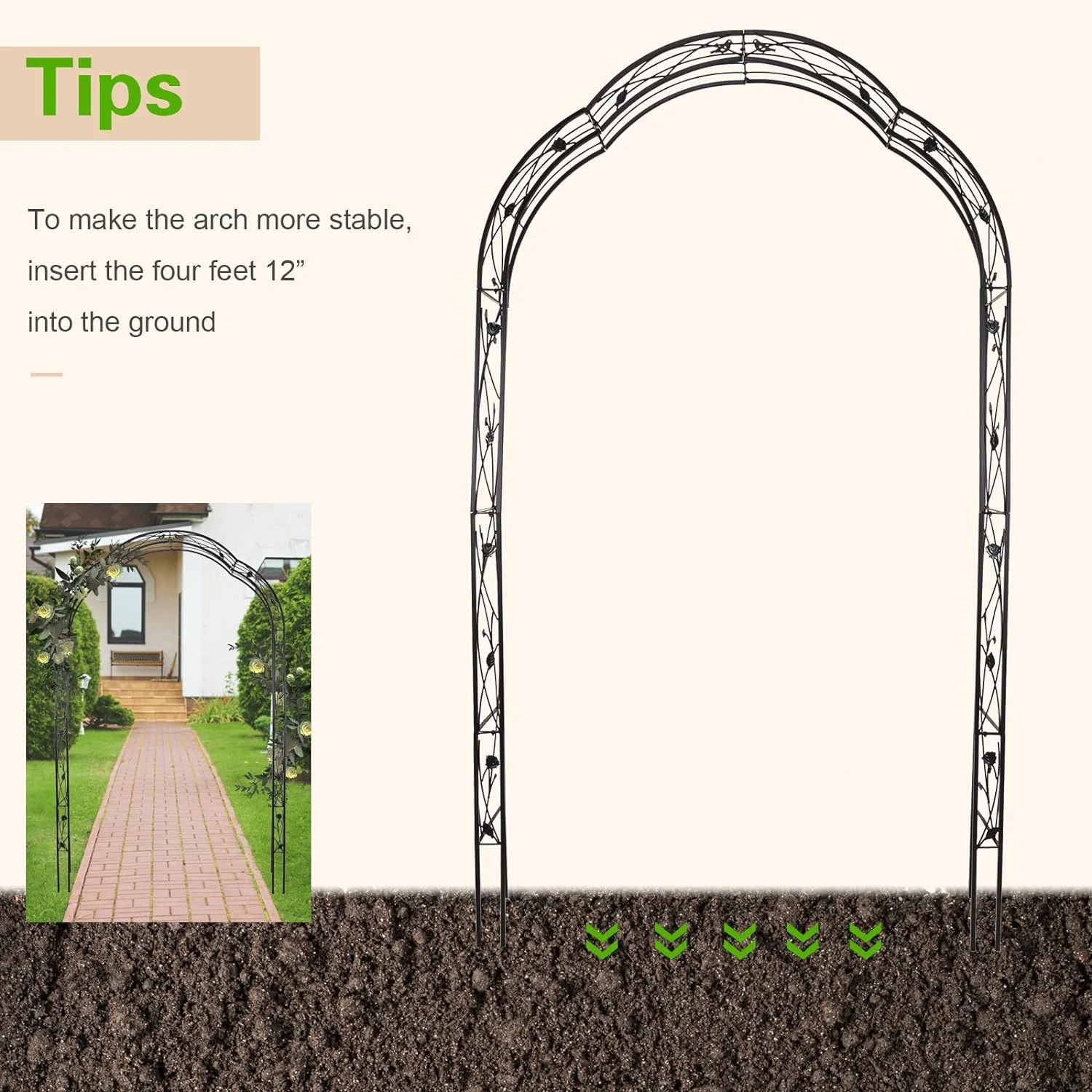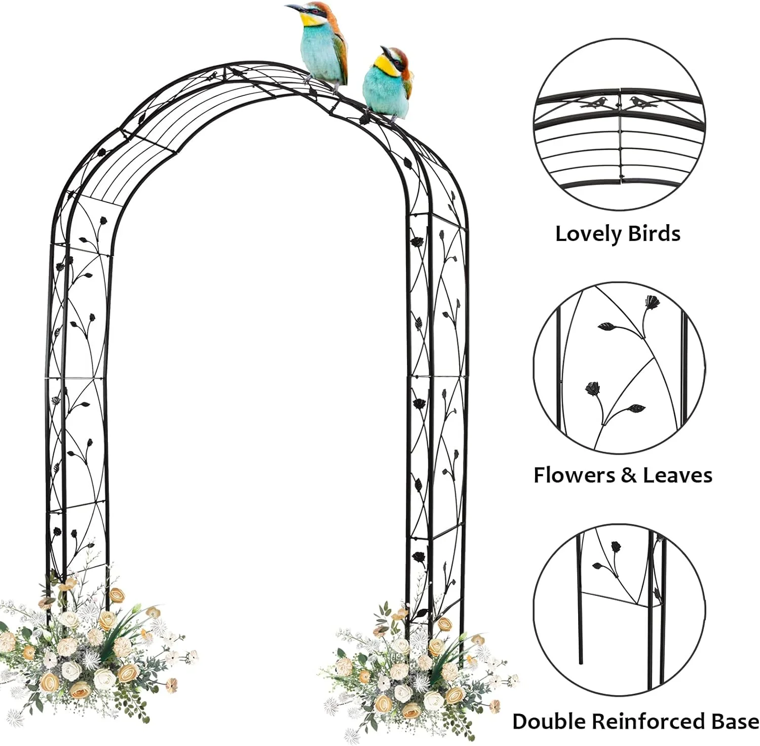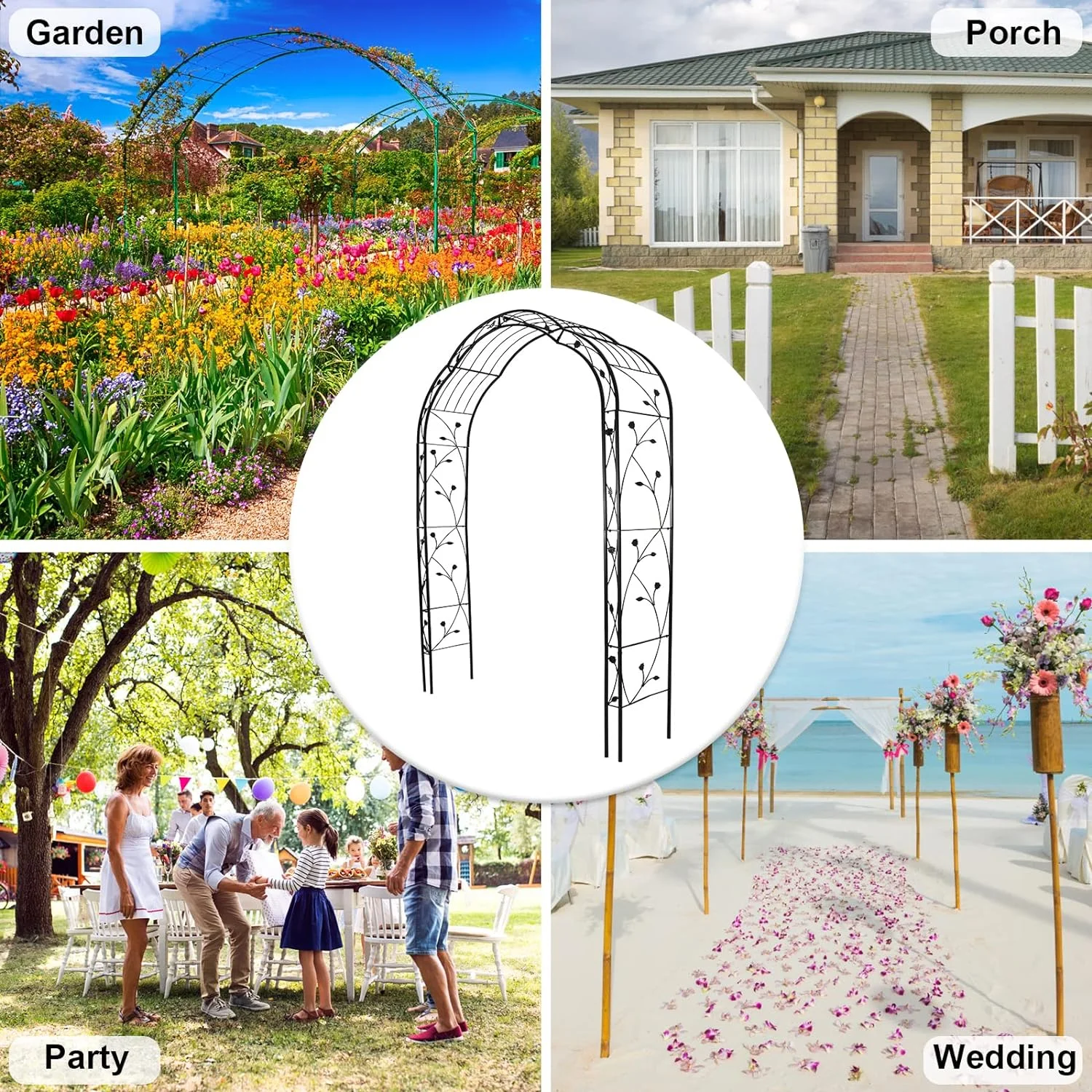 Kinbor 8' Outdoor Metal Garden Arbor Trellis Various Archway Flowers Climbing Plant Lawn Backyard, Black