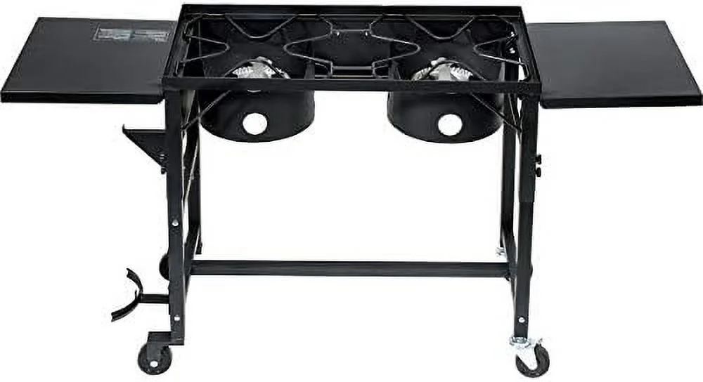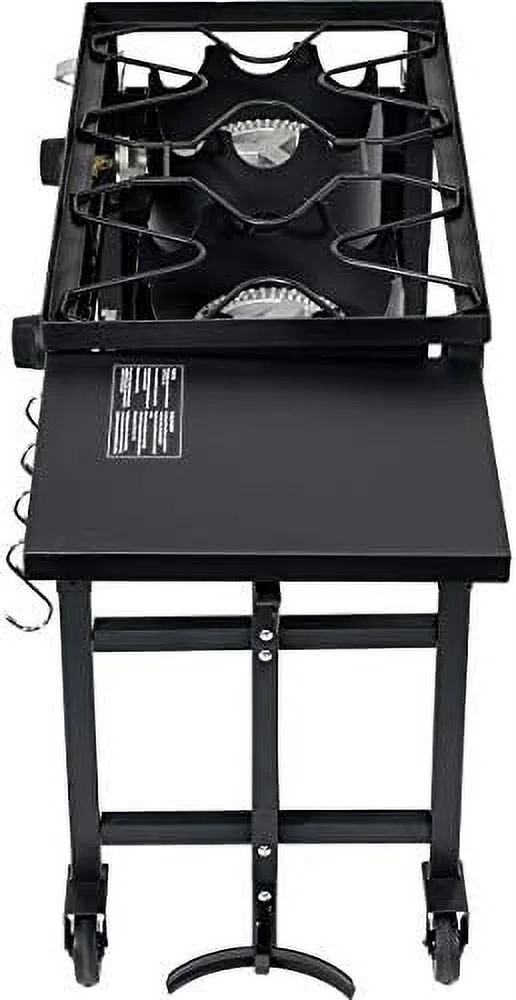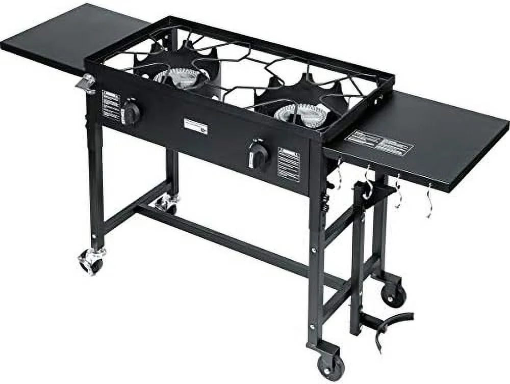 Outdoor Camping Propane Double Burner Stove 2 Folding Cook Cooking Station Stand Picnic BBQ Grill 58,000 BTU, Black