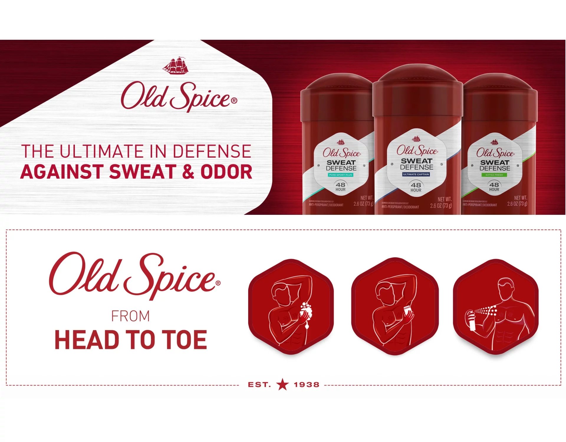 2 pack Old Spice Sweat Defense Anti-Perspirant Deodorant, Extra Fresh, 2.6 Oz