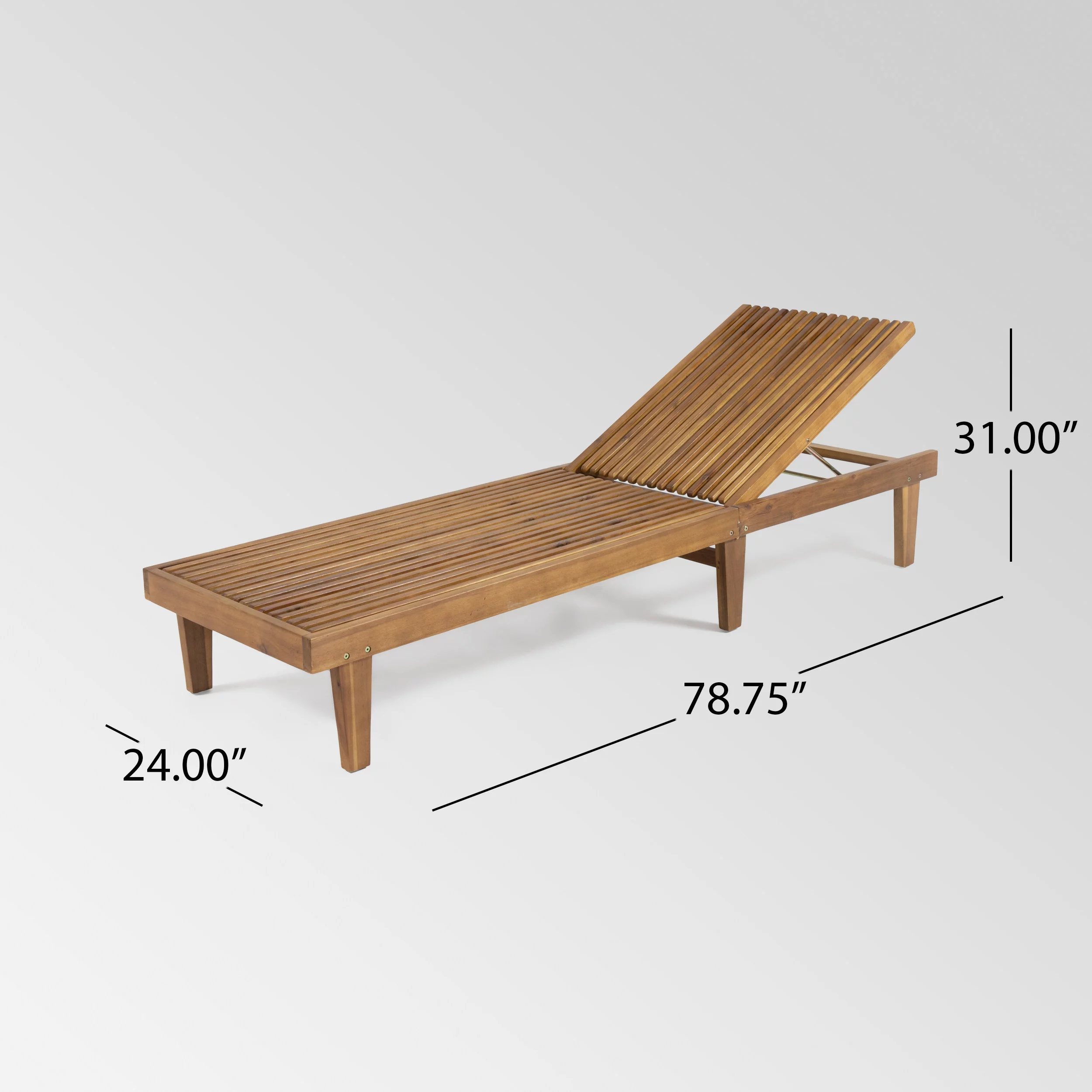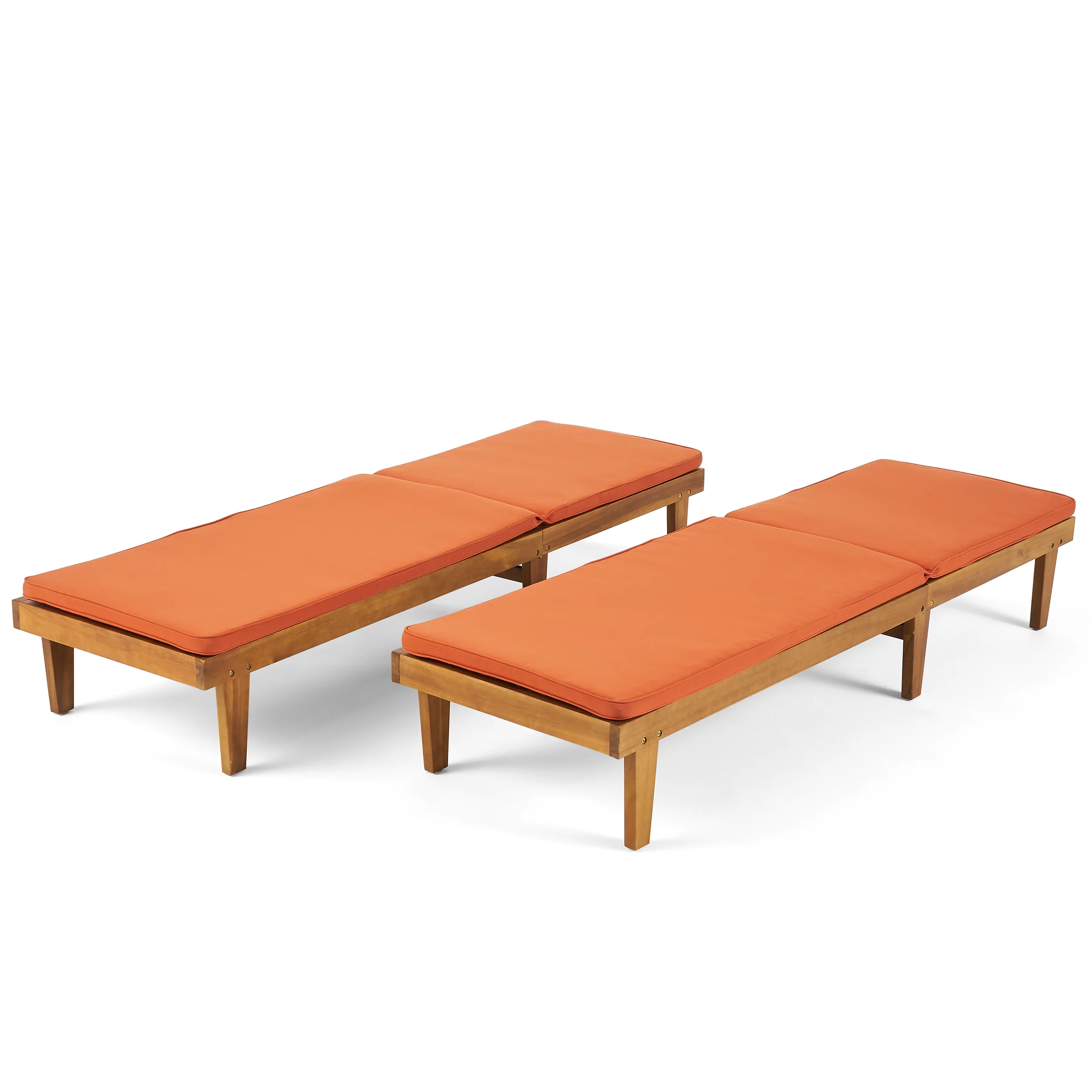 GDF Studio Teresa Outdoor Acacia Wood Armless Adjustable Chaise Lounges with Cushion, Set of 2, Teak and Rust Orange