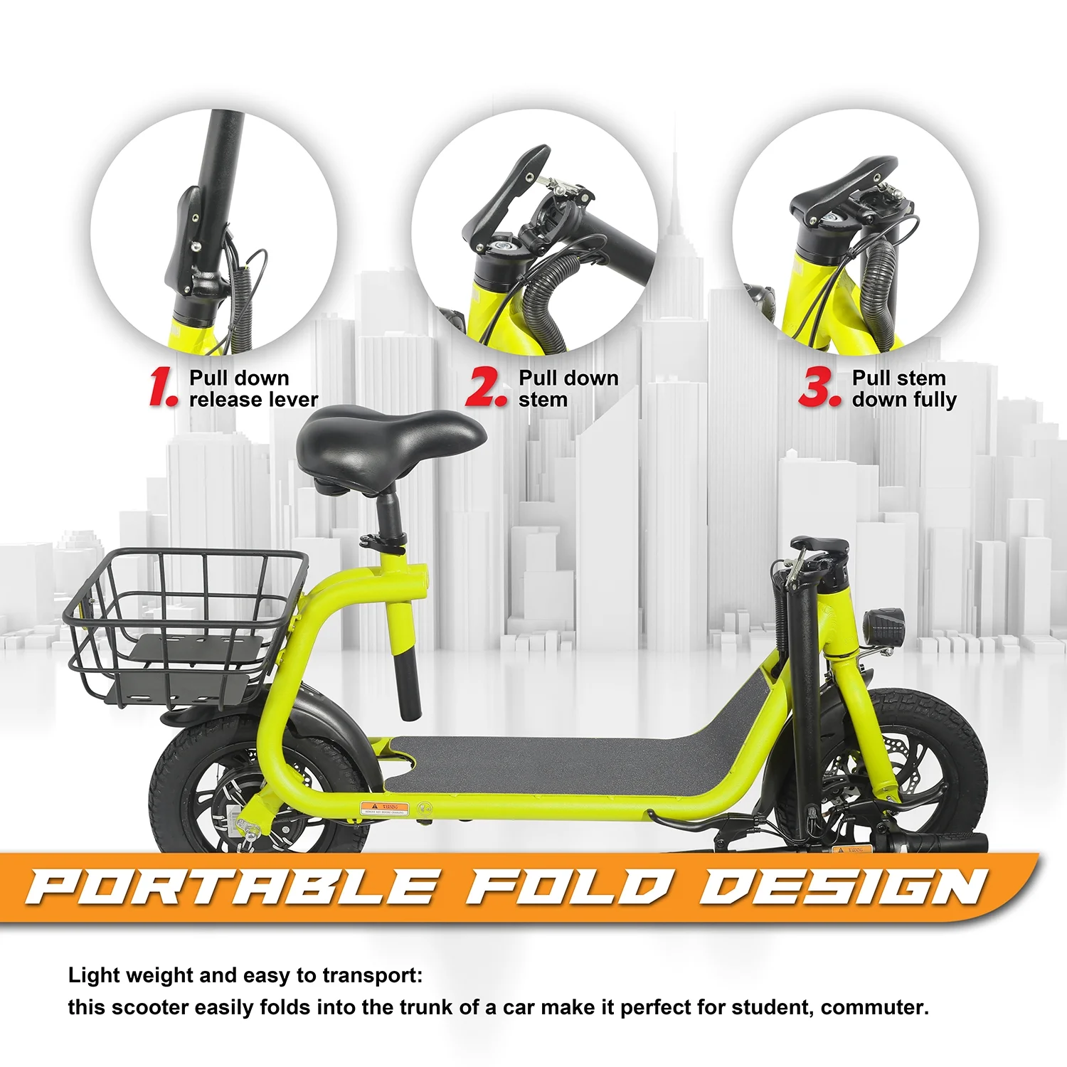 Cynetus Electric Bicycles Foldable Electric Scooter with Seat for Adults Electric Bike with Carry Basket