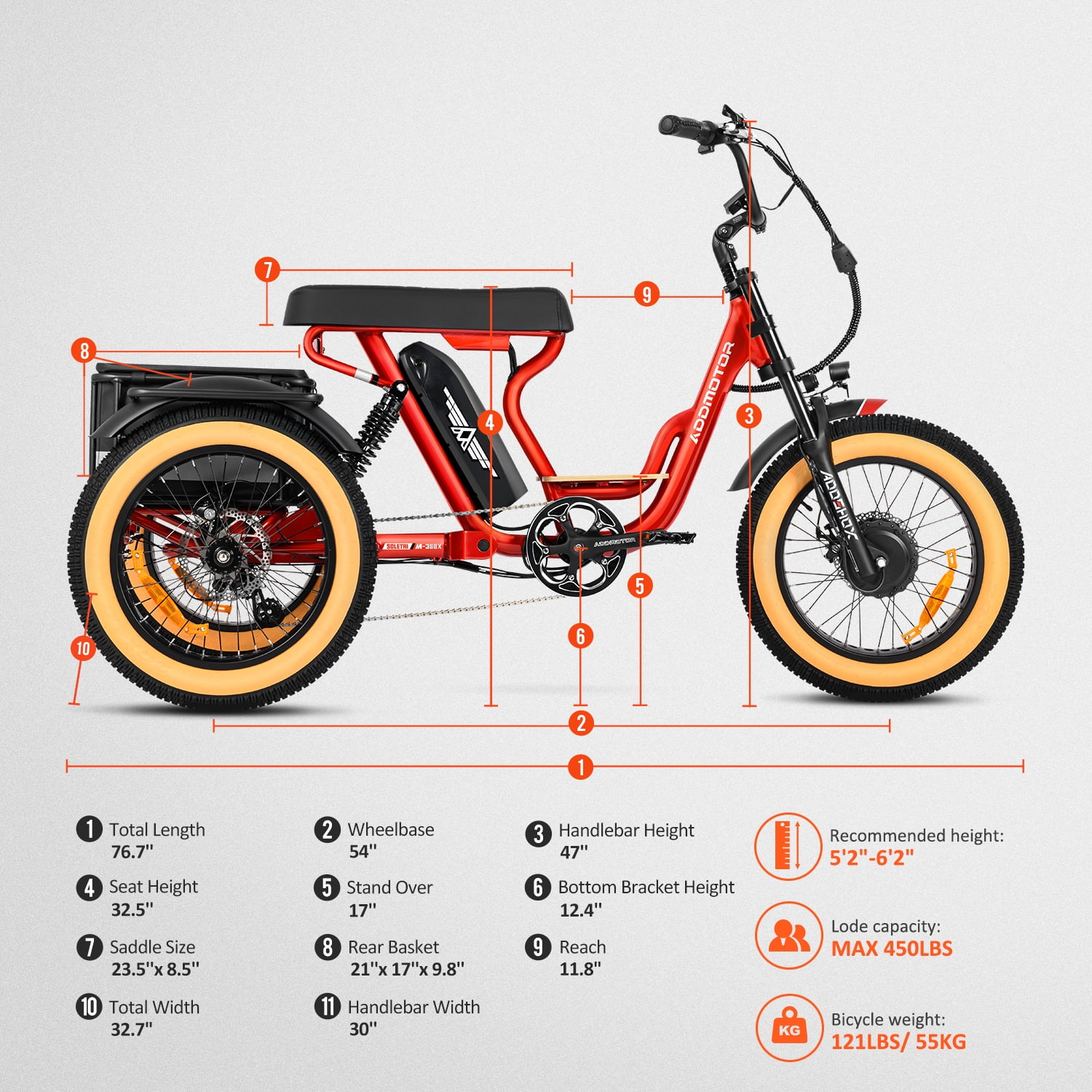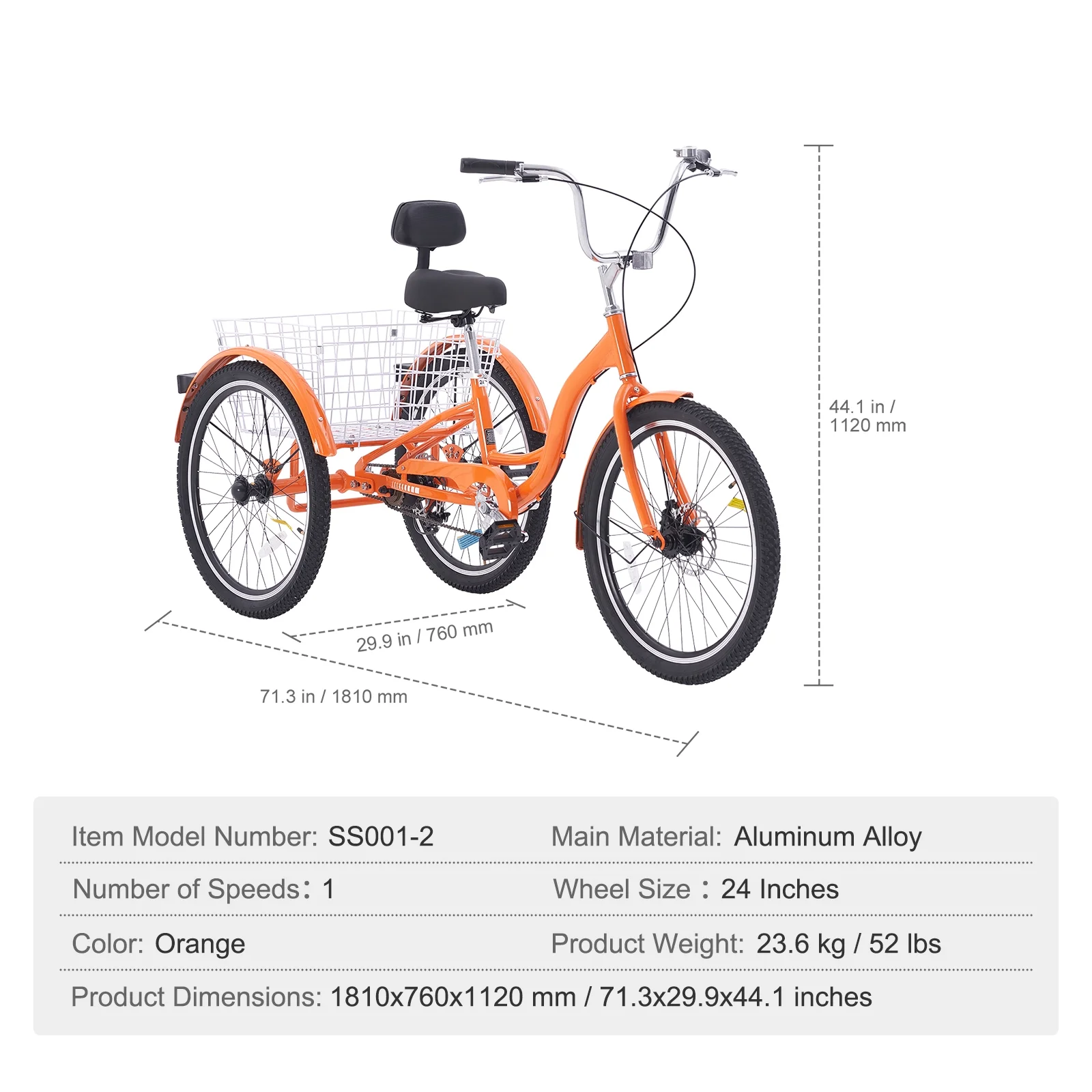 SKYSHALO 3 Wheel 24" Adult Tricycles Bike Bike Trike Bicycle Orange Aluminum Alloy