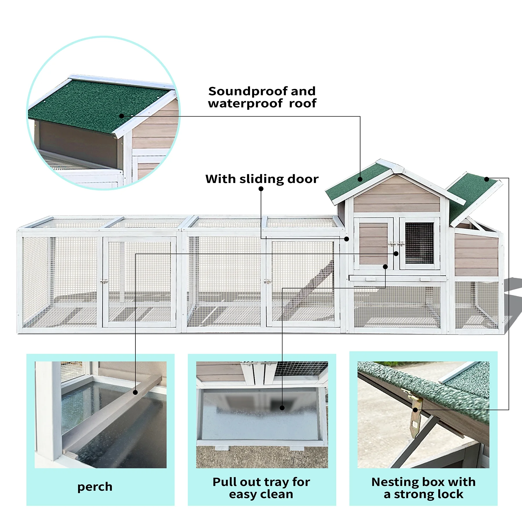 122" Wooden Chicken Coop and Rabbit Hutch with Nesting Box - Perfect Backyard Pet Cage for Chickens, Hens, and Rabbits