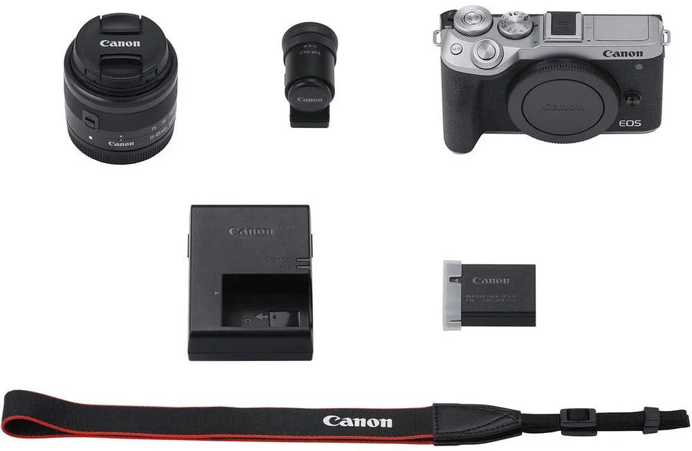 Canon EOS M6 Mark II Silver Mirrorless Camera & EF-M 15-45mm Lens Kit with EVF-DC2 Viewfinder, 64GB, Deluxe Bundle