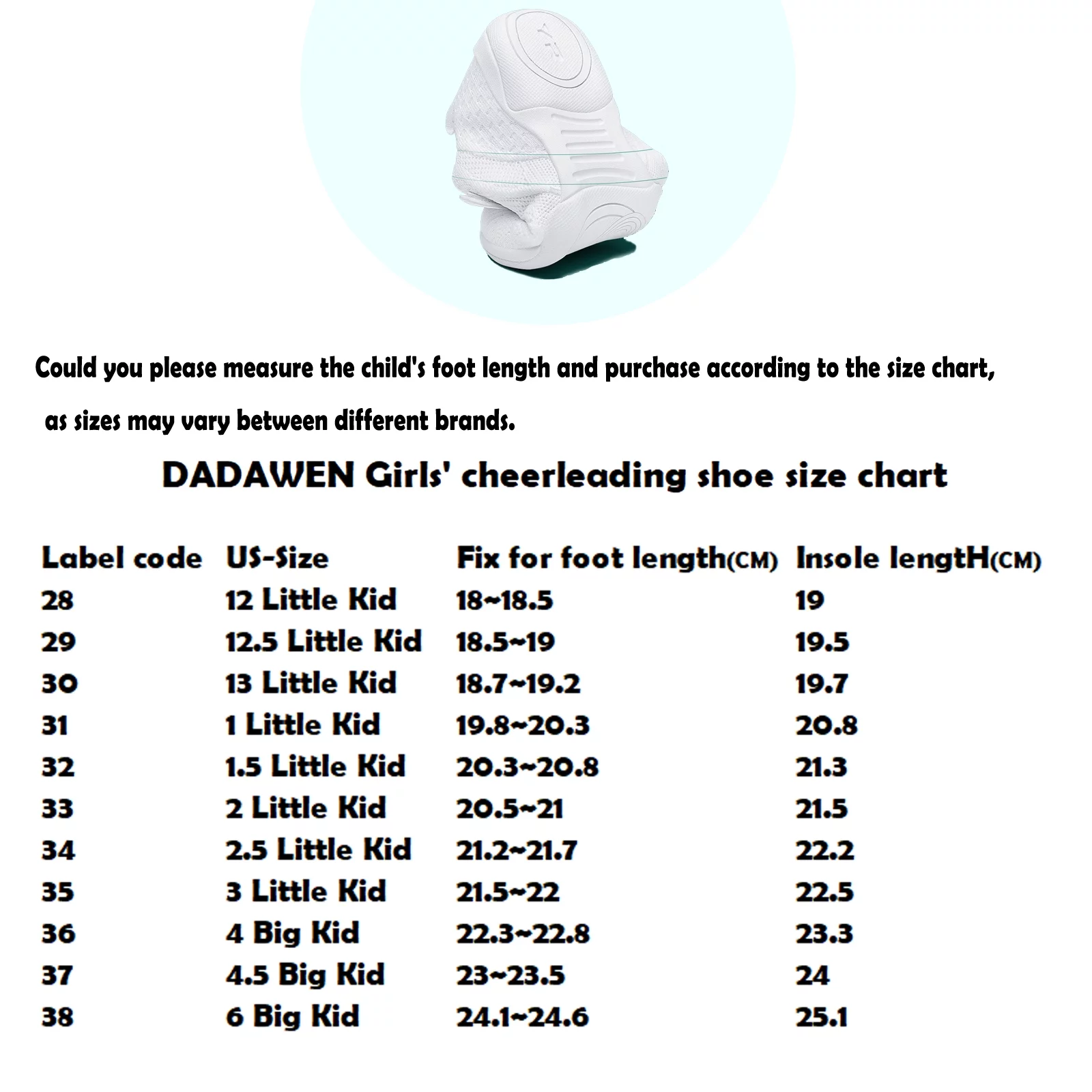 DADAWEN Girls Wihte Cheerleading Shoes Dance Fitness Training Athletic Cheer Sneakers for 13 Little Kid