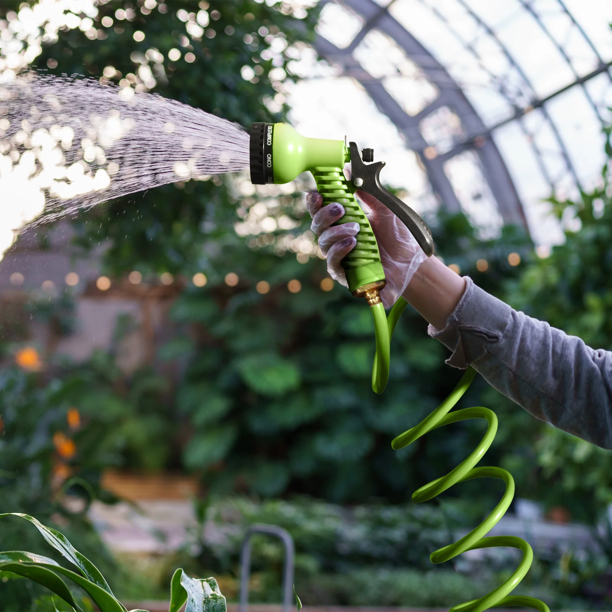 Eternal Living 50 ft Coil Garden Hose with 7-Pattern Function Sprayer and Brass Connectors, Green