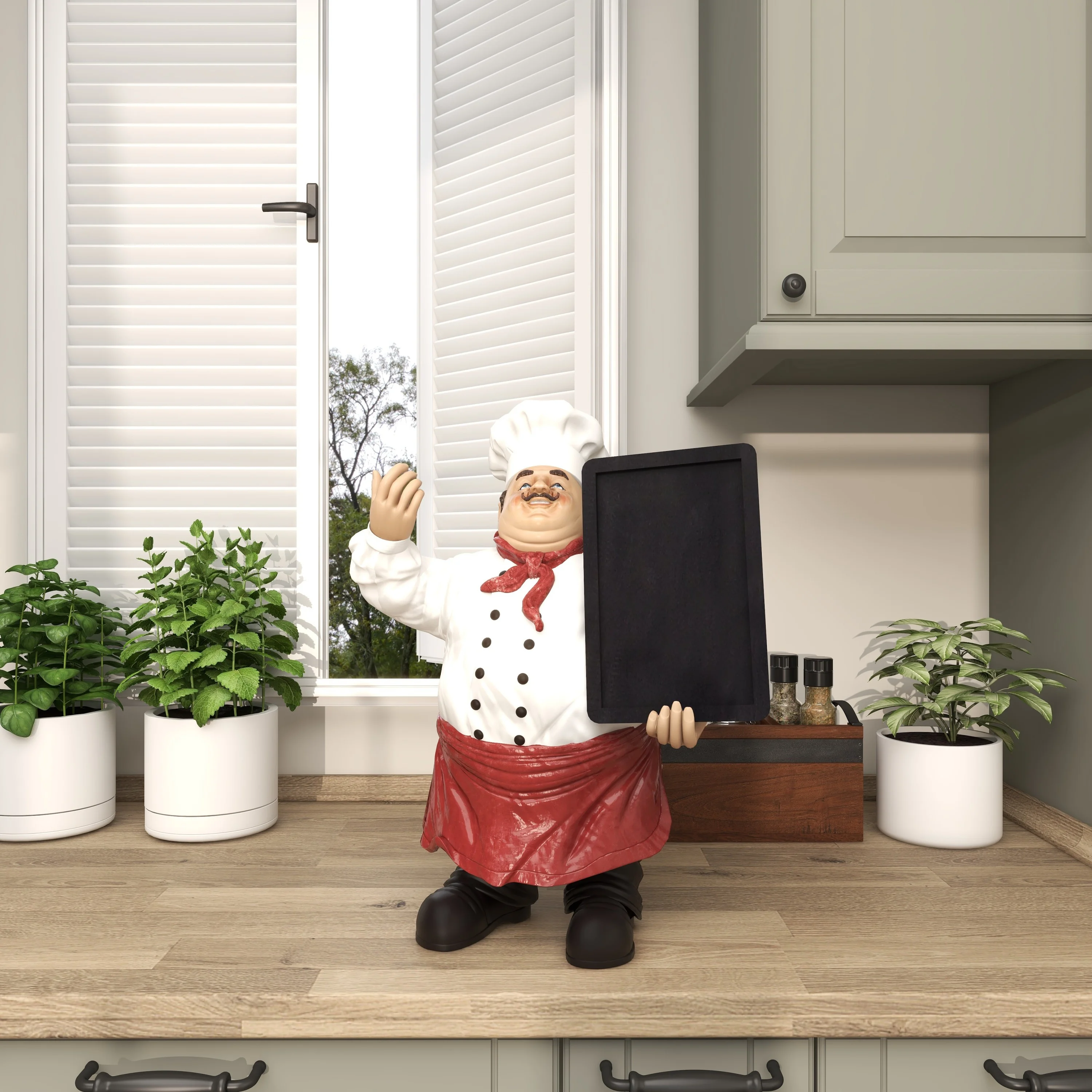 15" x 19" Multi Colored Polystone Chef Sculpture with Chalkboard, by DecMode