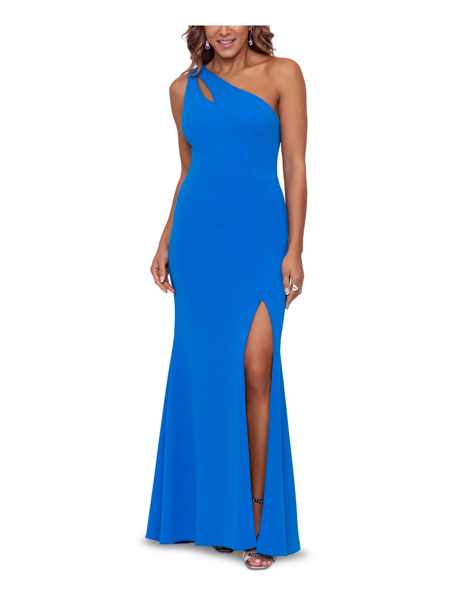 ADRIANNA PAPELL Womens Blue Sequined Asymmetrical Neckline Full-Length Evening Blouson Dress 8