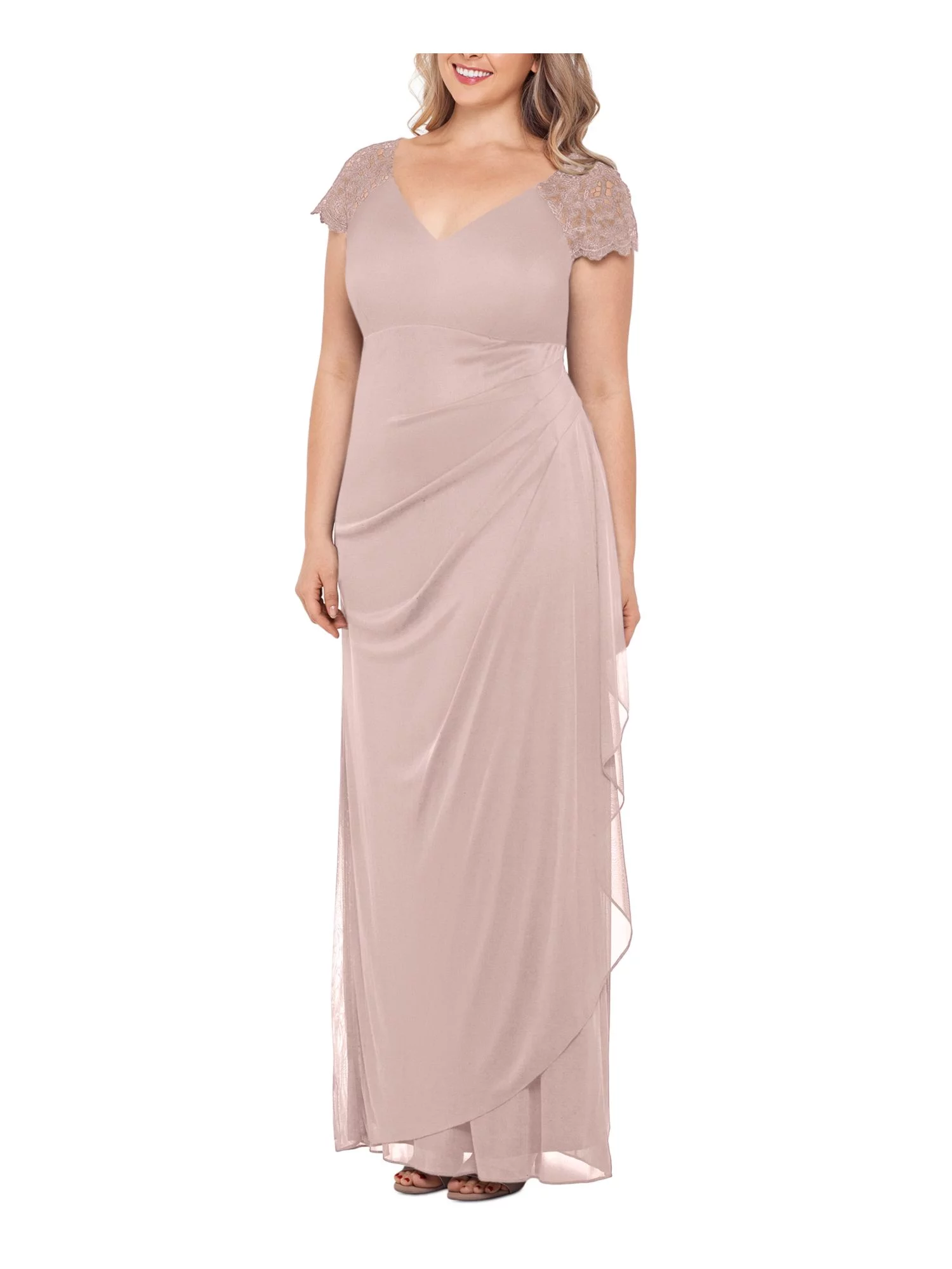 X BY XSCAPE Womens Pink Zippered Pleated Draped Skirt Cap Sleeve V Neck Full-Length Formal Gown Dress Plus 22W