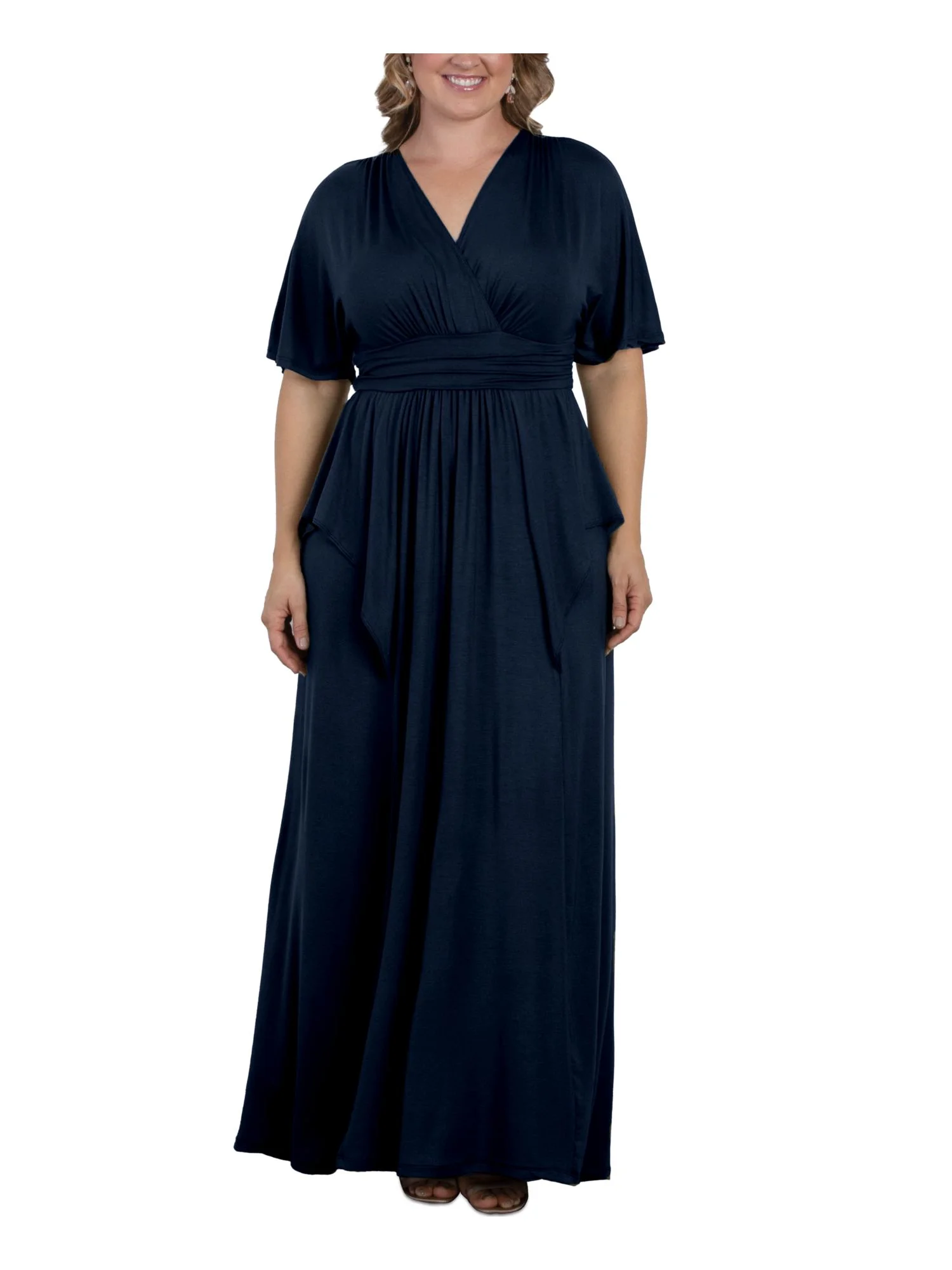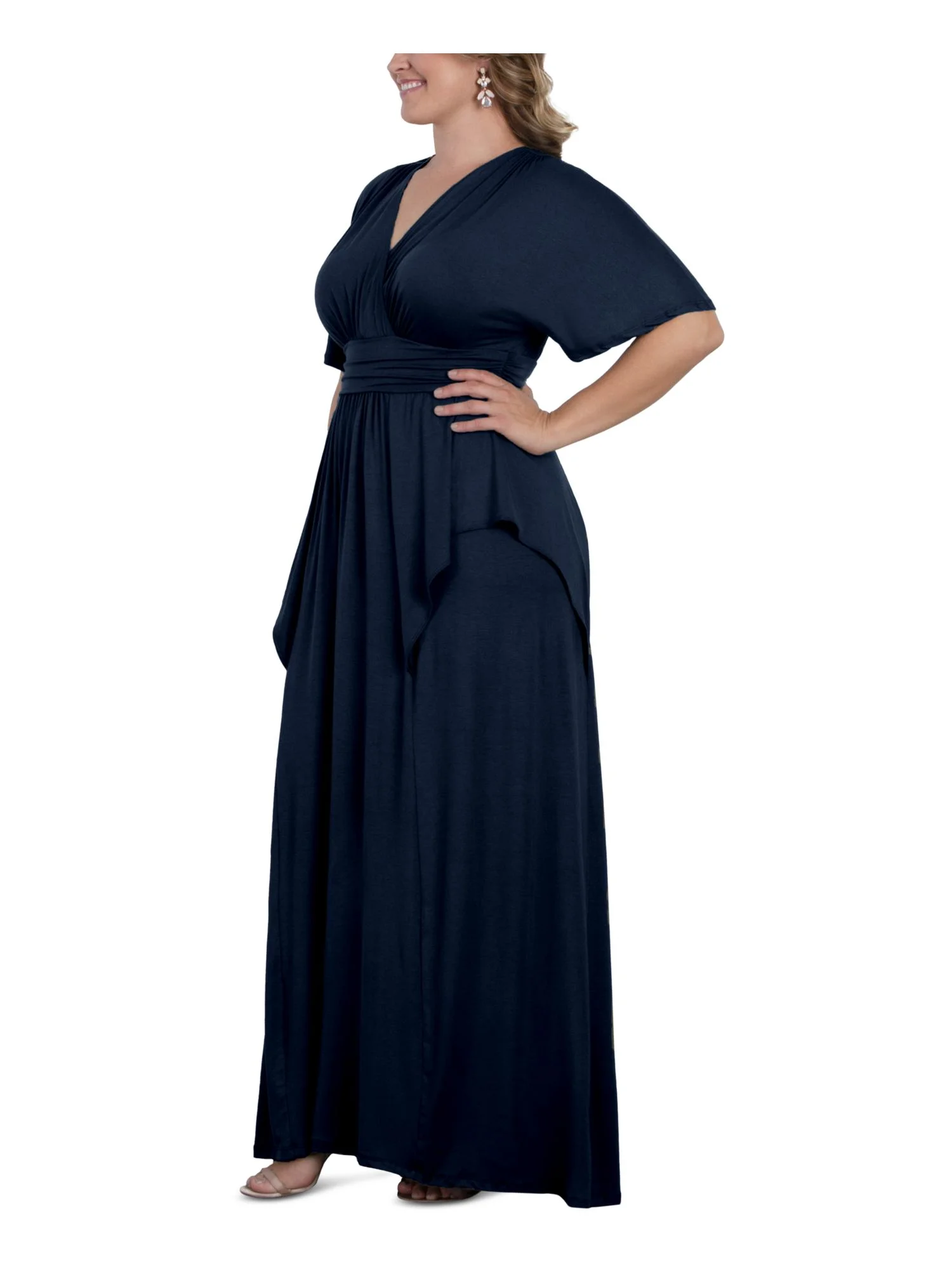 KIYONNA Womens Navy Gathered Ruffled Pullover Dolman Sleeve Surplice Neckline Full-Length Empire Waist Dress Plus 3X