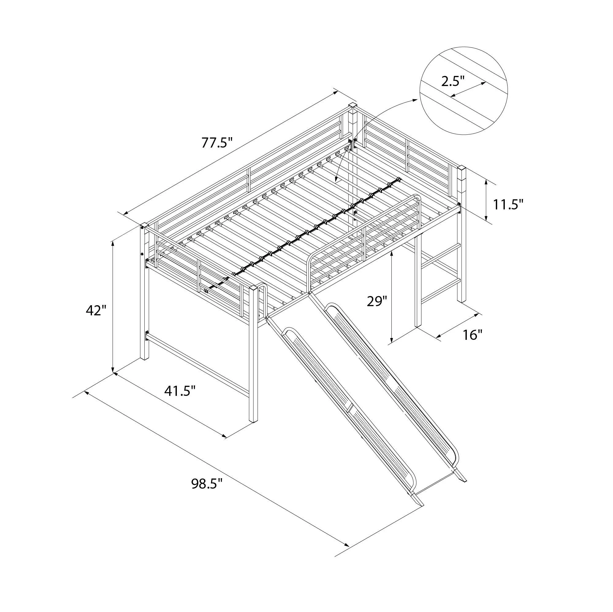 CRO Decor Twin Over Twin Bunk Bed with Two Drawers and Slide (White)