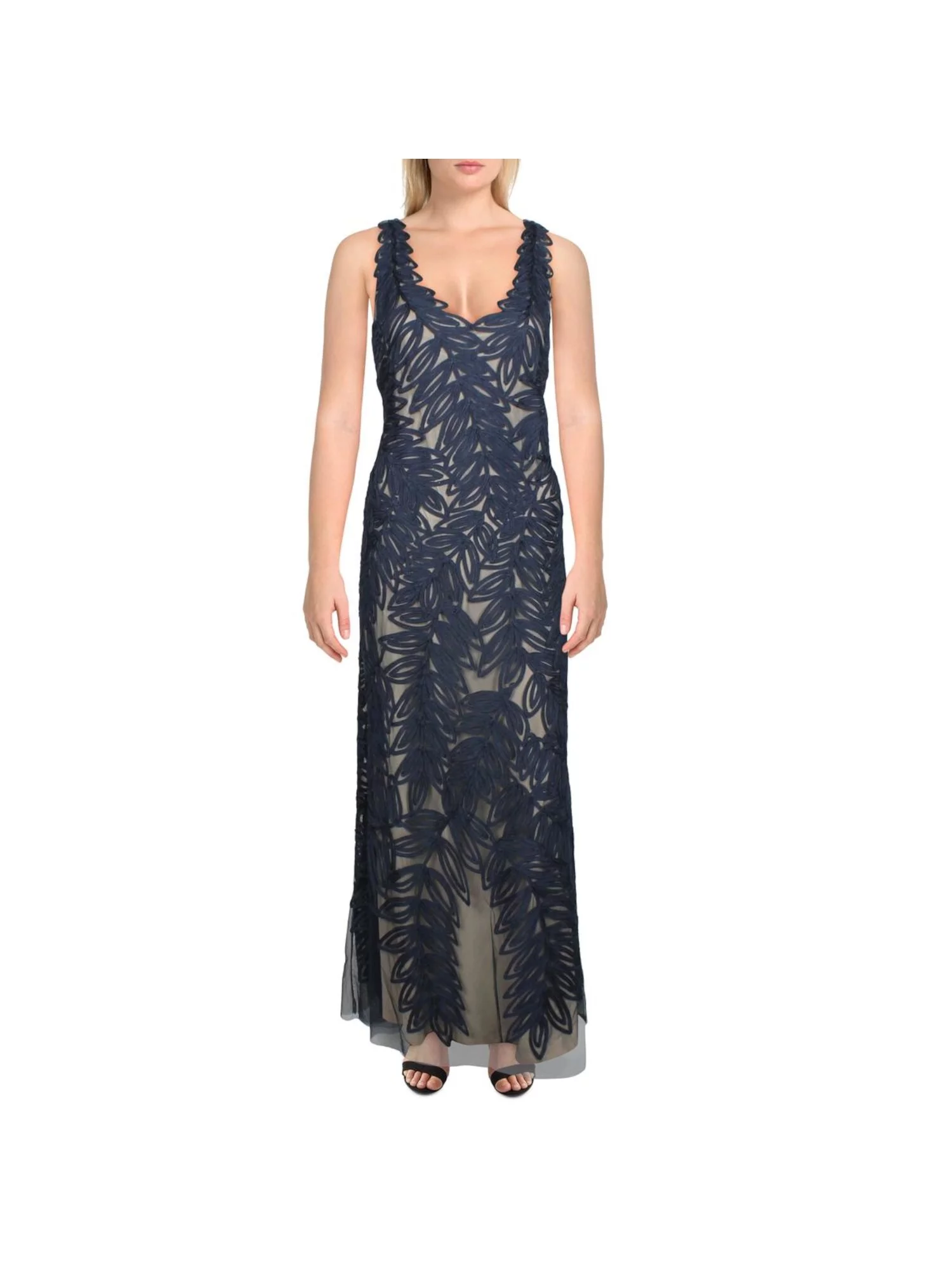 JS COLLECTION Womens Navy Zippered Sleeveless V Neck Full-Length Evening Shift Dress 10