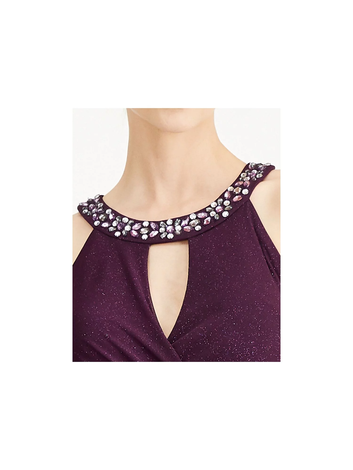 Jessica Howard Women's Purple Sleeveless Full-Length Fit + Flare Formal Dress 6
