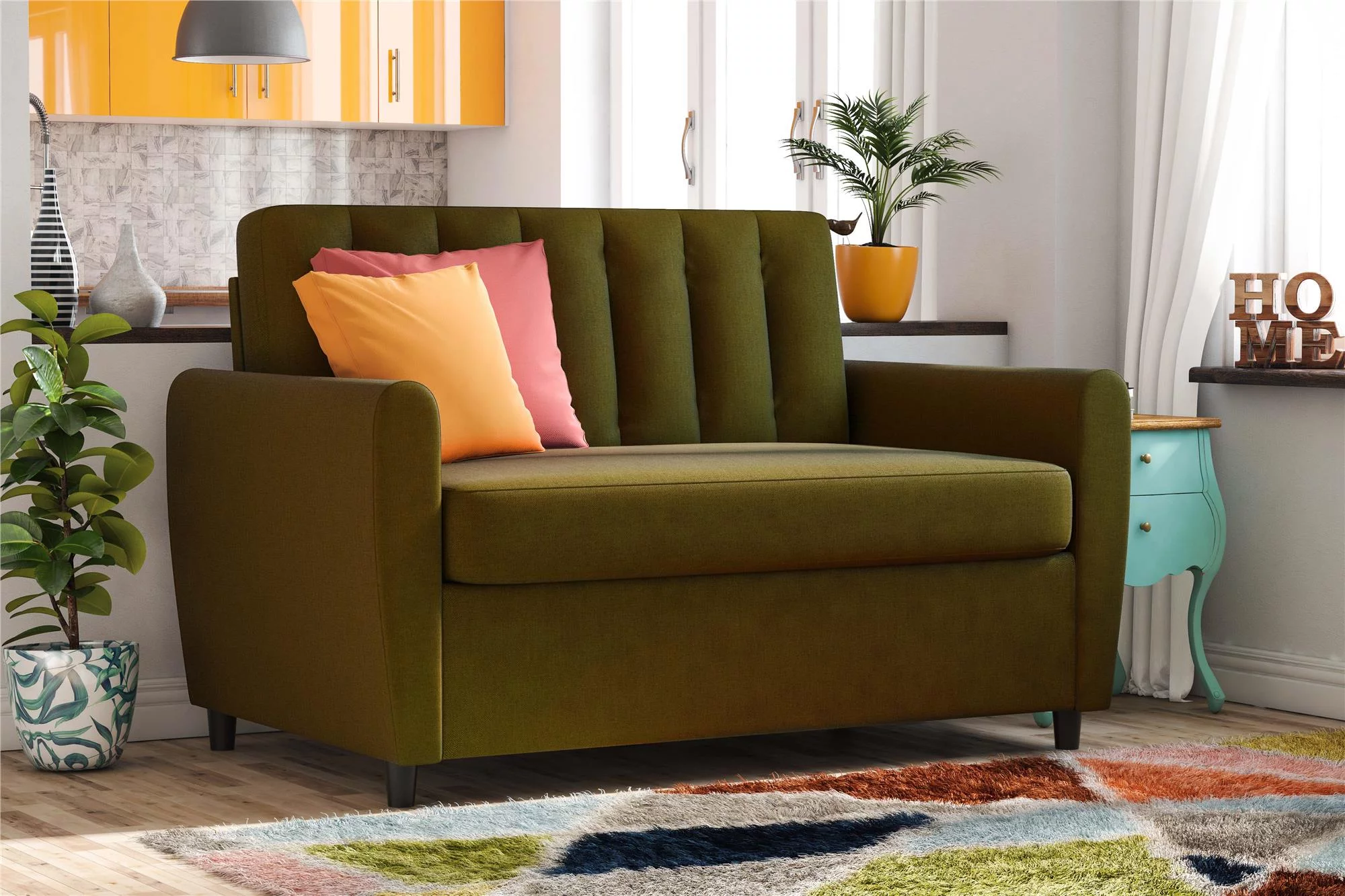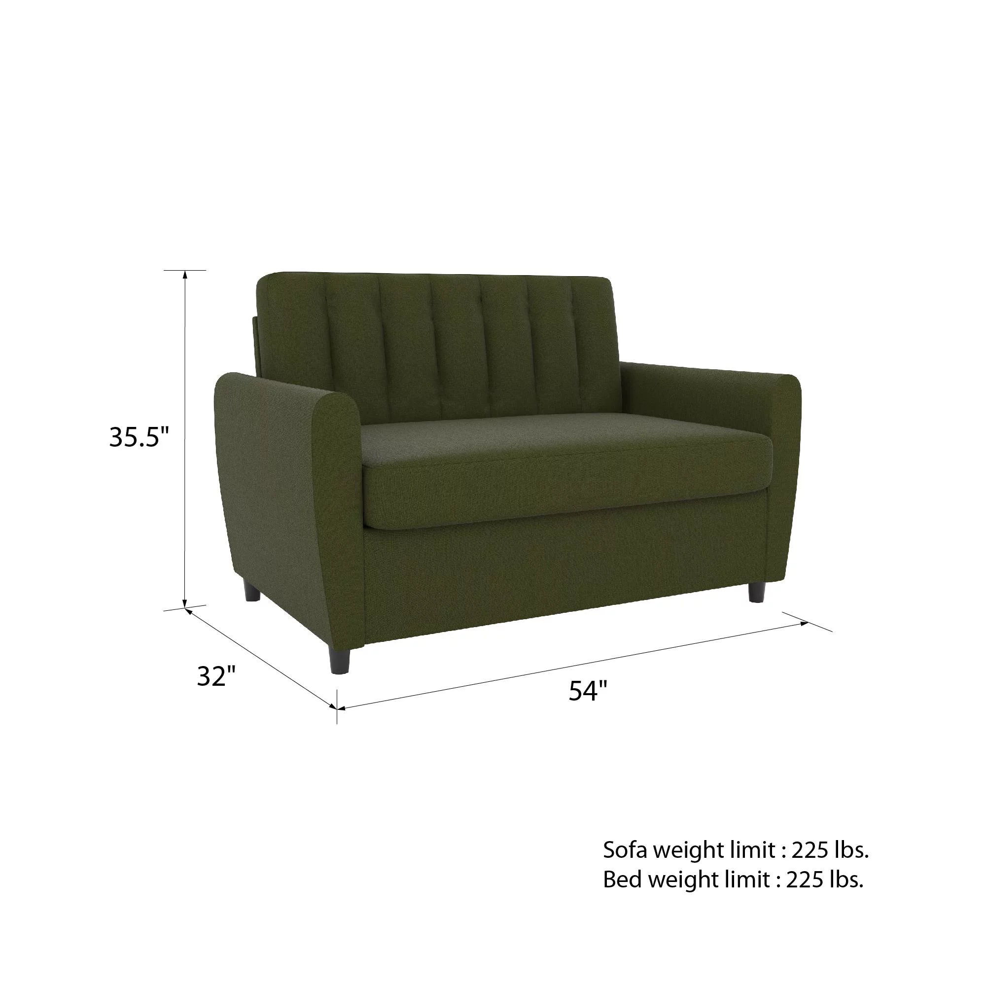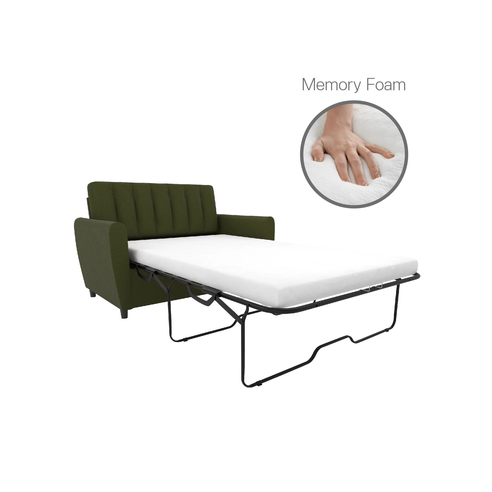 Novogratz Brittany Loveseat Sleeper Sofa with Memory Foam Twin Mattress - Green Linen