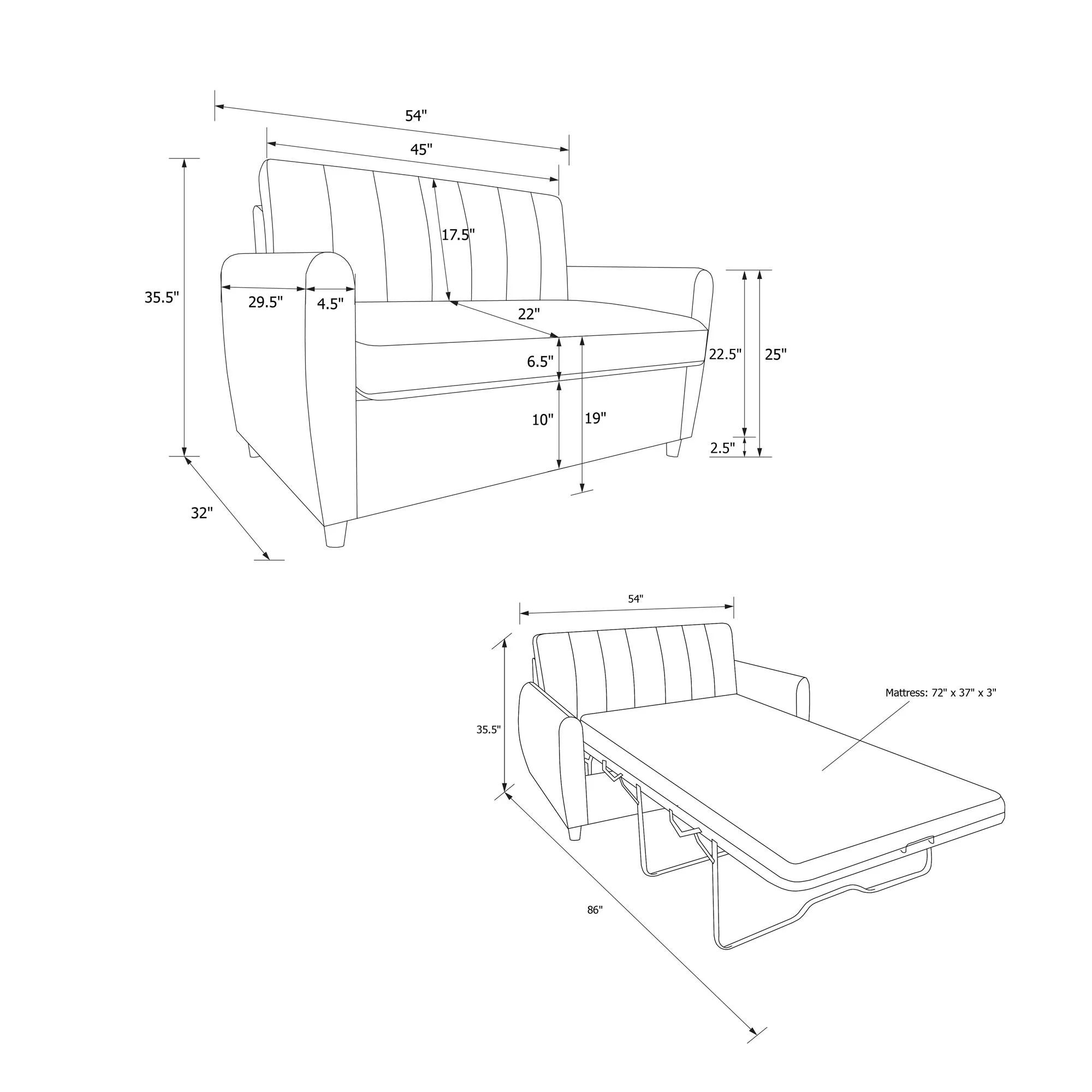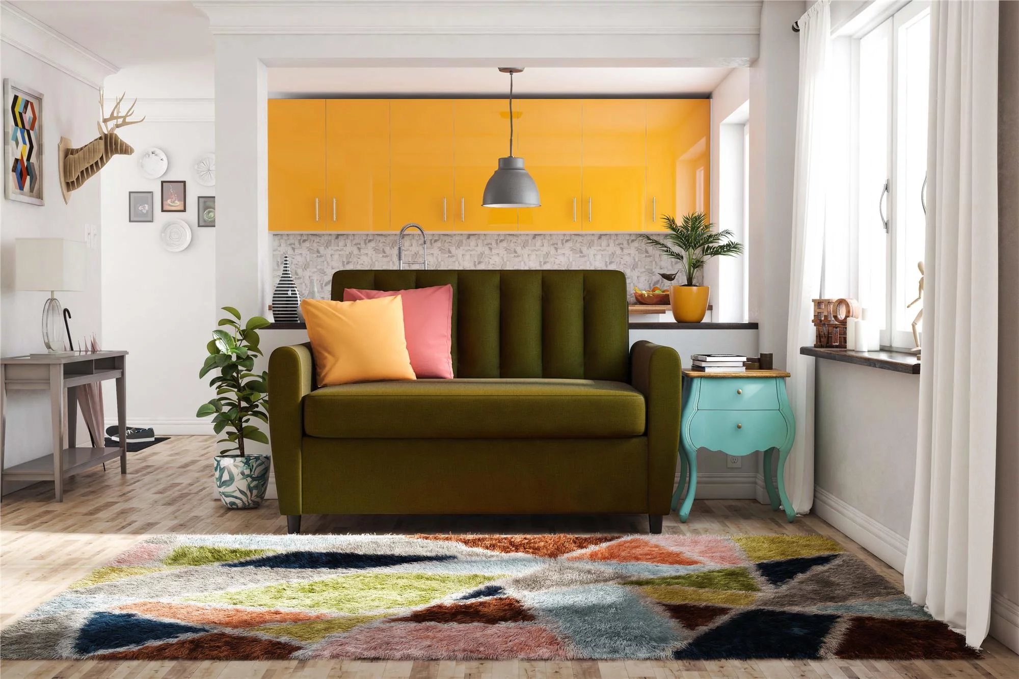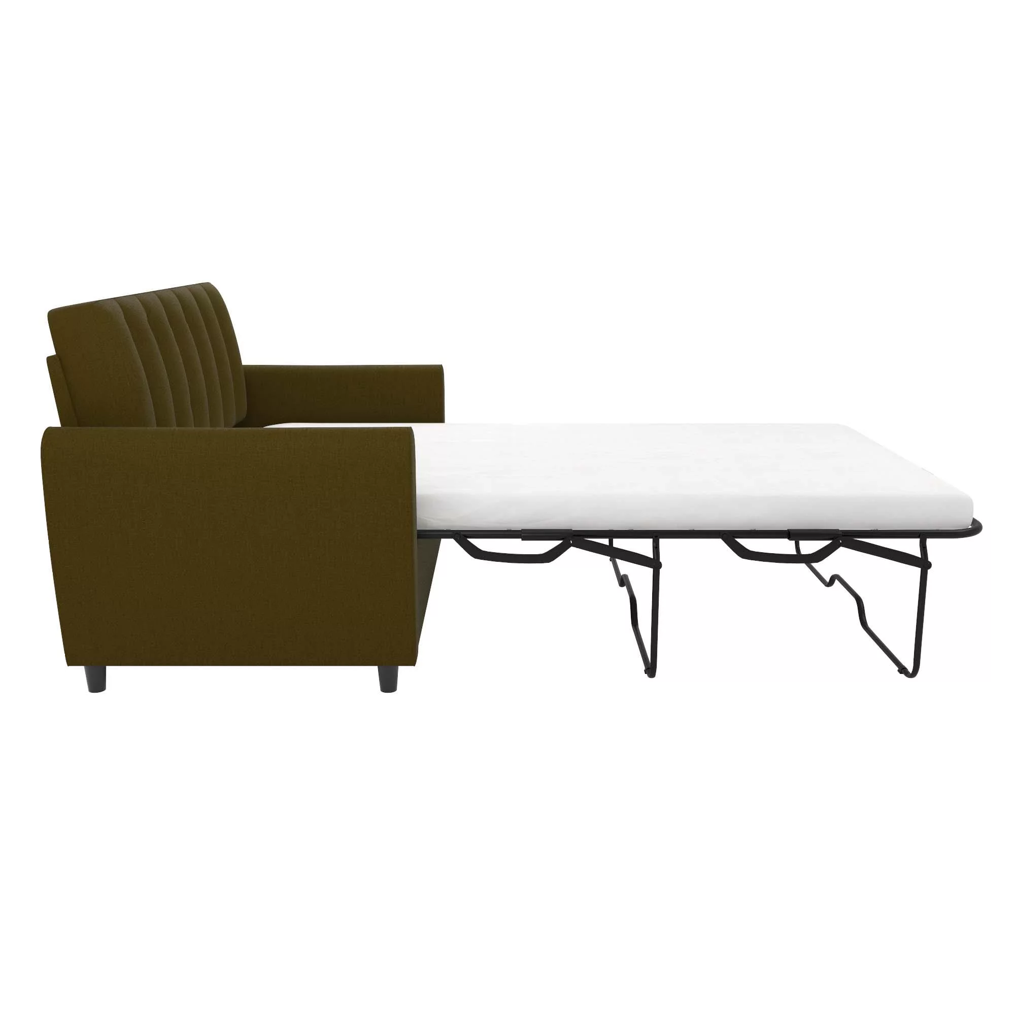 Novogratz Brittany Loveseat Sleeper Sofa with Memory Foam Twin Mattress - Green Linen