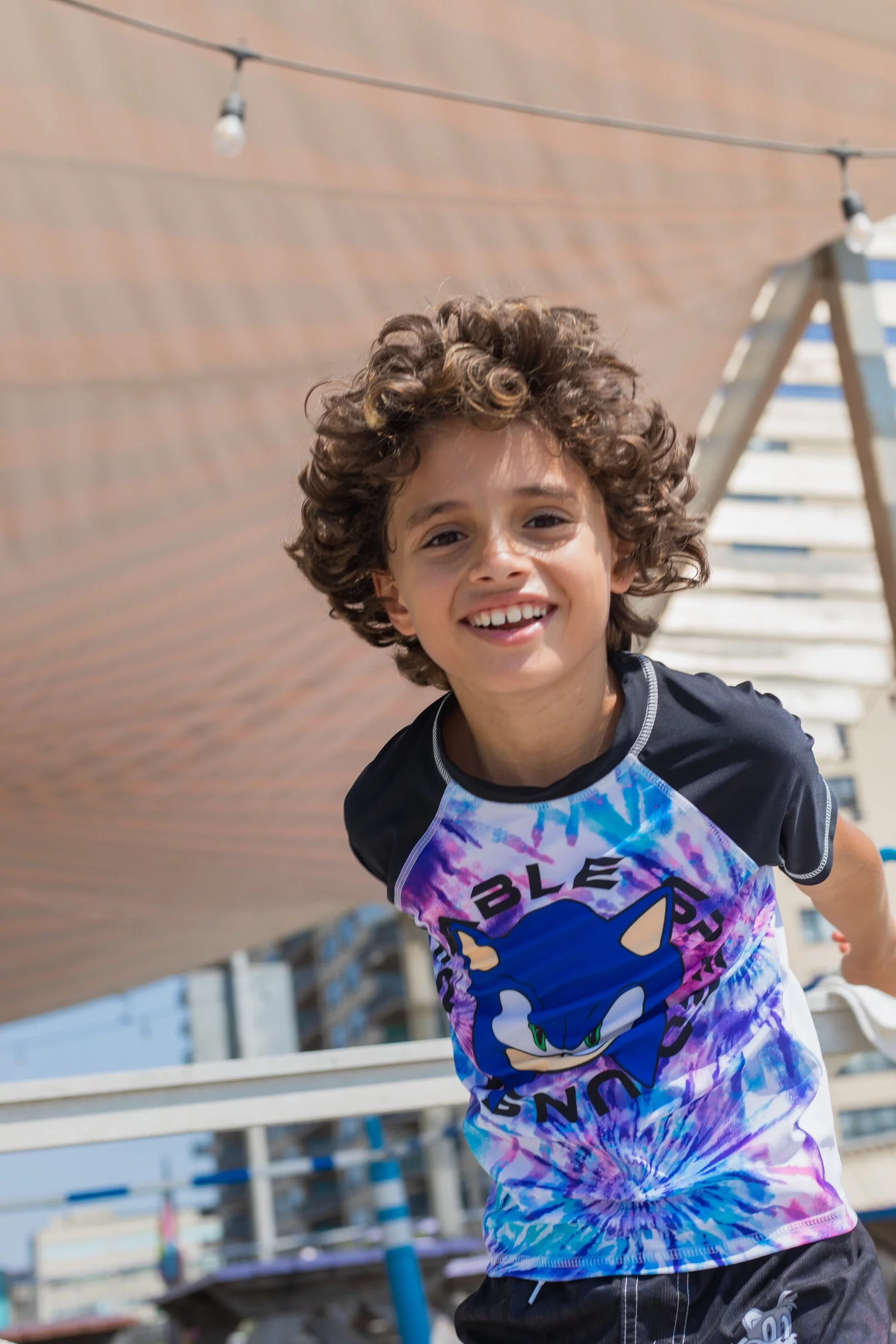 SEGA Sonic The Hedgehog Tails Knuckles Big Boys Pullover Rash Guard and Swim Trunks Outfit Set Little Kid to Big Kid