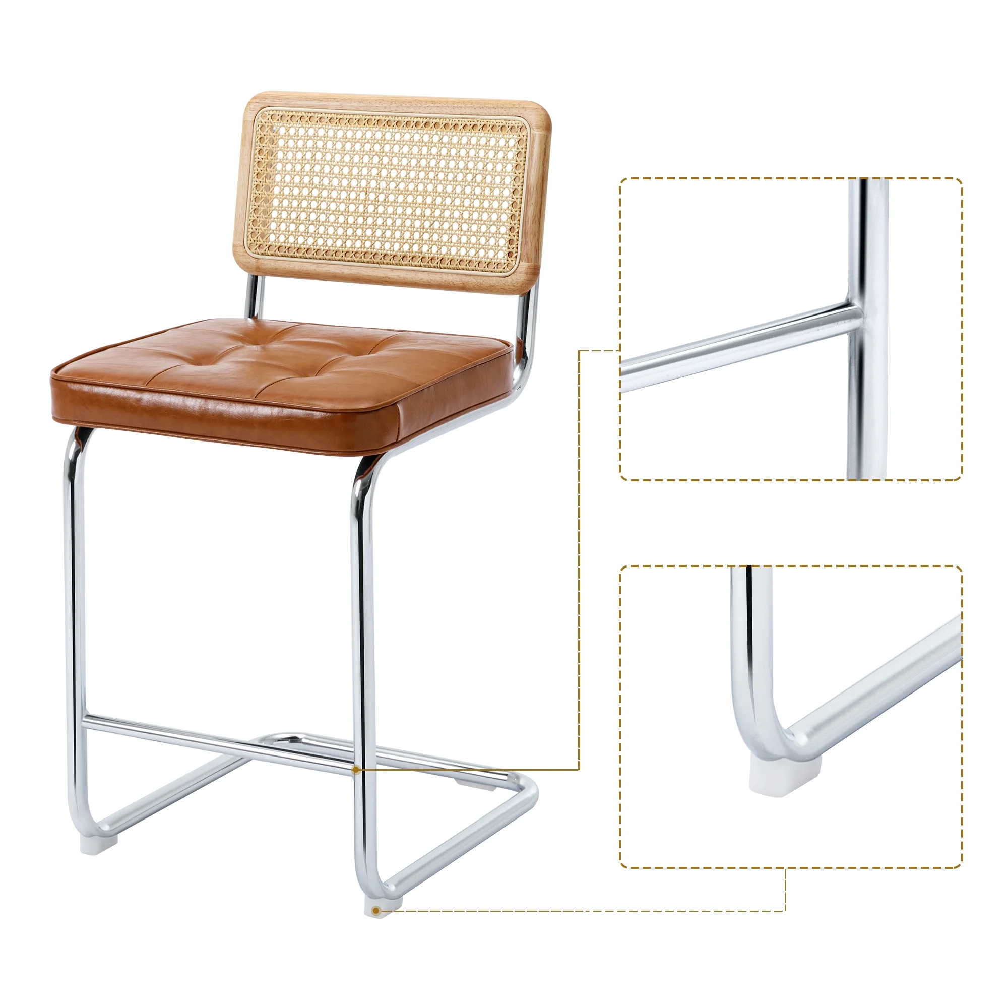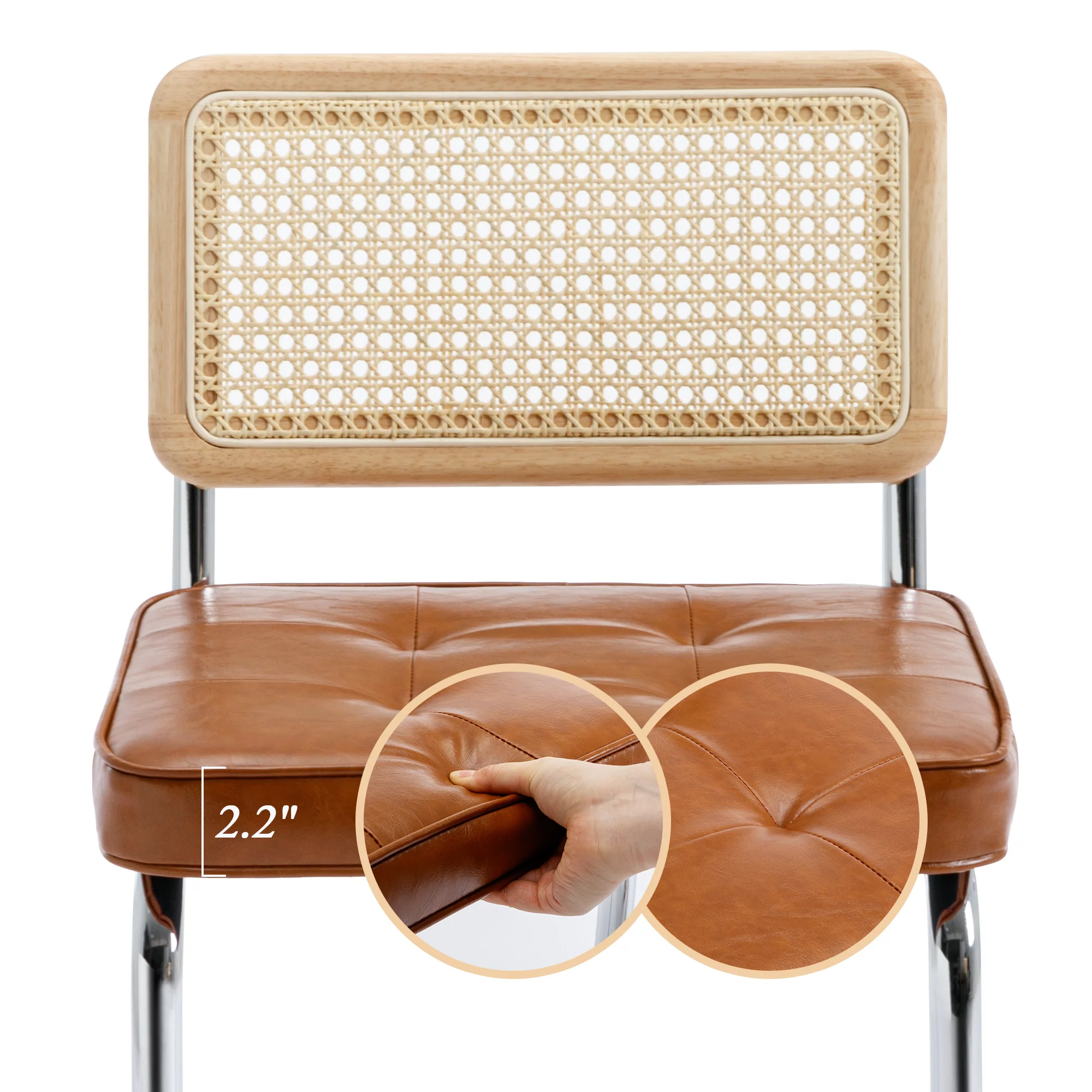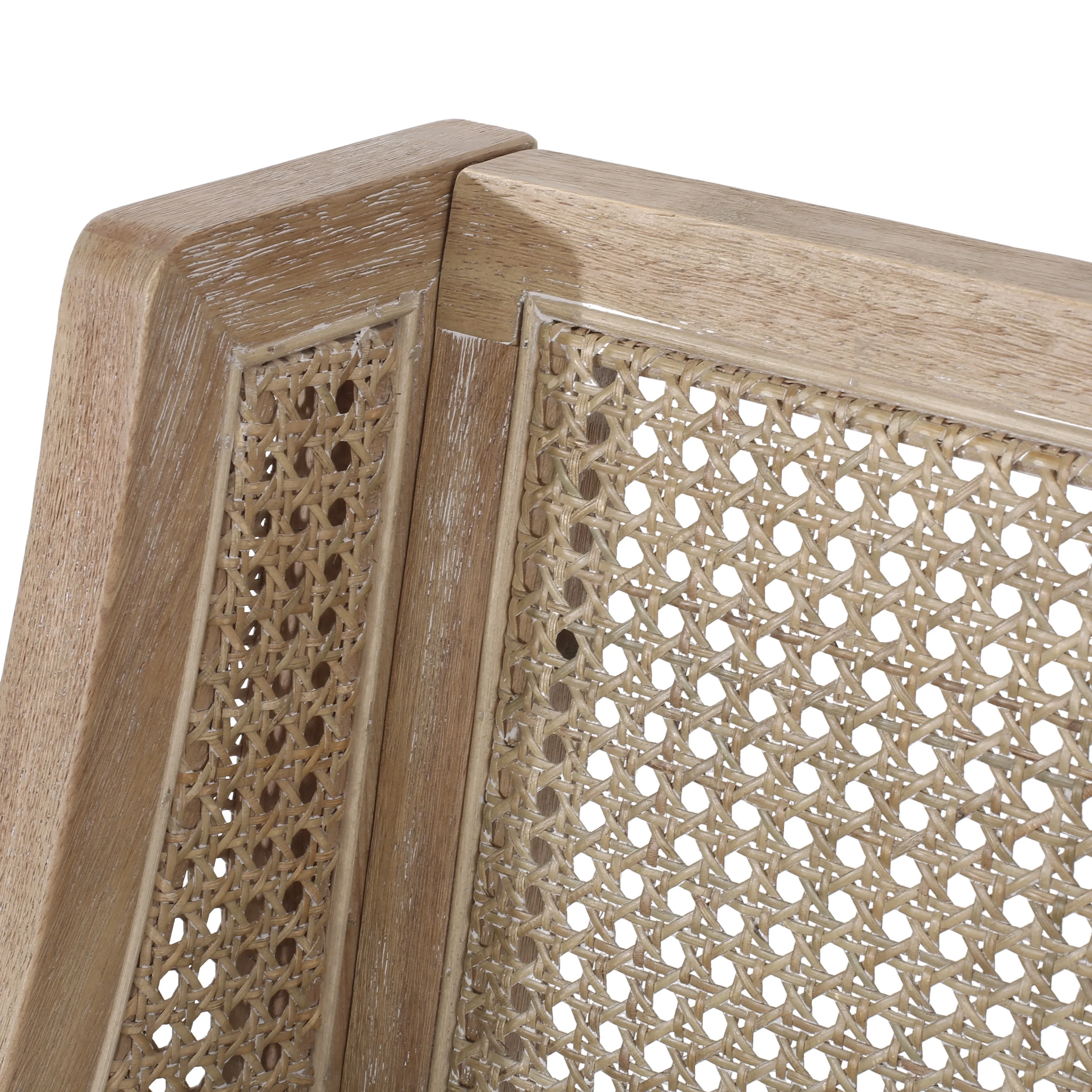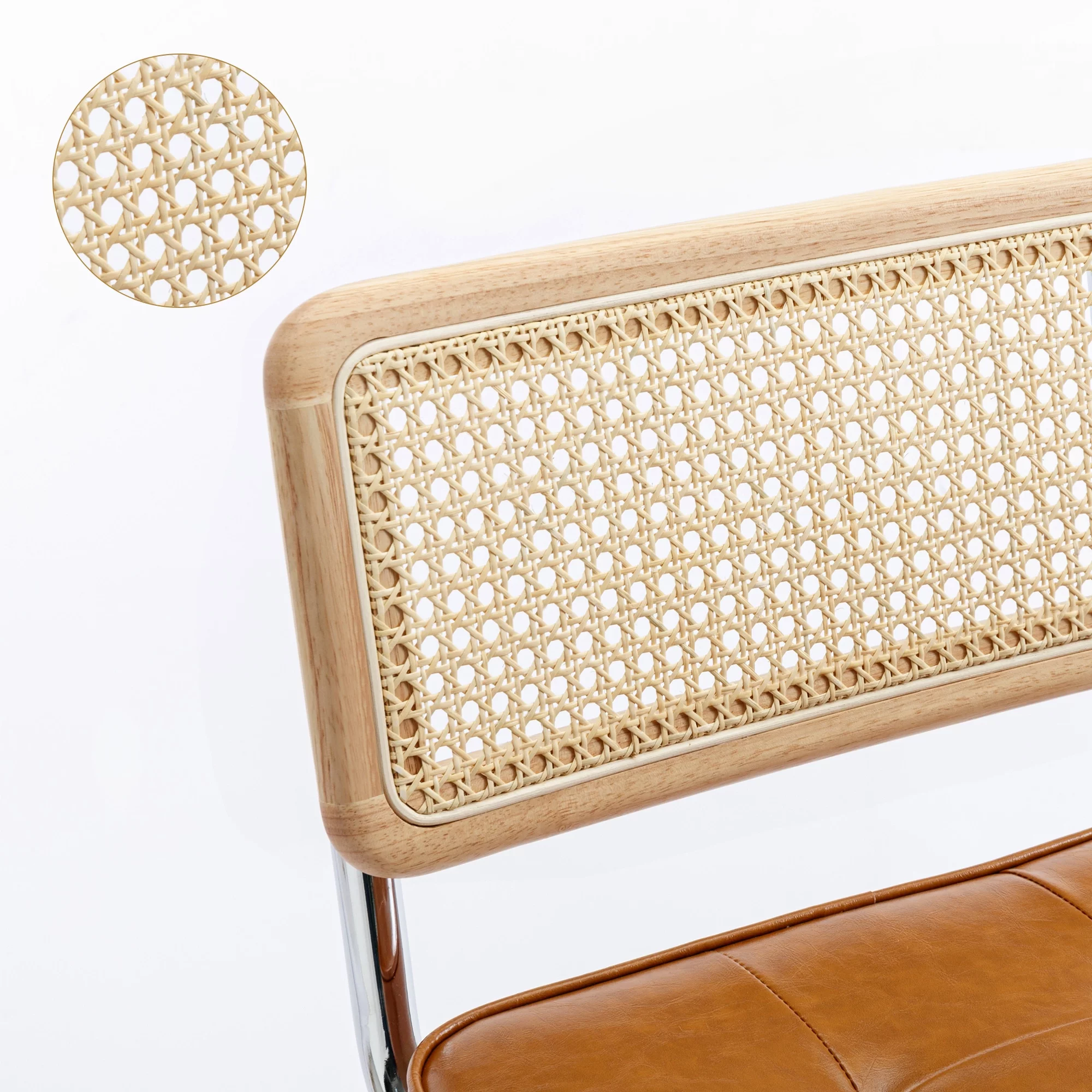 GDF Studio Brownell French Country Wood and Cane Upholstered Dining Chairs, Set of 6, Beige and Natural