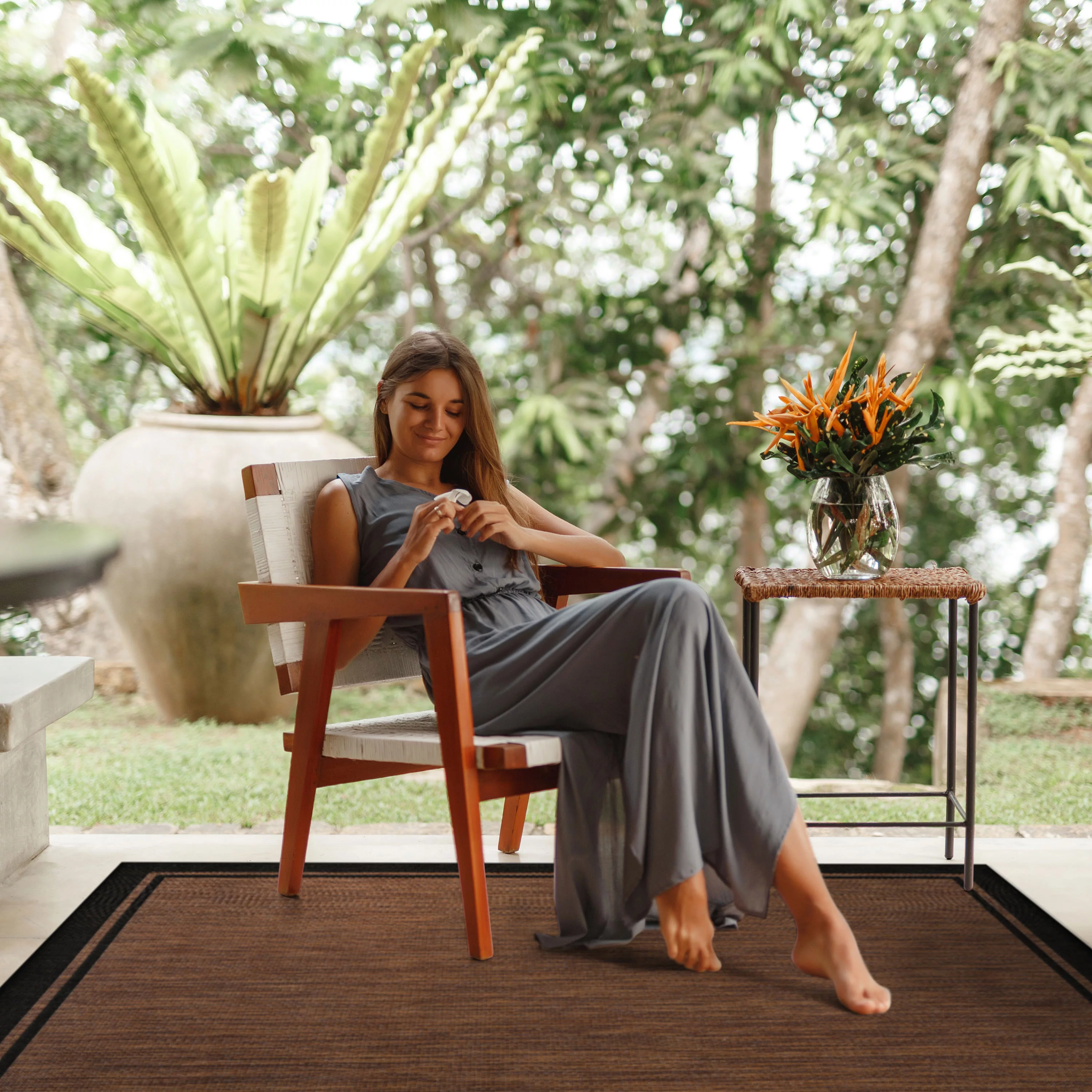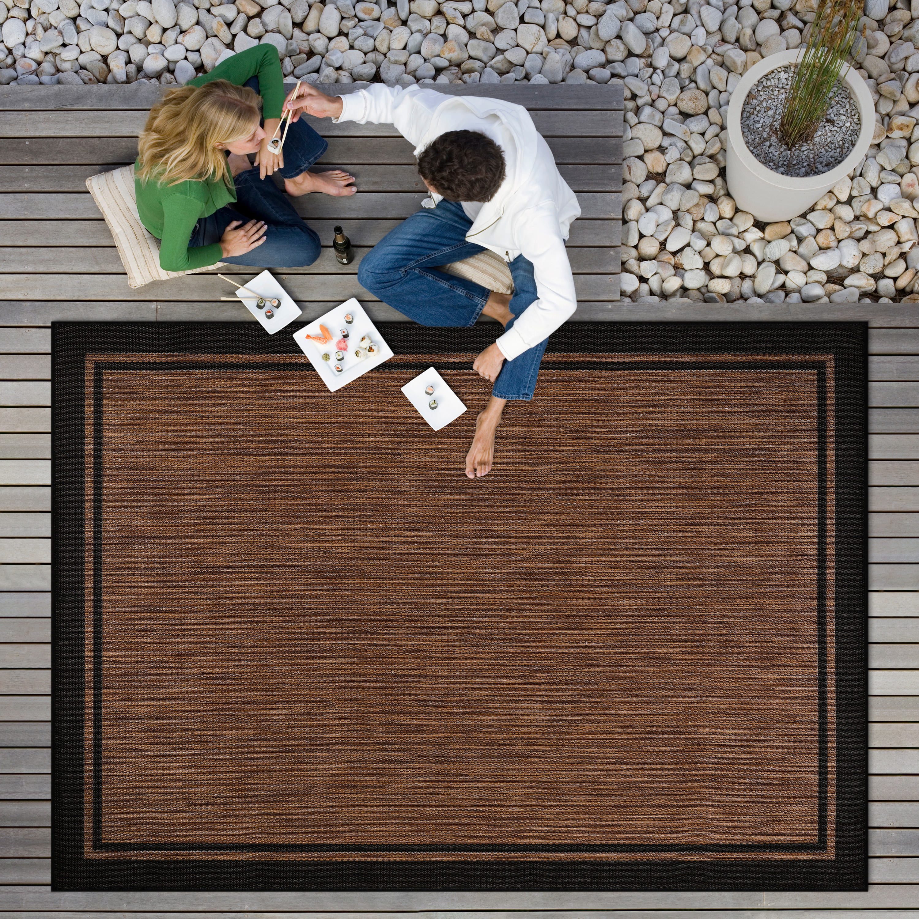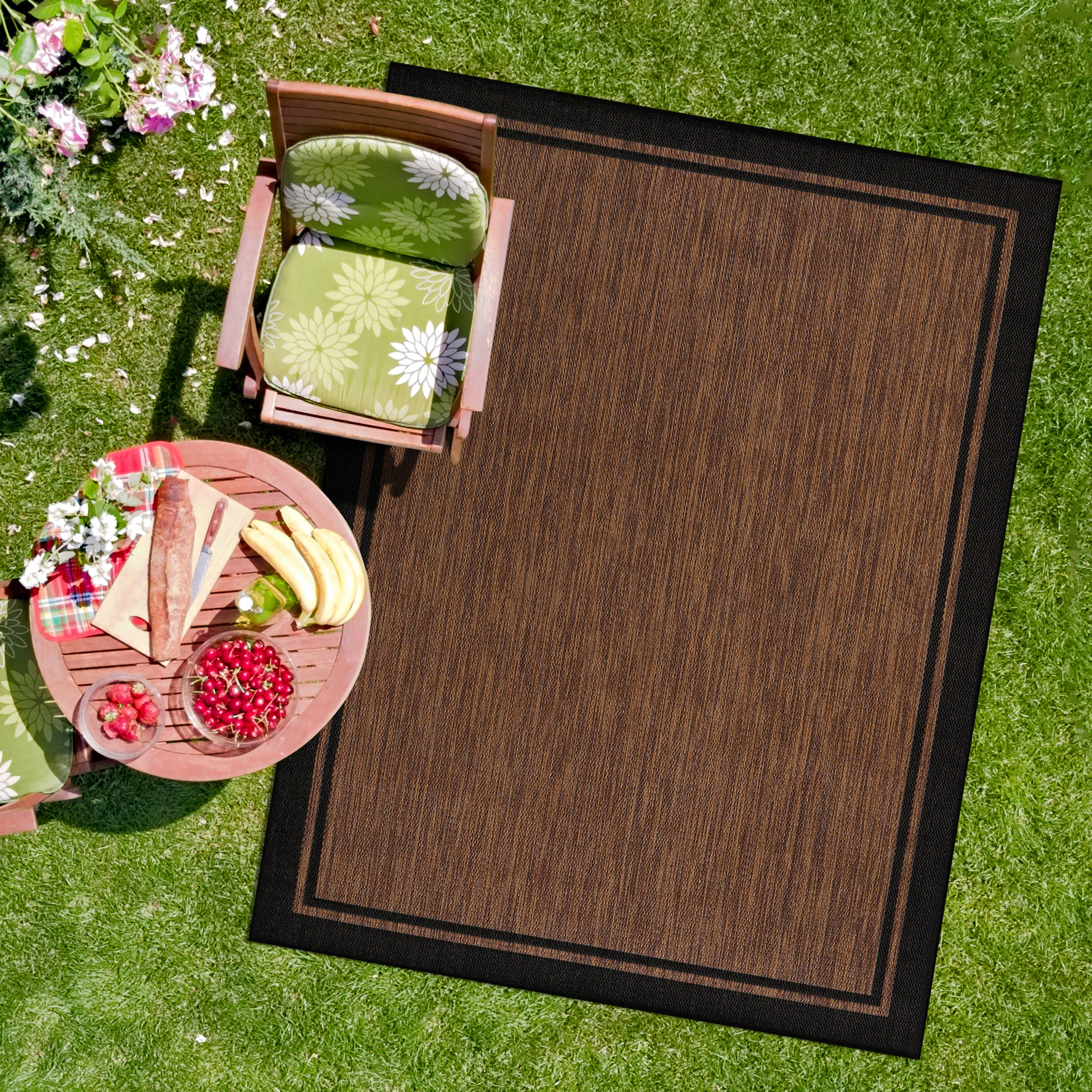 CAMILSON Summer Bordered, Washable Outdoor Indoor Area Rug, Nut Brown, 5x7