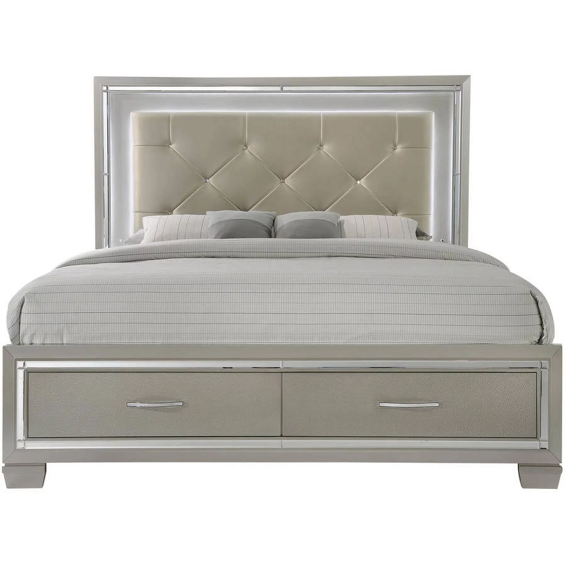 Leatherette Eastern King Bed with LED Panel Headboard and Chrome LegsWhite- Saltoro Sherpi