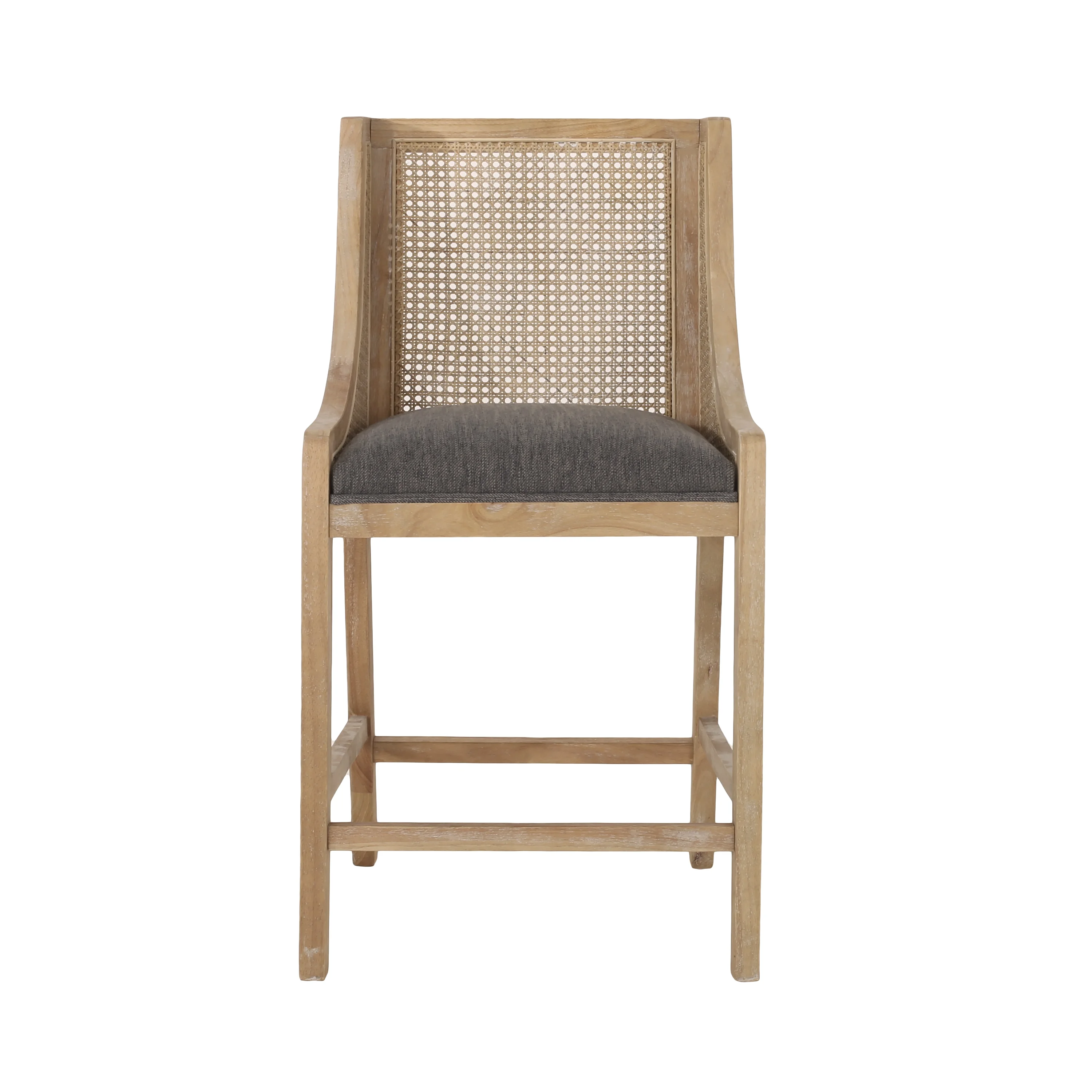 GDF Studio Deville French Country Fabric Upholstered Wood and Cane 25.5 inch Counter Stools, Set of 2, Charcoal and Natural