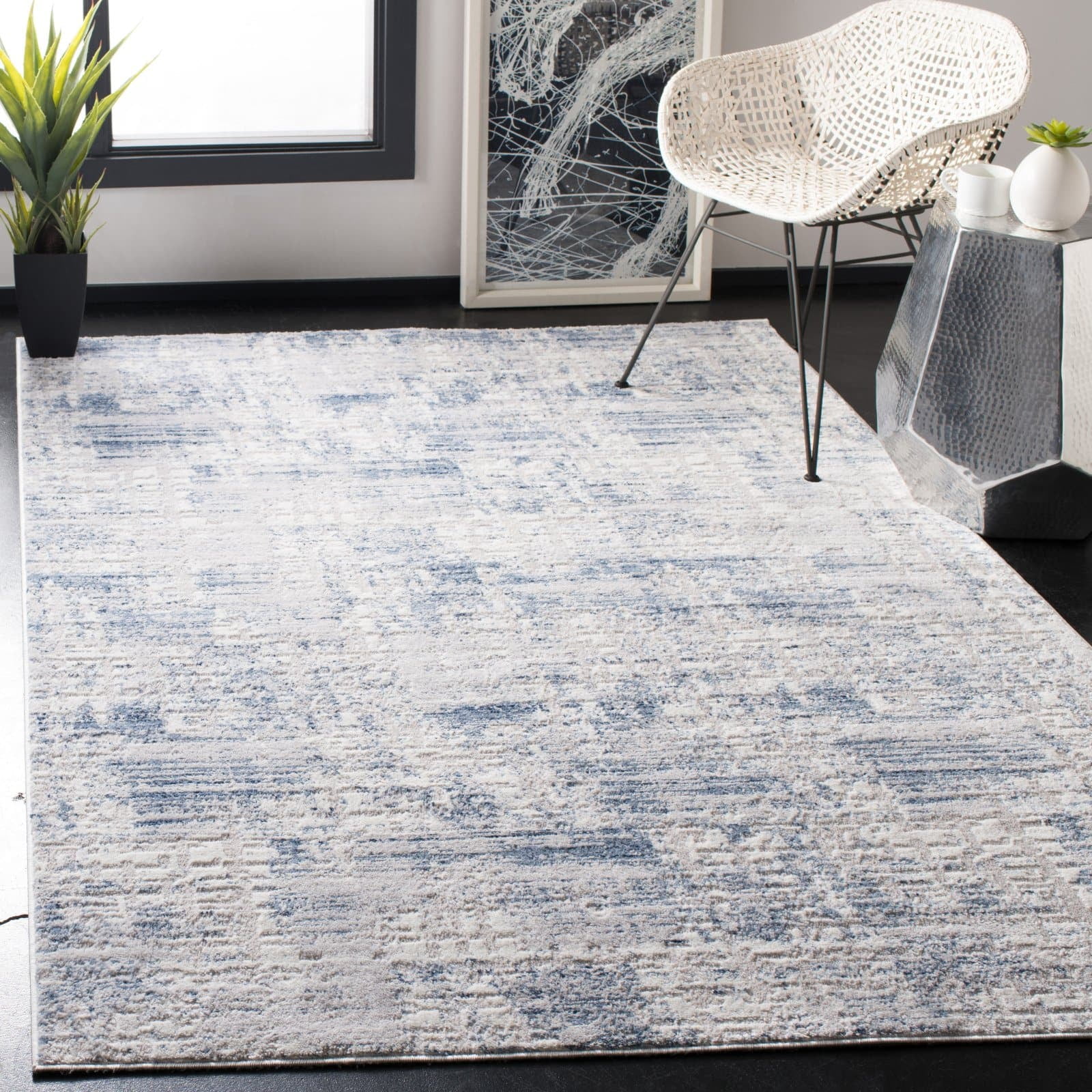 SAFAVIEH Amelia Carrie Abstract Distressed Area Rug, Blue/Grey, 5'3" x 7'6"
