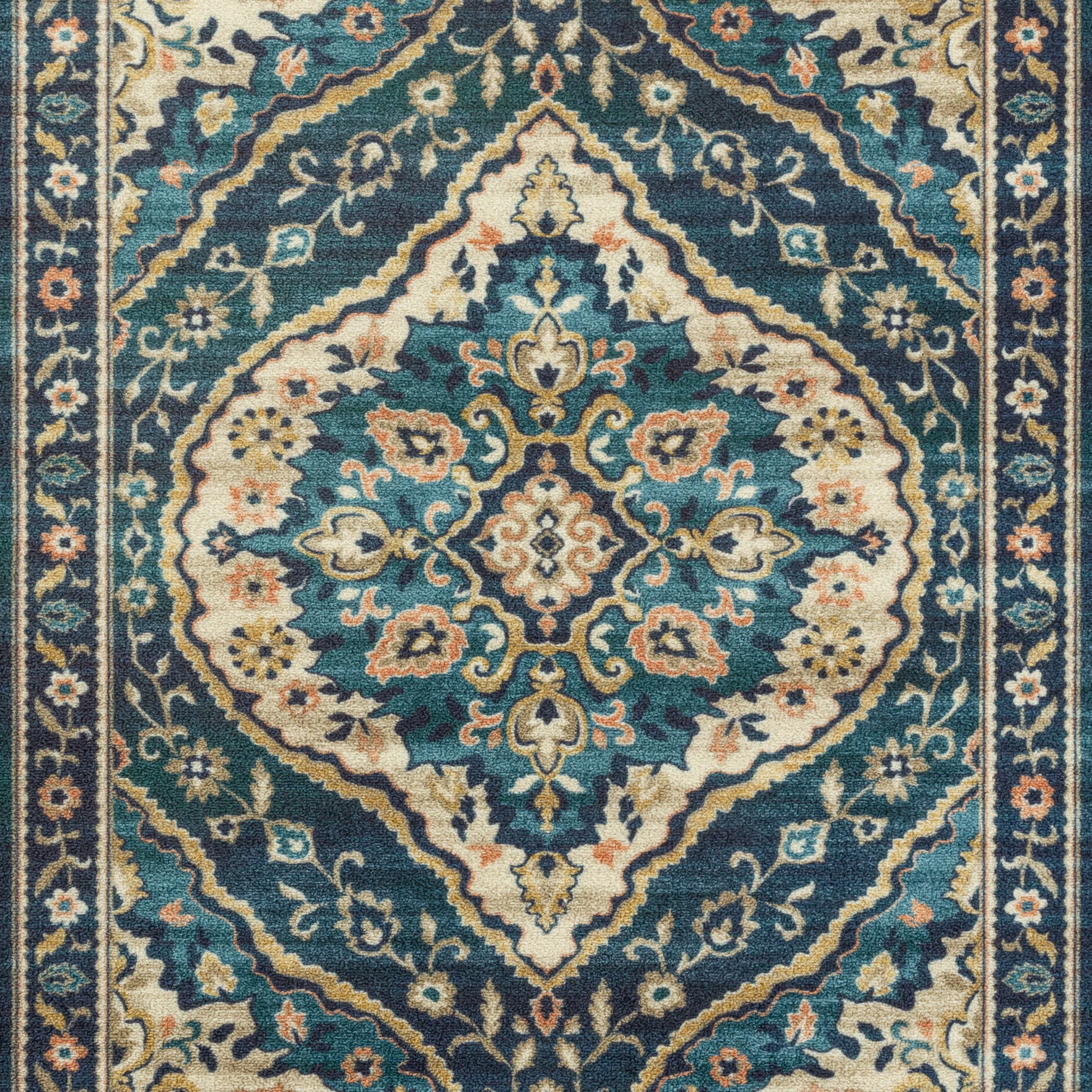 Mainstays Traditional Persian Teal Blue Print Indoor Area Rug, 7' x 10'