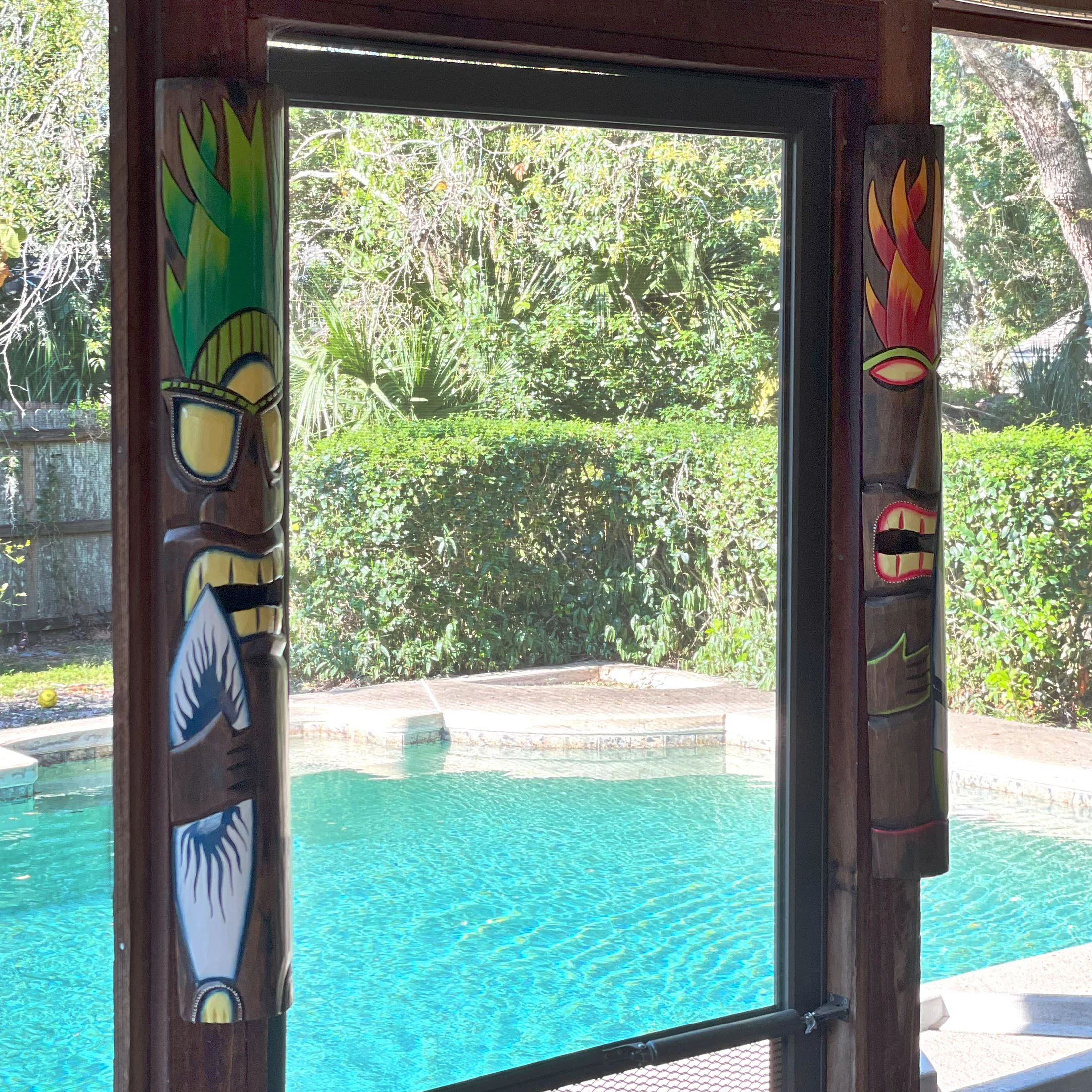 J.D. Yeatts Fire and Earth Carved Wood Surfer Tiki Wall Masks 39 inch (Set of 2)