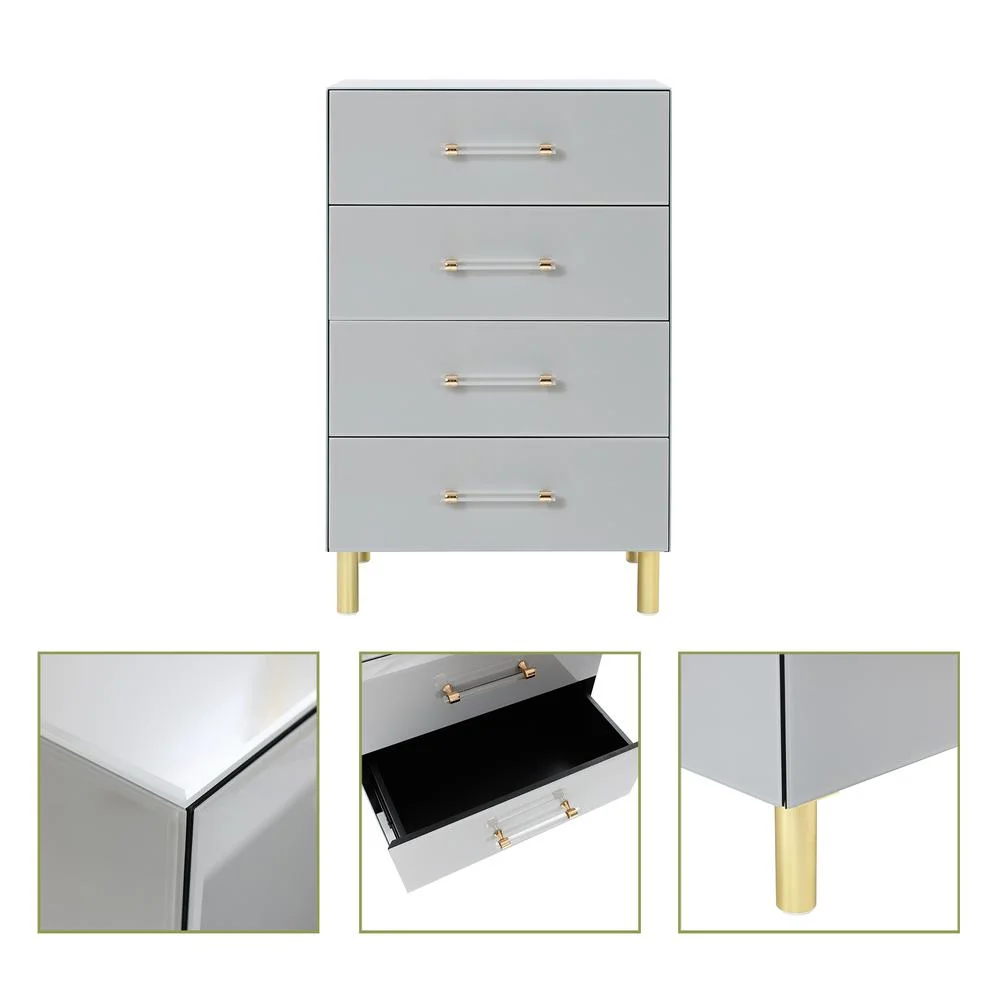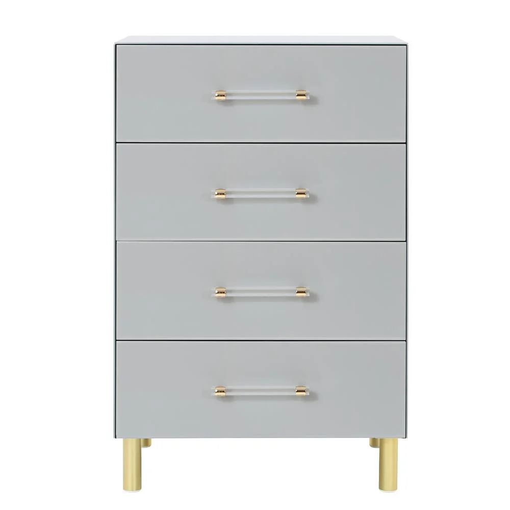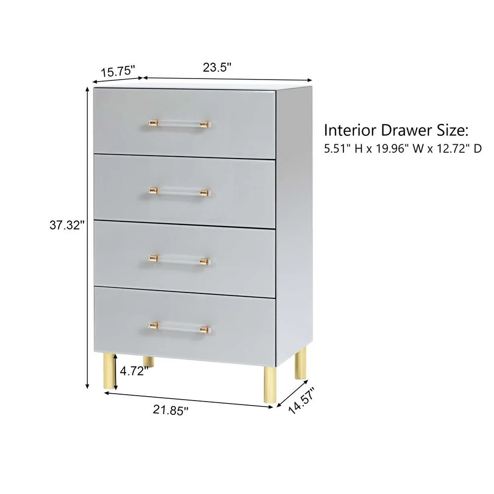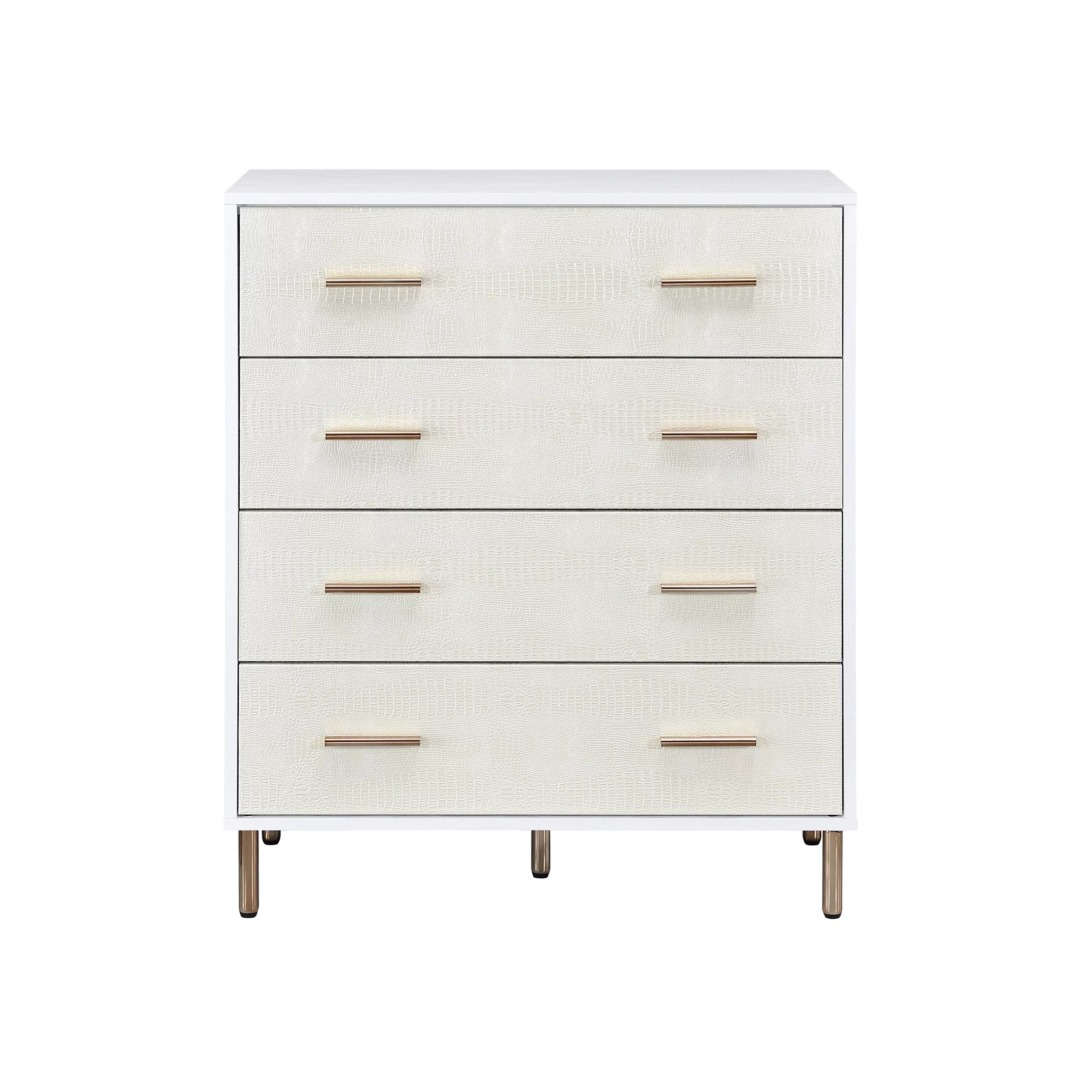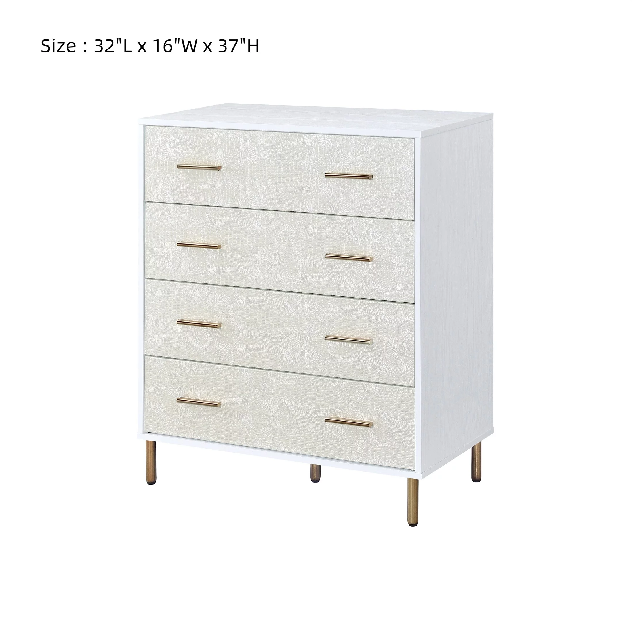 YJTONWIN Chest with 4 Drawers Storage Space White Champagne & Gold Finish