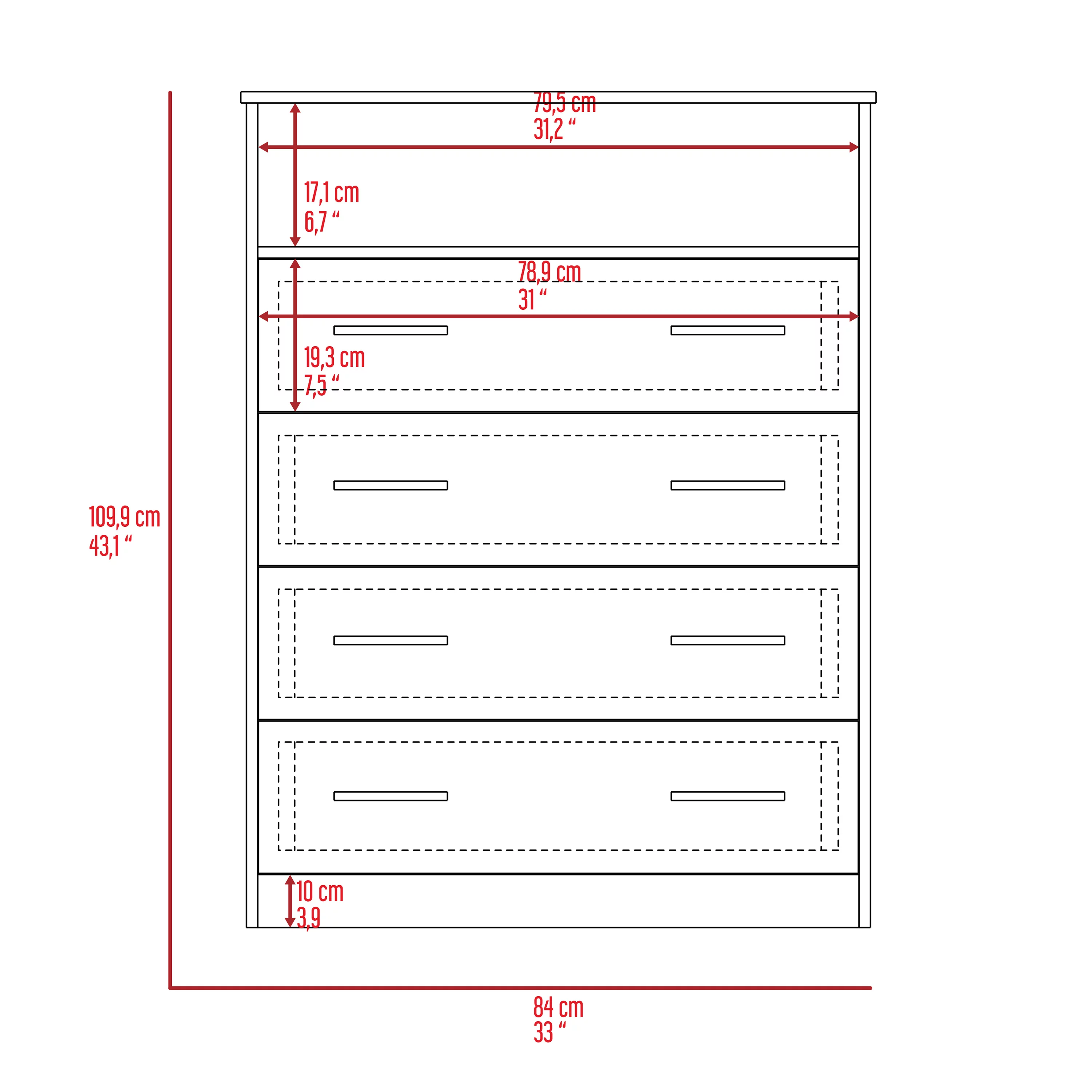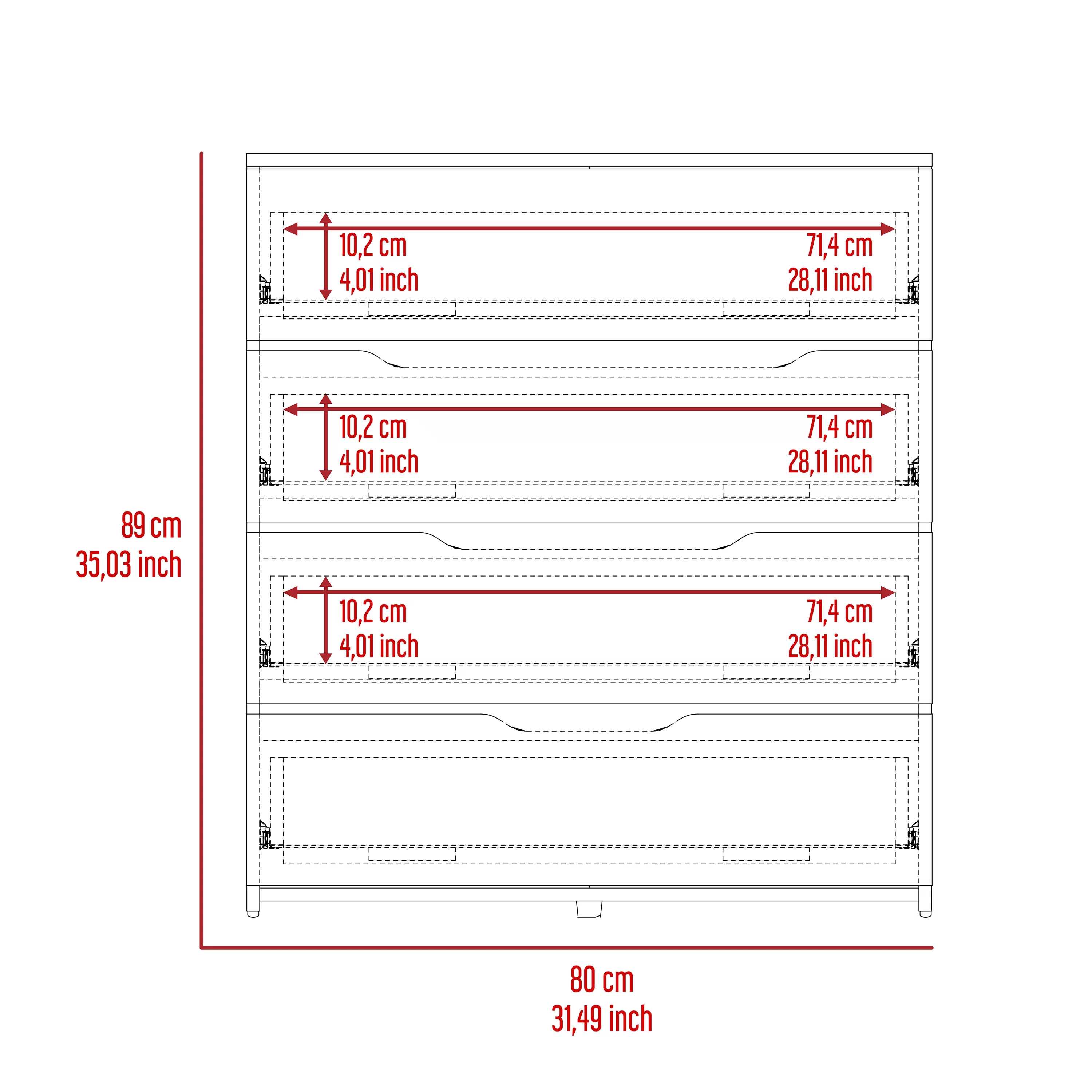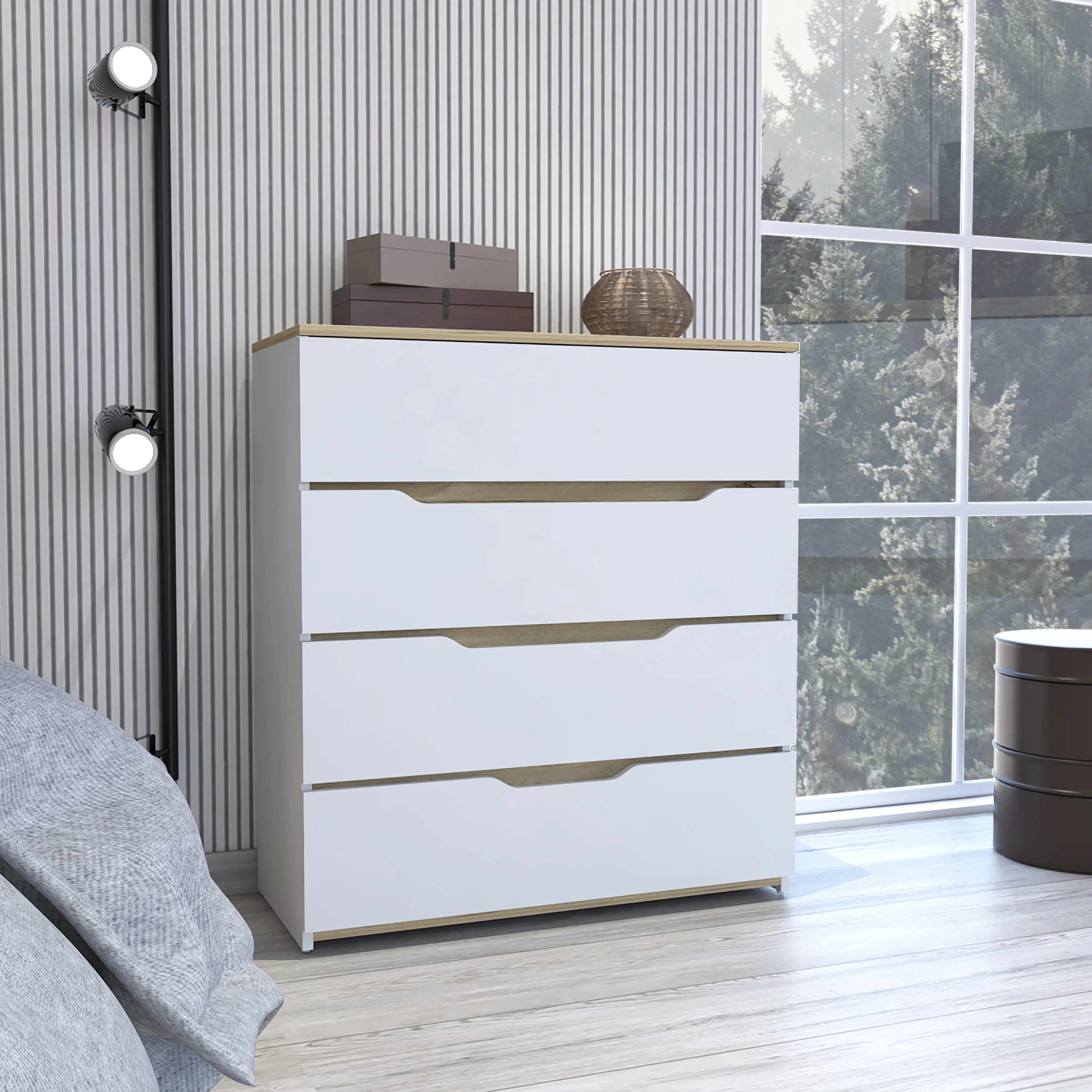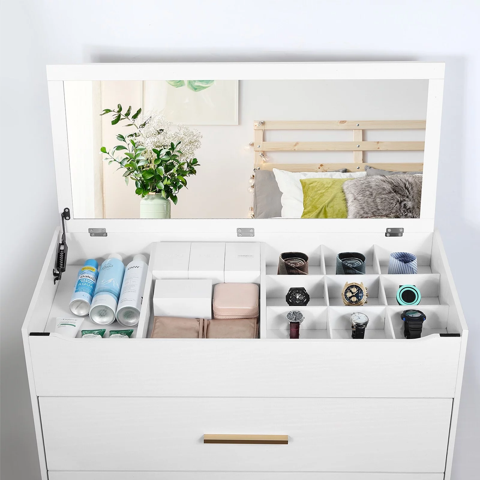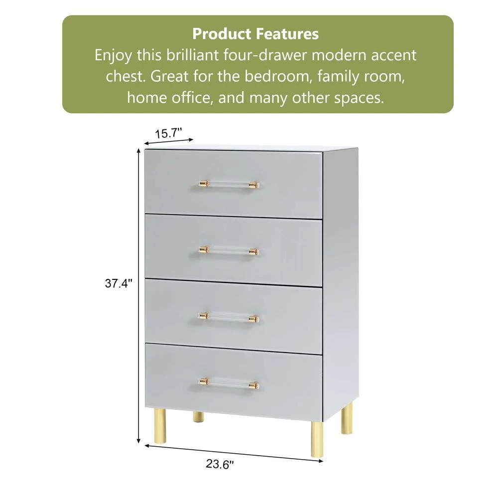 YJTONWIN Chest with 4 Drawers Storage Space White Champagne & Gold Finish