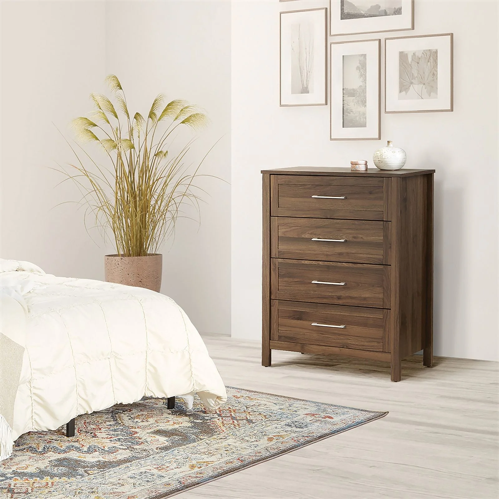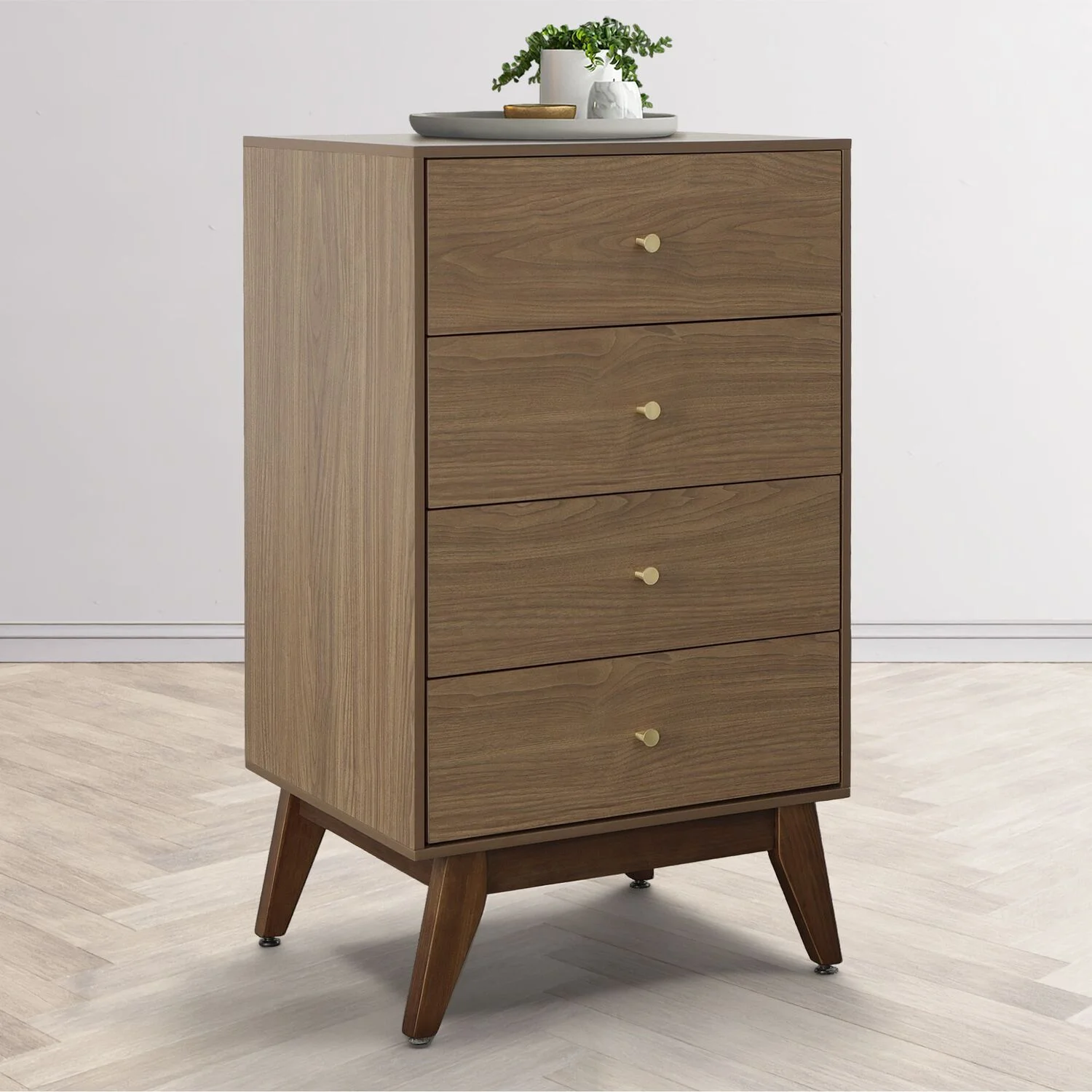 Transitional Style Wooden Chest with 4 Drawer Setup and Tapered Legs, Brown- Saltoro Sherpi